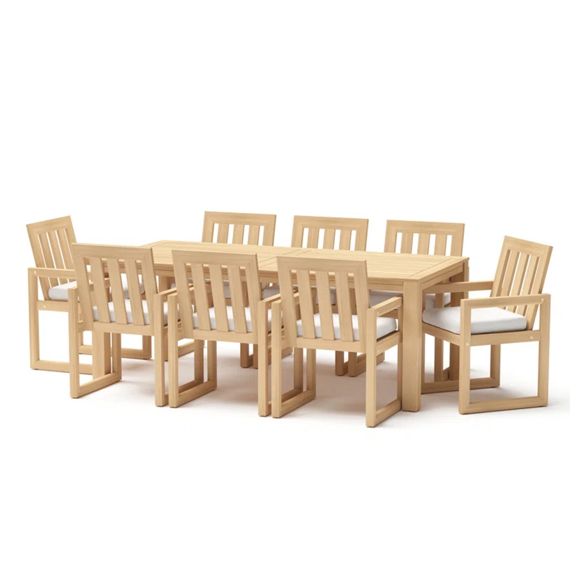 The Akira Dining Sets brings structural elegance and contemporary craftsmanship to your outdoor lifestyle. Perfect dining sets that merges contemporary and classic elements to compliment a modern retreat home. Crafted on a durable teak frame for lasting style. The Akira Dining Sets has a clean lined silhouette for a comfortable and casual look. Highlights the beauty of solid teak, it’s a natural choice to celebrate the outdoor with indoor style. Enjoy nature in style while creating cosy an outdoor nooks made for pared back living with The Akira Dining Sets.