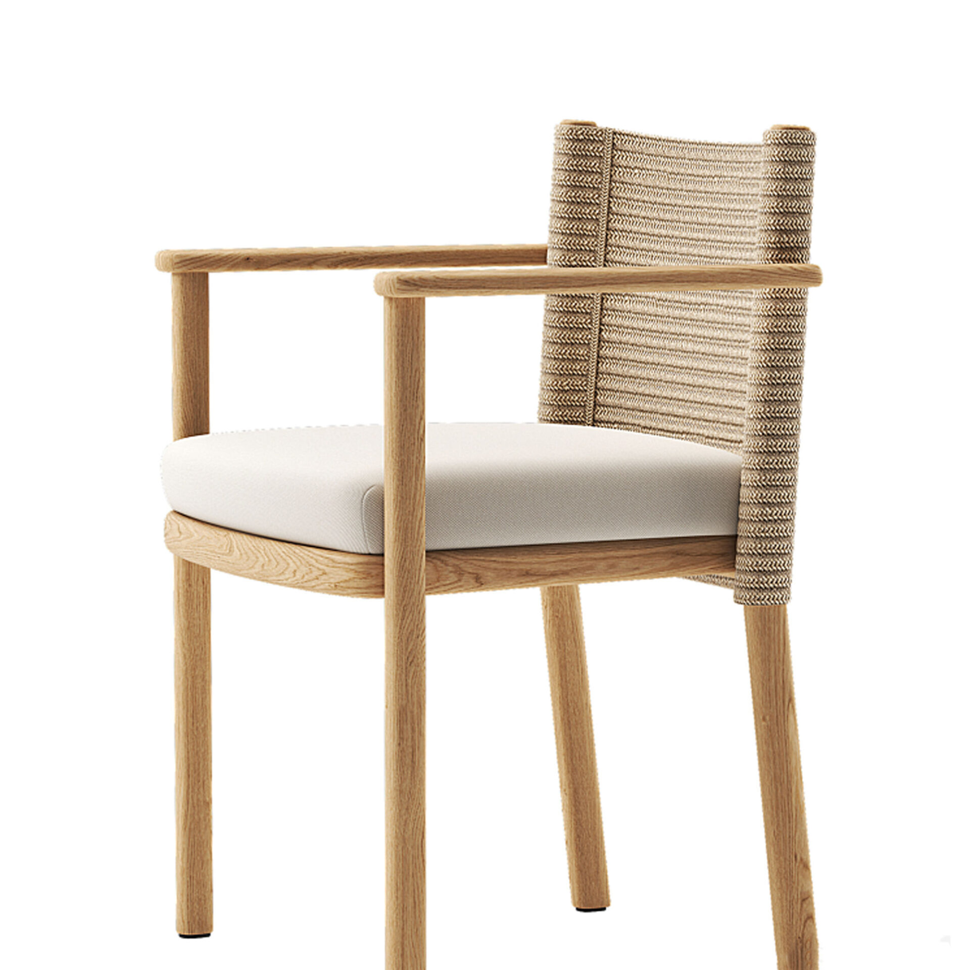 The Akmal Dining Chair brings structural elegance and contemporary craftsmanship to your outdoor lifestyle. Perfect dining chair that merges contemporary and classic elements to compliment a modern retreat home. Crafted on a durable teak frame with rope for lasting style. The Akmal Dining Chair has a clean lined silhouette for a comfortable and casual look. Highlights the beauty of solid teak, it’s a natural choice to celebrate the outdoor with indoor style. Embrace outdoor living in style as you created a cozy and inviting nook inspired by nature. Perfectly suited for calm, pared-back living with The Akmal Dining Chair.