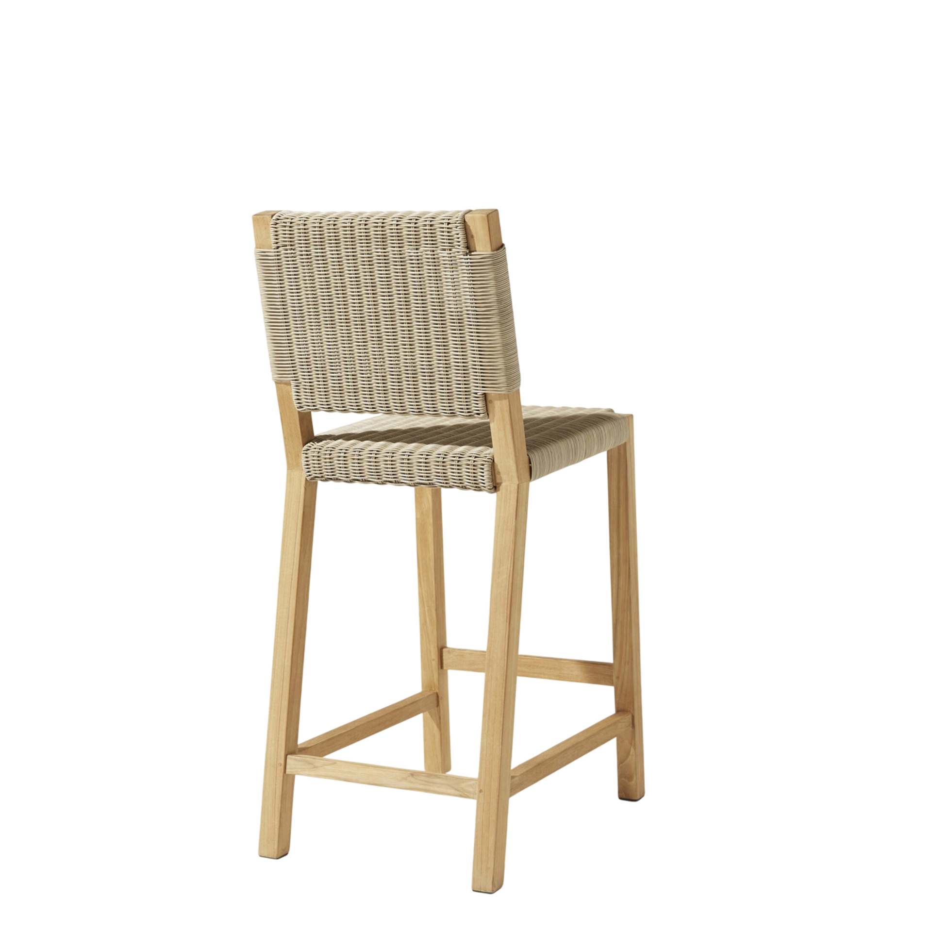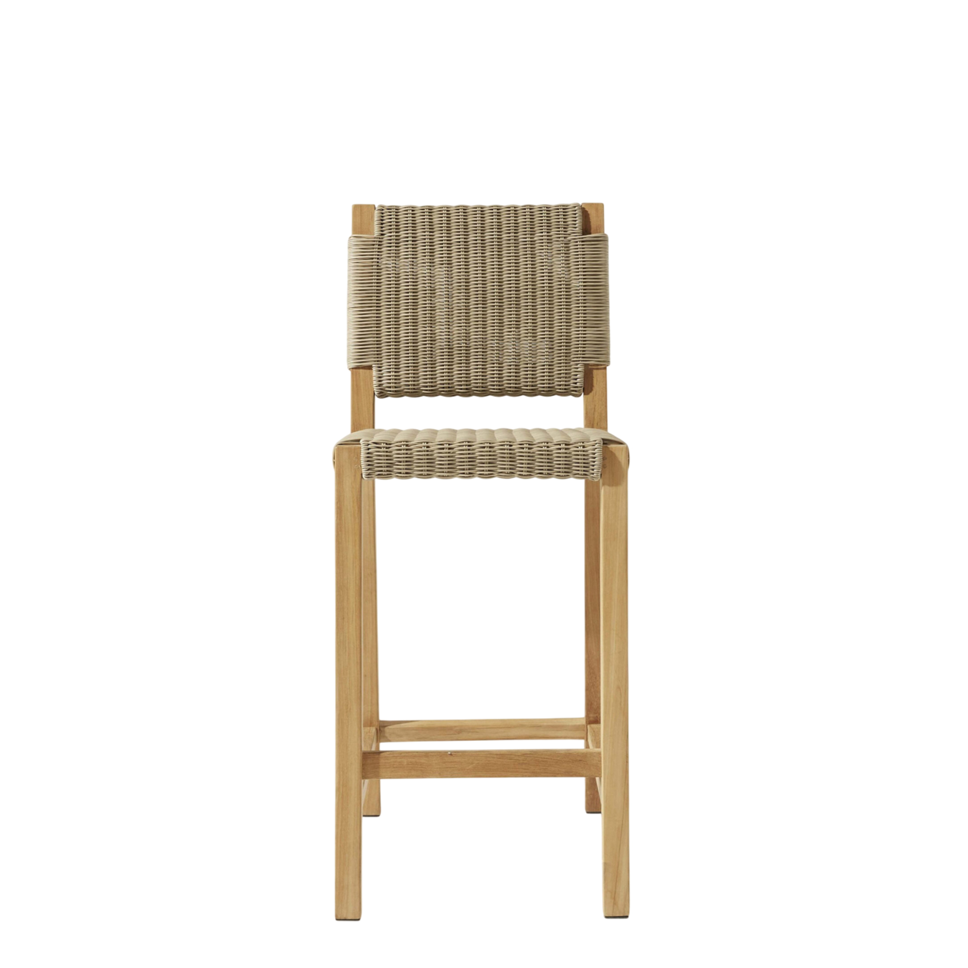 The Anya Bar Chair brings structural elegance and contemporary craftsmanship to your outdoor lifestyle. Perfect bar chair that merges contemporary and classic elements to compliment a modern retreat home. Crafted on a durable teak frame with synthetic rattan for lasting style. The Anya Bar Chair has a clean lined silhouette for a comfortable and casual look. Highlights the beauty of solid teak, it’s a natural choice to celebrate the outdoor with indoor style. Embrace outdoor living in style as you created a cozy and inviting nook inspired by nature. Perfectly suited for calm, pared-back living with The Anya Bar Chair.