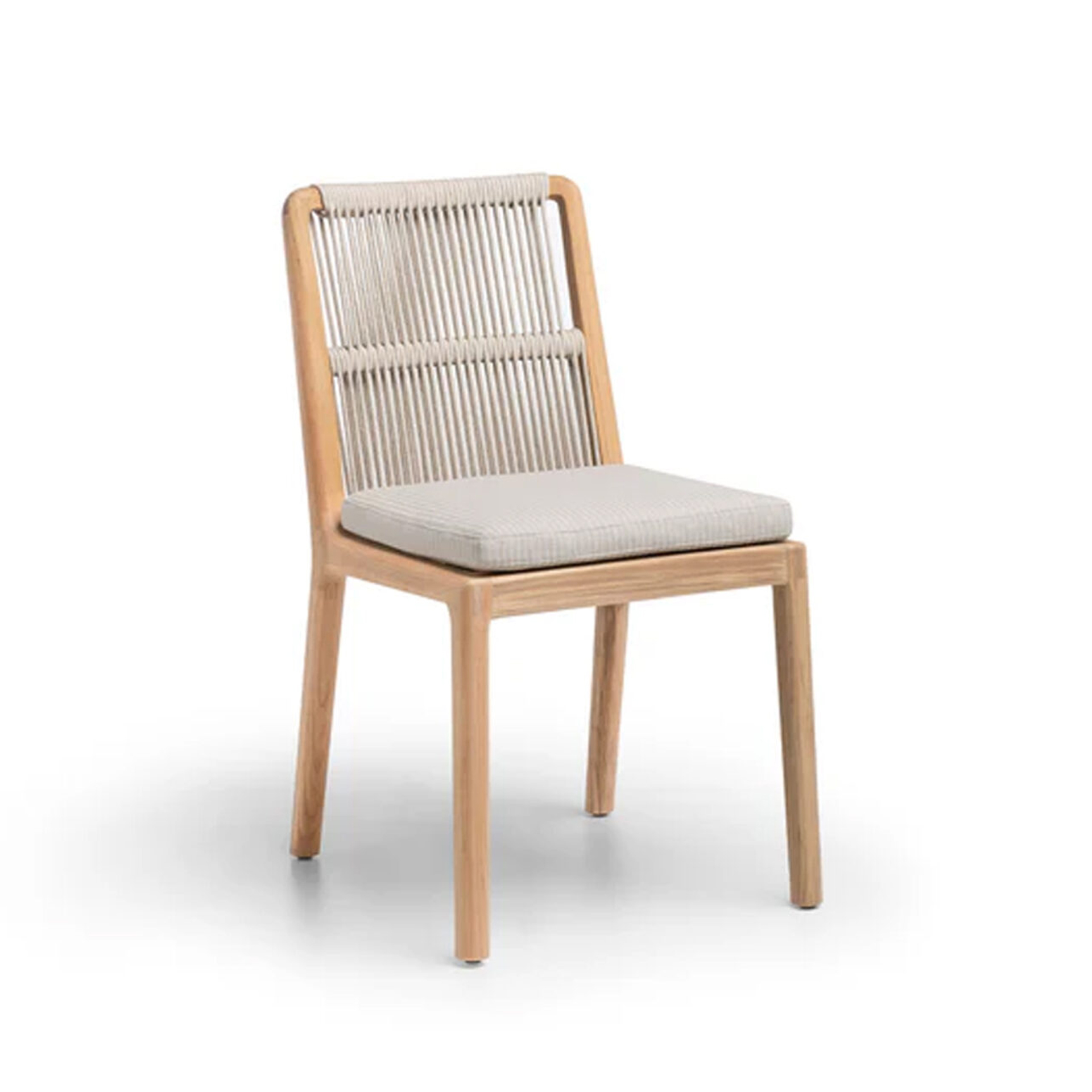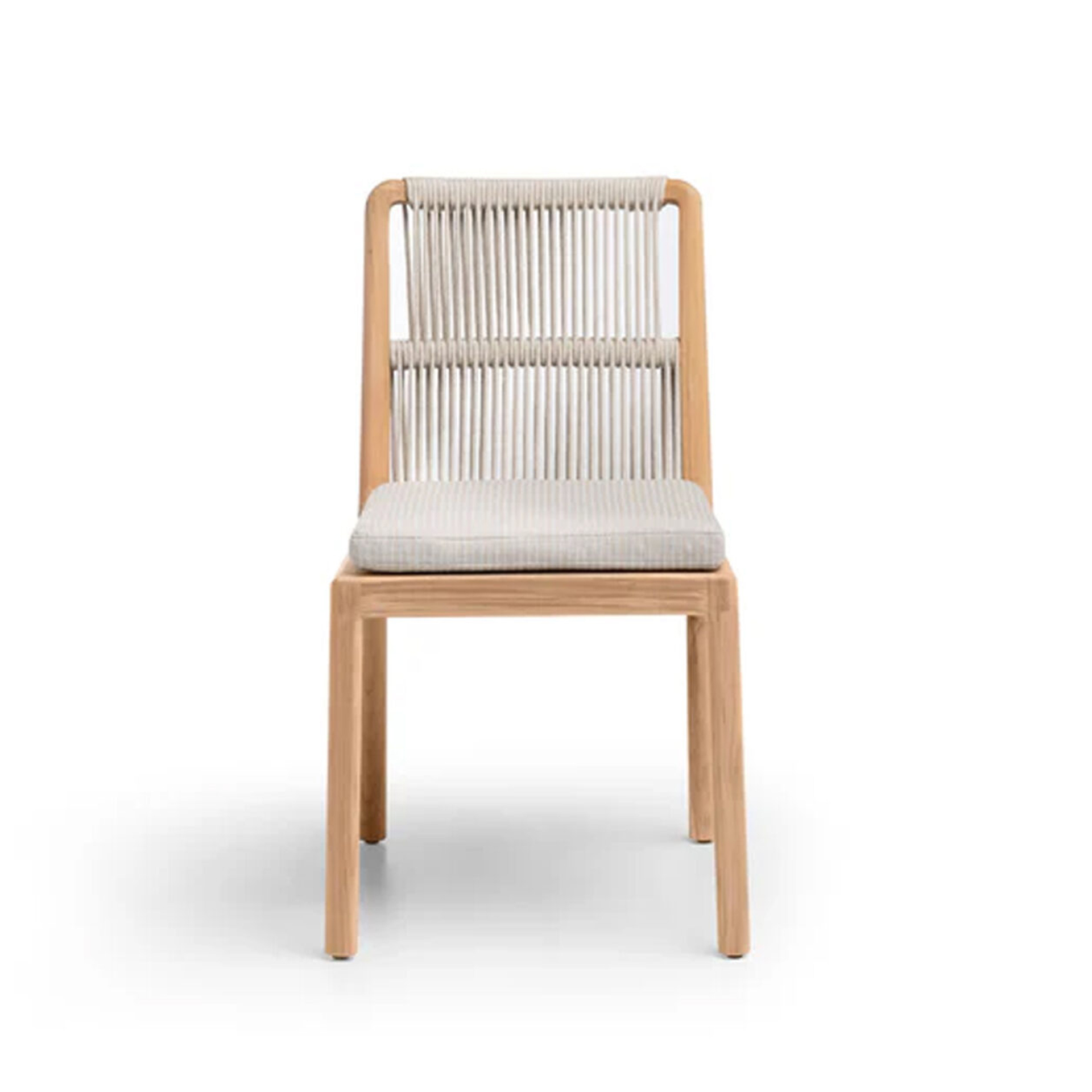 The Carlina Dining Chair brings structural elegance and contemporary craftsmanship to your outdoor lifestyle. Perfect dining chair that merges contemporary and classic elements to compliment a modern retreat home. Crafted on a durable teak frame with woven rope detailing for lasting style. The Carlina Dining Chair has a clean lined silhouette for a comfortable and casual look. Highlights the beauty of solid teak, it’s a natural choice to celebrate the outdoor with indoor style. Embrace outdoor living in style as you created a cozy and inviting nook inspired by nature. Perfectly suited for calm, pared-back living with The Carlina Dining Chair.