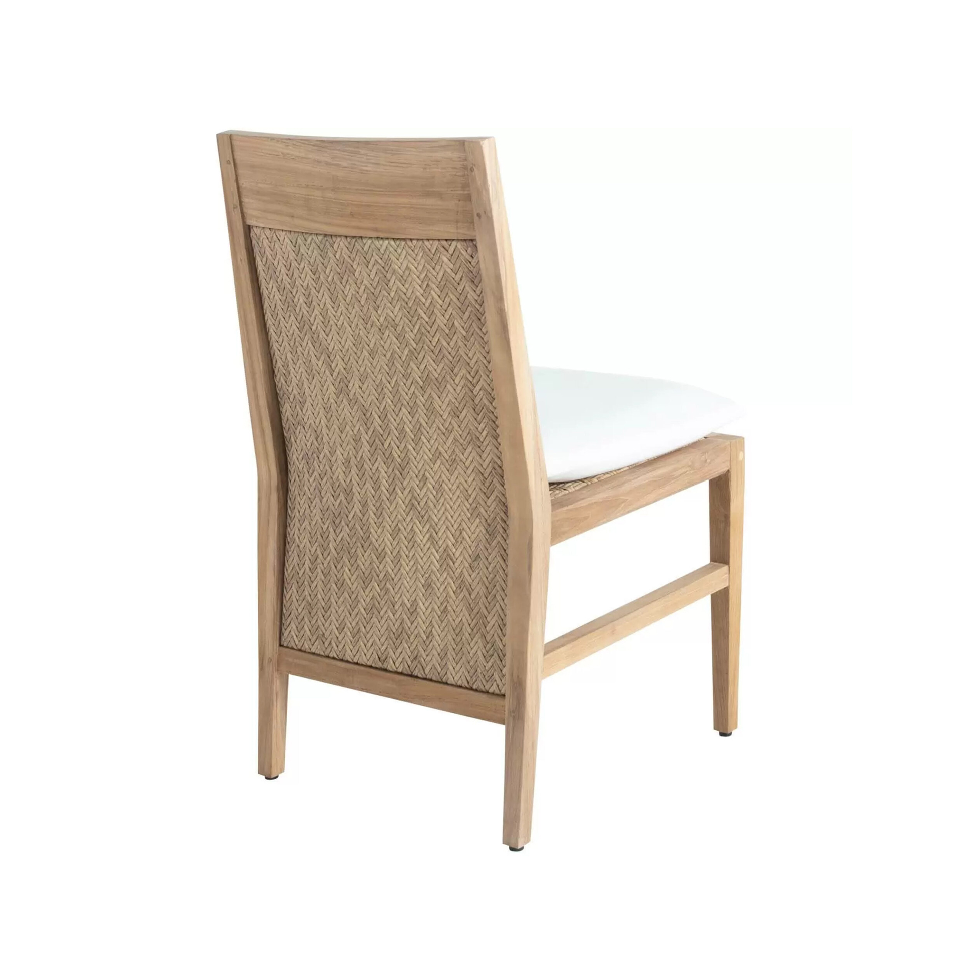 The Corry Dining Chair brings structural elegance and contemporary craftsmanship to your outdoor lifestyle. Perfect dining chair that merges contemporary and classic elements to compliment a modern retreat home. Crafted on a durable teak frame with wicker for lasting style. The Corry Dining Chair has a clean lined silhouette for a comfortable and casual look. Highlights the beauty of solid teak, it’s a natural choice to celebrate the outdoor with indoor style. Embrace outdoor living in style as you created a cozy and inviting nook inspired by nature. Perfectly suited for calm, pared-back living with The Corry Dining Chair.