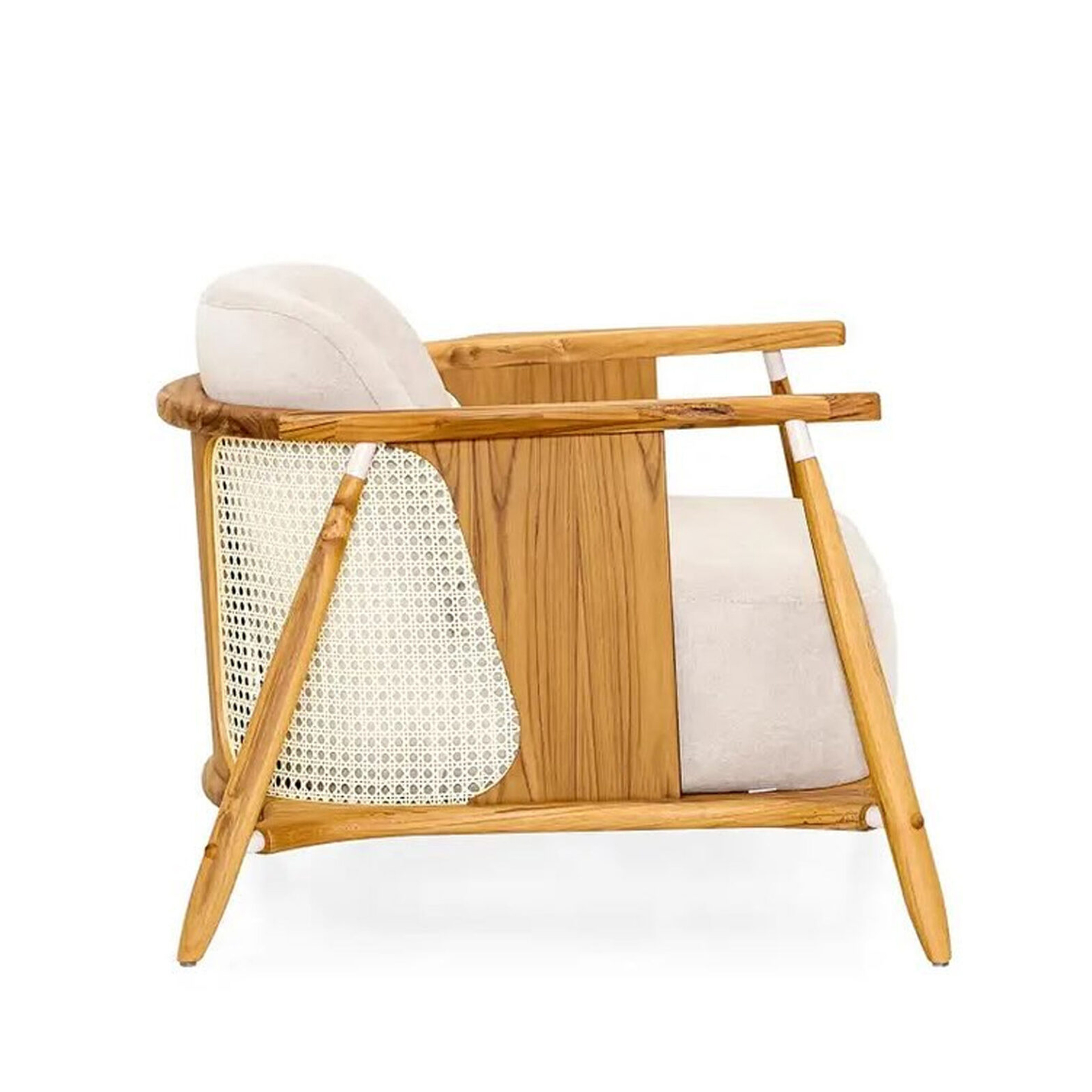 The Eliana Lounge Chair brings structural elegance and contemporary craftsmanship to your outdoor lifestyle. Perfect lounge chair that merges contemporary and classic elements to compliment a modern retreat home. Crafted on a durable teak frame with natural rattan for lasting style. The Eliana Lounge Chair has a clean lined silhouette for a comfortable and casual look. Highlights the beauty of solid teak, it’s a natural choice to celebrate the outdoor with indoor style. Embrace outdoor living in style as you created a cozy and inviting nook inspired by nature. Perfectly suited for calm, pared-back living with The Eliana Lounge Chair.