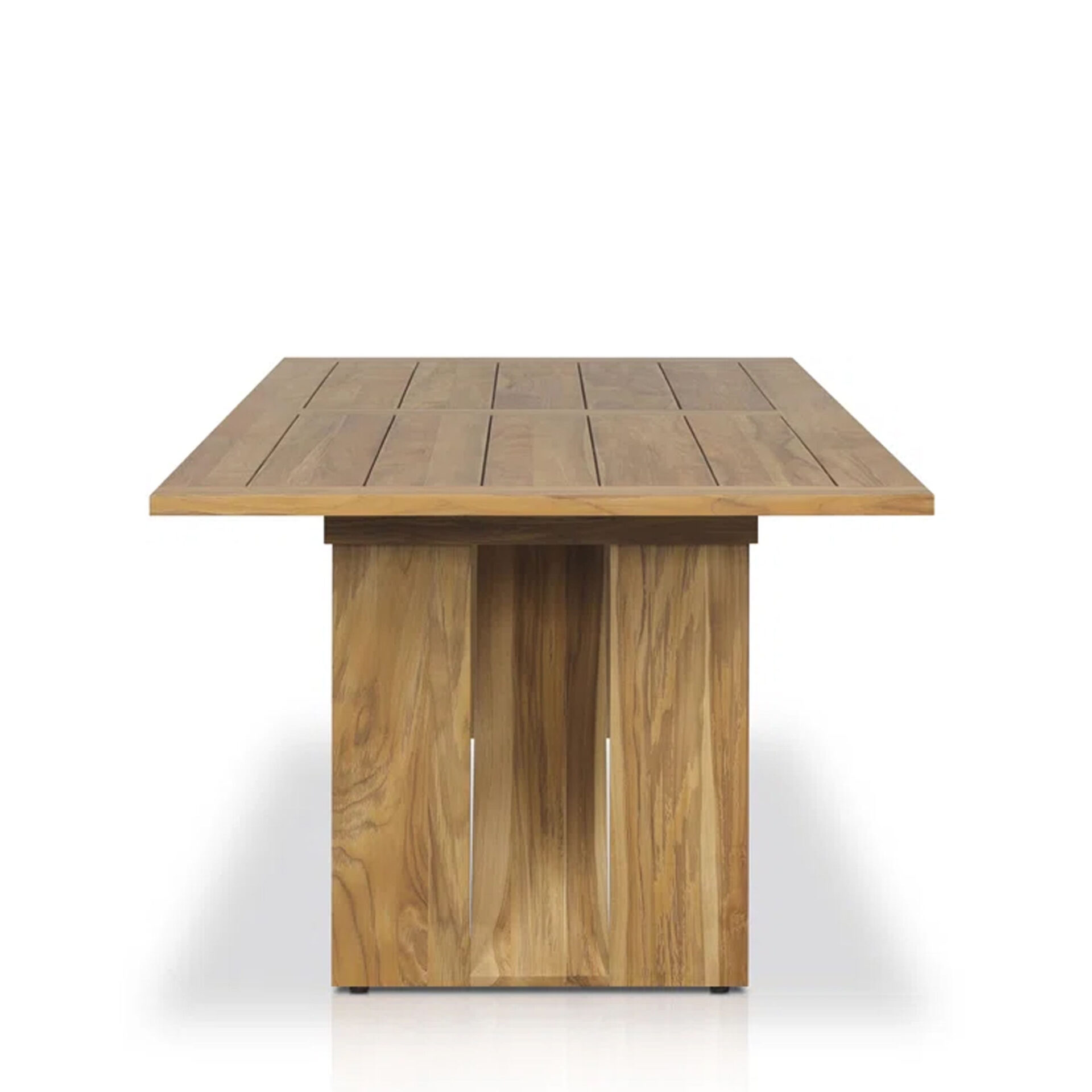 The Faza Dining Table brings structural elegance and contemporary craftsmanship to your outdoor lifestyle. Perfect dining table that merges contemporary and classic elements to compliment a modern retreat home. Crafted on a durable teak frame for lasting style. The Faza Dining Table has a clean lined silhouette for a comfortable and casual look. Highlights the beauty of solid teak, it’s a natural choice to celebrate the outdoor with indoor style. Embrace outdoor living in style as you created a cozy and inviting nook inspired by nature. Perfectly suited for calm, pared-back living with The Faza Dining Table.