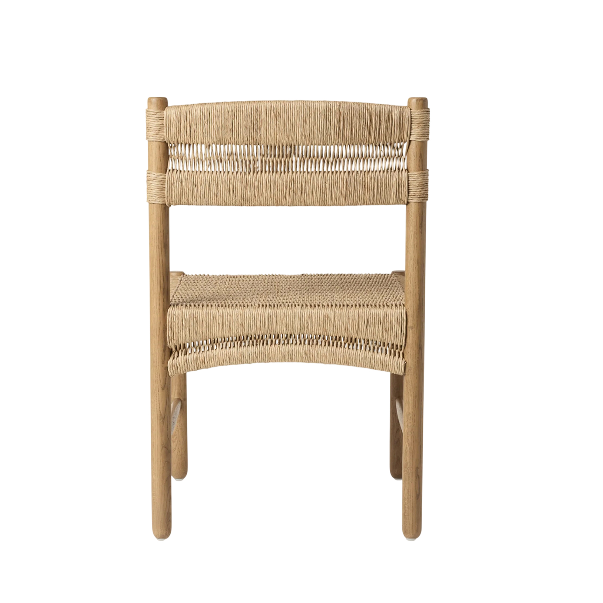 The Genta Dining Chair brings structural elegance and contemporary craftsmanship to your outdoor lifestyle. Perfect dining chair that merges contemporary and classic elements to compliment a modern retreat home. Crafted on a durable teak frame with rope seating for lasting style. The Genta Dining Chair has a clean lined silhouette for a comfortable and casual look. Highlights the beauty of solid teak, it’s a natural choice to celebrate the outdoor with indoor style. Embrace outdoor living in style as you created a cozy and inviting nook inspired by nature. Perfectly suited for calm, pared-back living with The Genta Dining Chair.