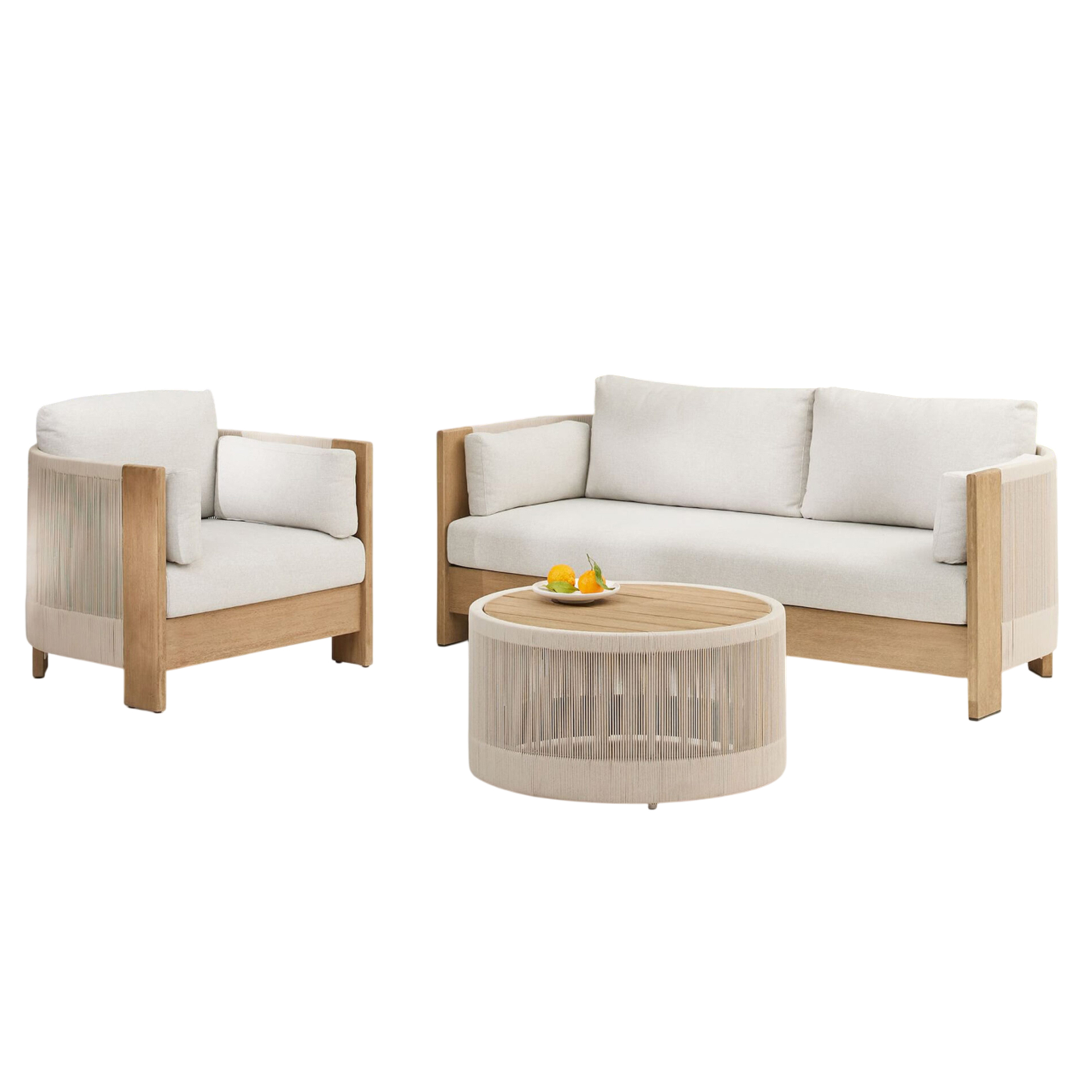 The Giora Sofa Sets brings structural elegance and contemporary craftsmanship to your outdoor lifestyle. Perfect sofa sets that merges contemporary and classic elements to compliment a modern retreat home. Crafted on a durable teak with rope detailing frame for lasting style. The Giora Sofa Sets has a clean lined silhouette for a comfortable and casual look. Highlights the beauty of solid teak, it’s a natural choice to celebrate the outdoor with indoor style. Enjoy nature in style while creating cosy an outdoor nooks made for pared back living with The Giora Sofa Sets.