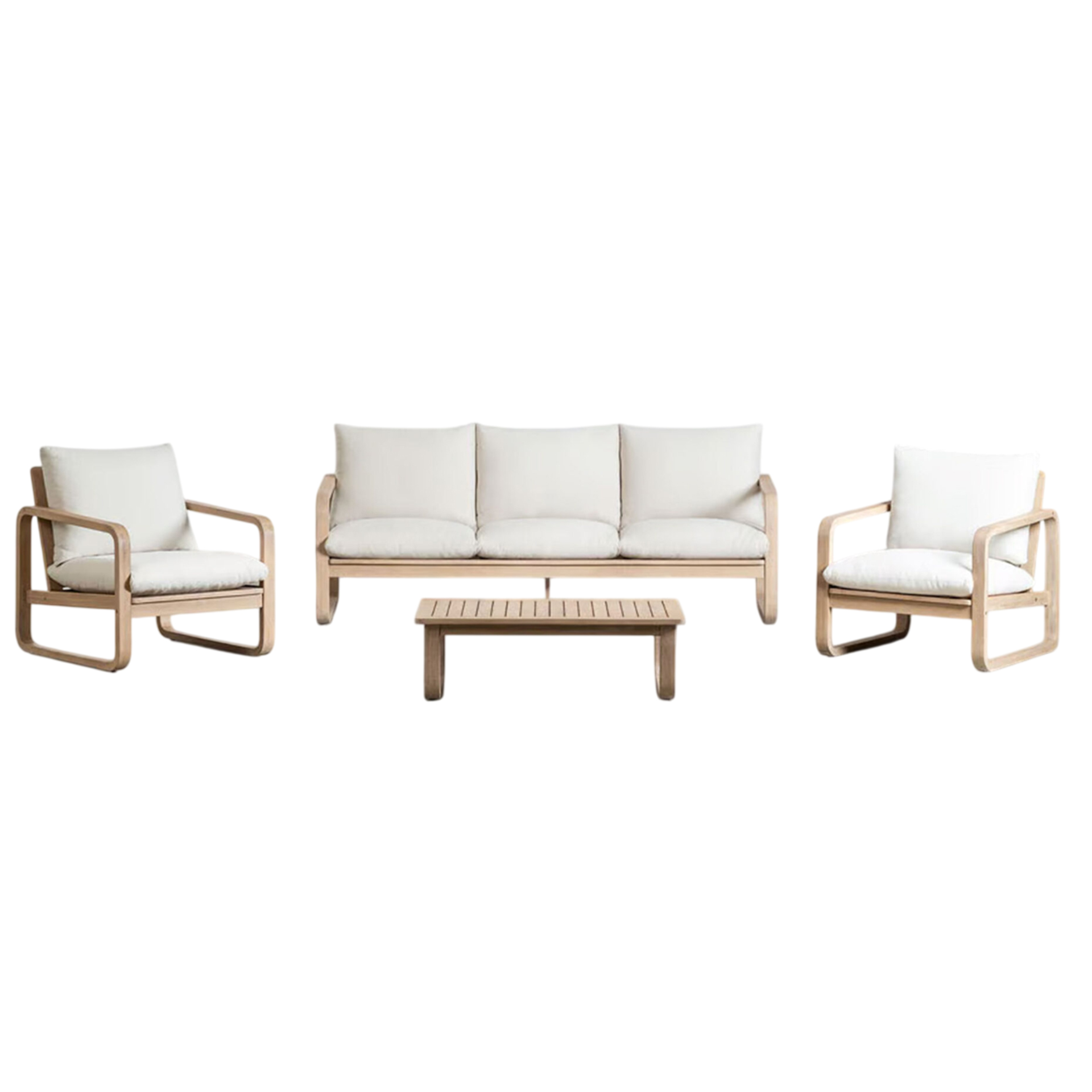 This sofa set is a versatile accent piece that showcases your unique personality and invites you to relax. Borrowing from the carefree spirit of coastal aesthetics, this sofa set is clean and uncluttered for a breezy look and feel. Perfect for any outdoor setting, this sofa set features teak wood for lasting beauty. This sofa set’s comfortable and casual style is best for outdoor aesthetic.