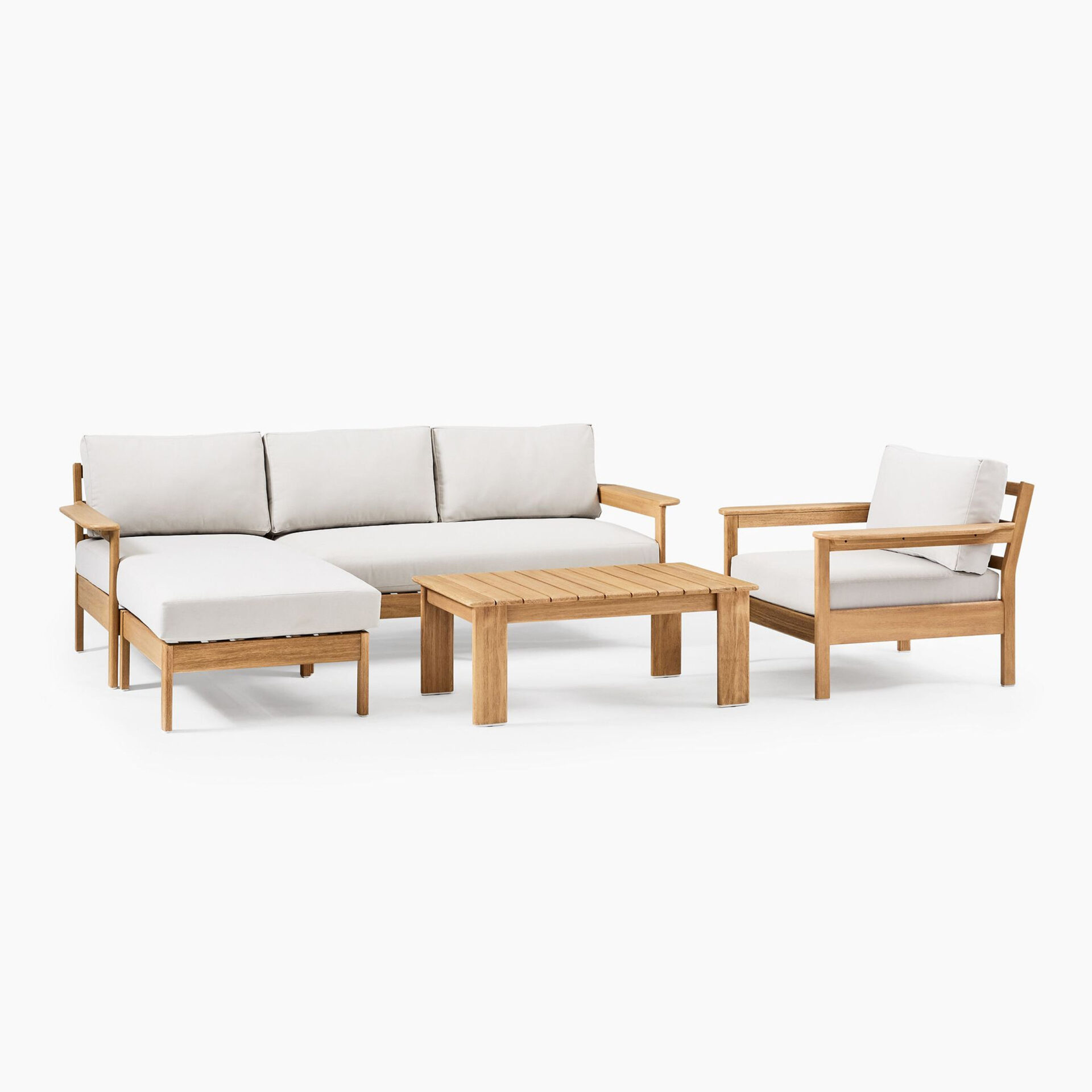 This sofa set is a versatile accent piece that showcases your unique personality and invites you to relax. Borrowing from the carefree spirit of coastal aesthetics, this sofa set is clean and uncluttered for a breezy look and feel. Perfect for any outdoor setting, this sofa set features teak wood for lasting beauty. This sofa set’s comfortable and casual style is best for outdoor aesthetic.
