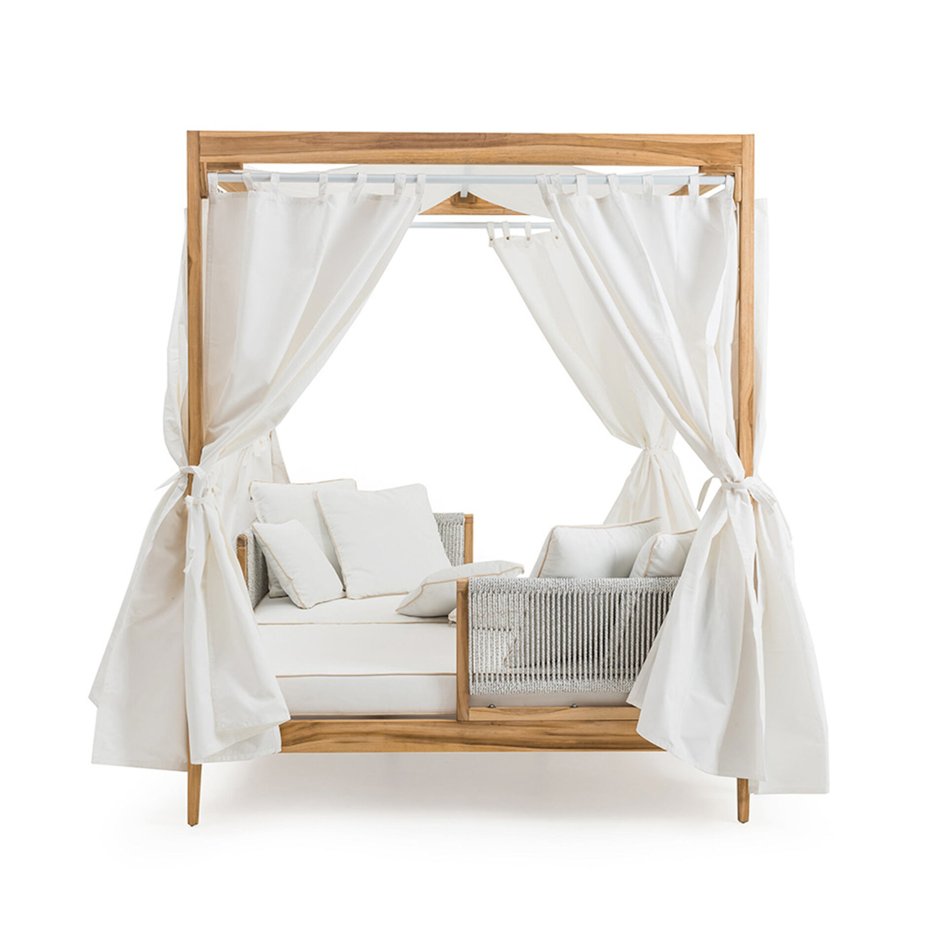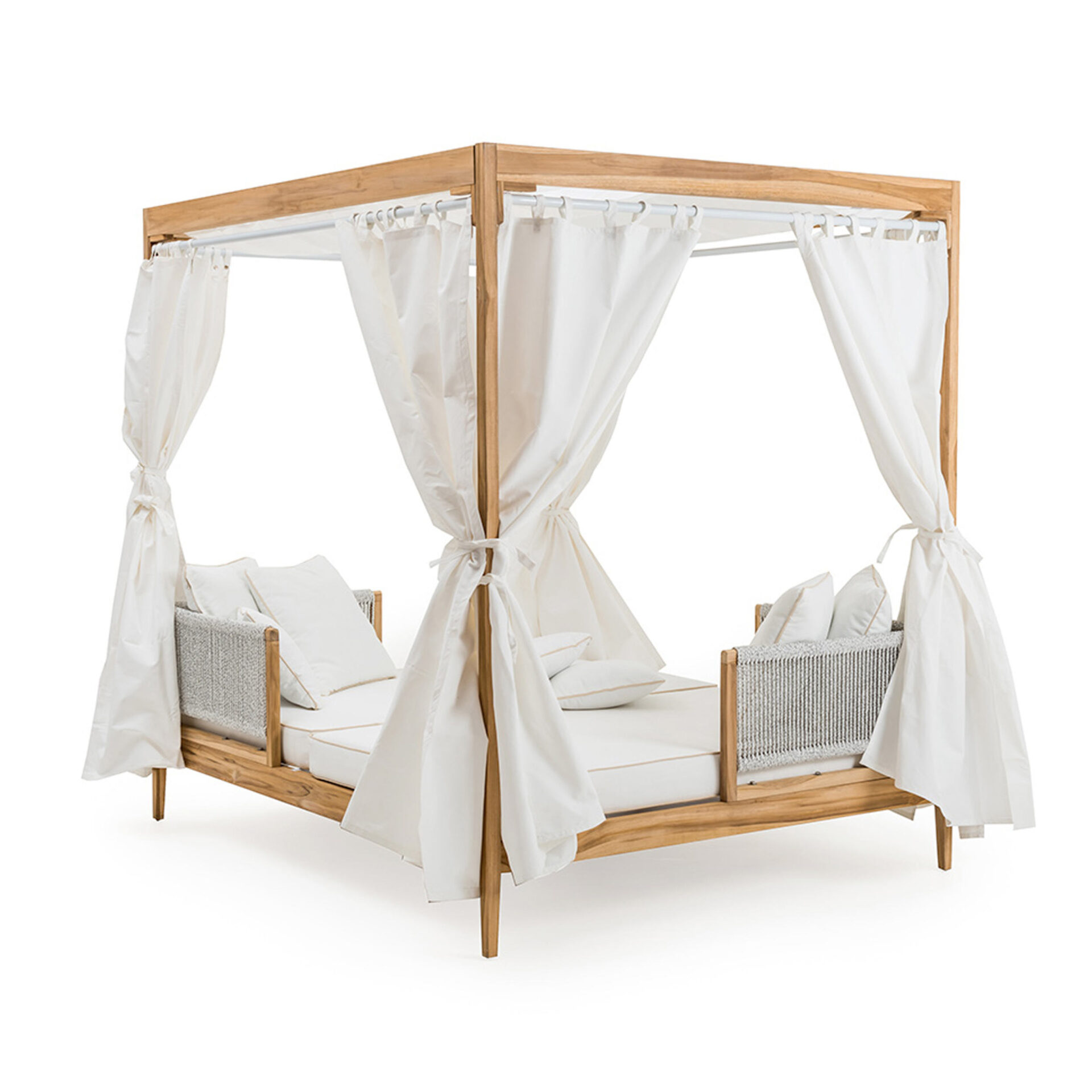 The Jasmin Sun Daybed brings structural elegance and contemporary craftsmanship to your outdoor lifestyle. The perfect sun daybed that merges contemporary and classic elements to compliment a modern retreat home. Crafted on a durable teak frame with rope detailing for lasting style. The Jasmin Sun Daybed has a clean lined silhouette for a comfortable and casual look. Highlights the beauty of solid teak, it’s a natural choice to celebrate the outdoor with indoor style. Embrace outdoor living in style as you created a cozy and inviting nook inspired by nature. Perfectly suited for calm, pared-back living with The Jasmin Sun Daybed