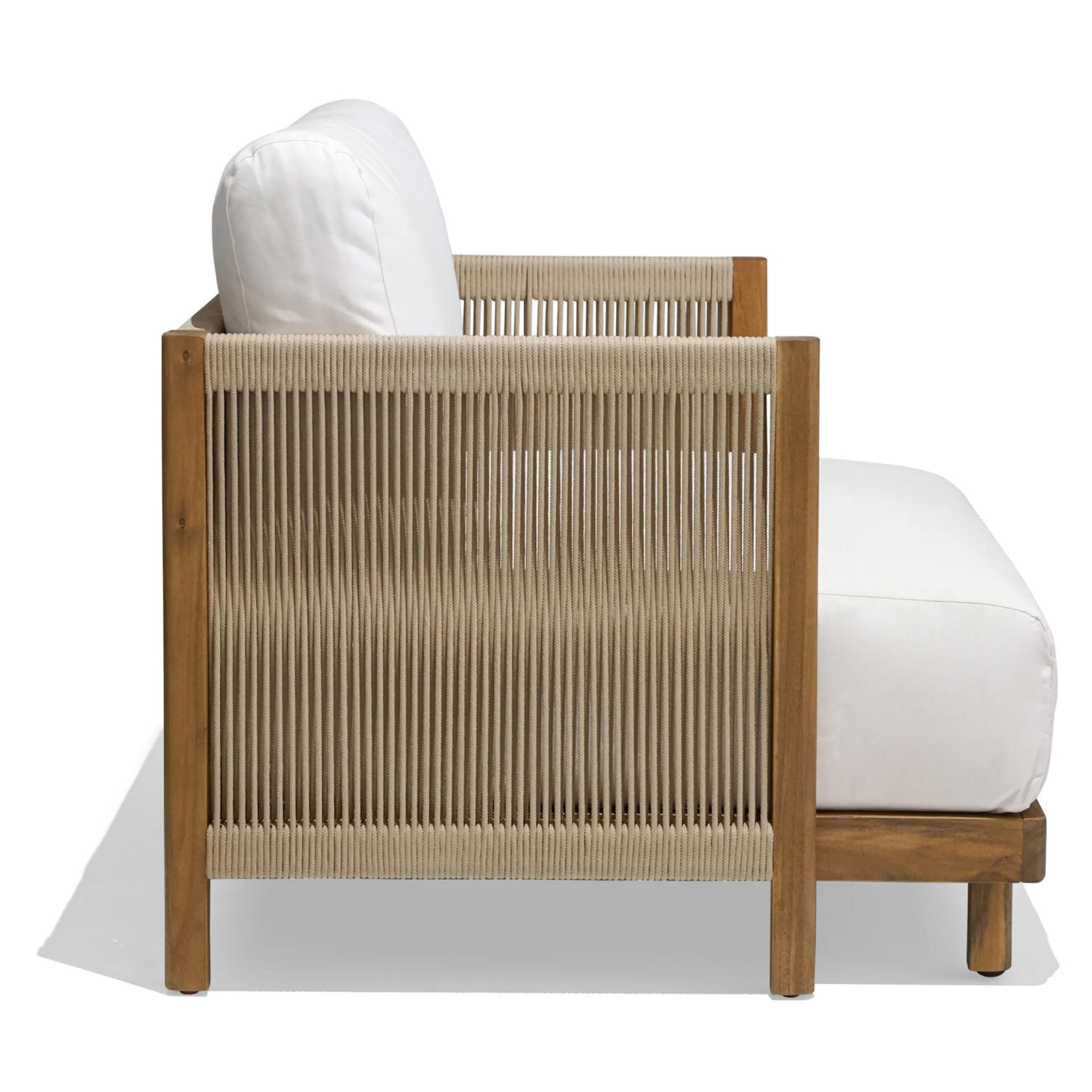 The Jean Lounge Chair brings structural elegance and contemporary craftsmanship to your outdoor lifestyle. Perfect lounge chair merges contemporary and classic elements to compliment a modern retreat home. Crafted on a durable teak frame with sunproof fabric for lasting style, The Jean Lounge Chair has a clean lined silhouette for a comfortable and casual look. Highlights the beauty of solid teak it’s a natural choice for celebrates the outdoor with indoor style. Enjoy nature in style while creating cosy an outdoor nooks made for pared back living with The Jean Lounge Chair.
