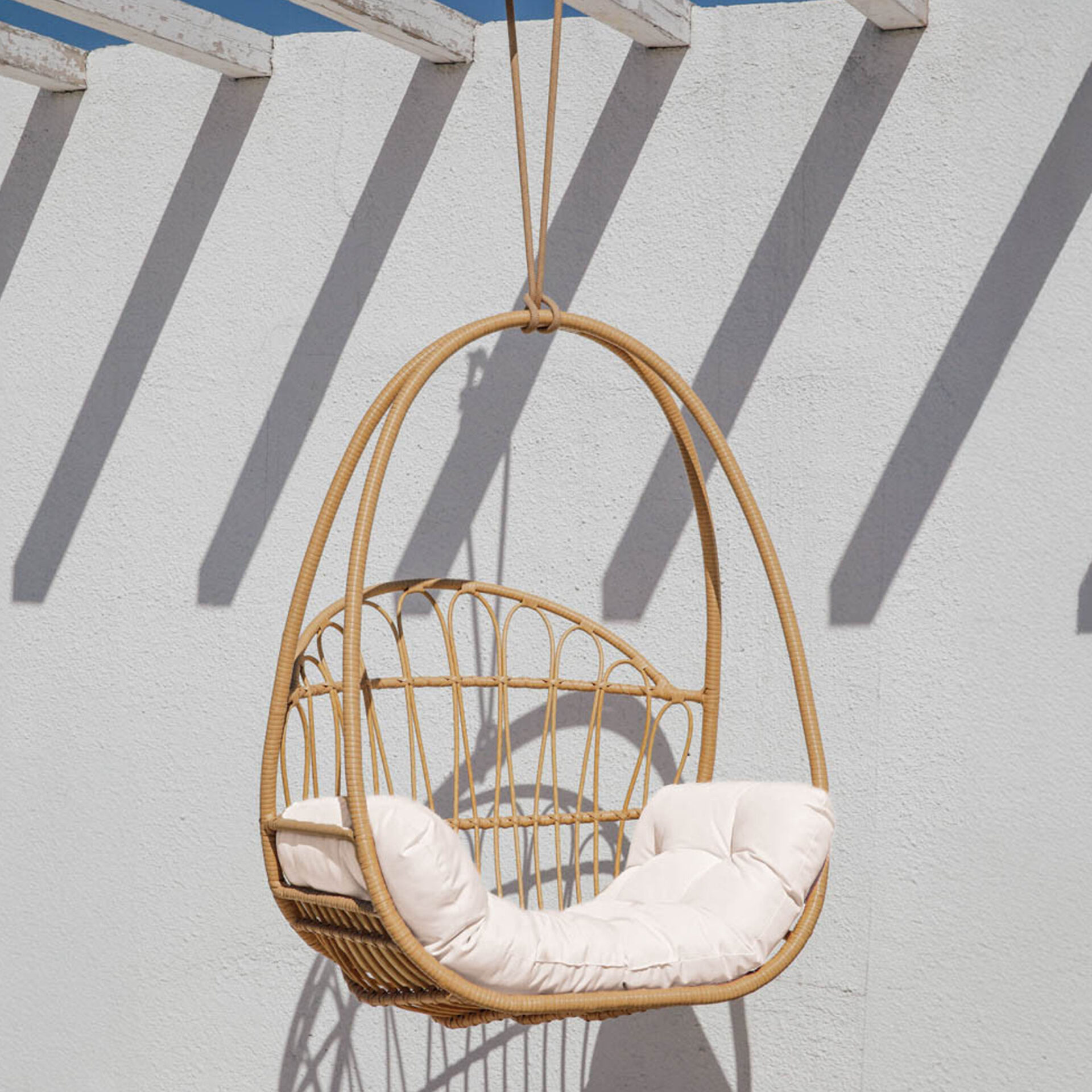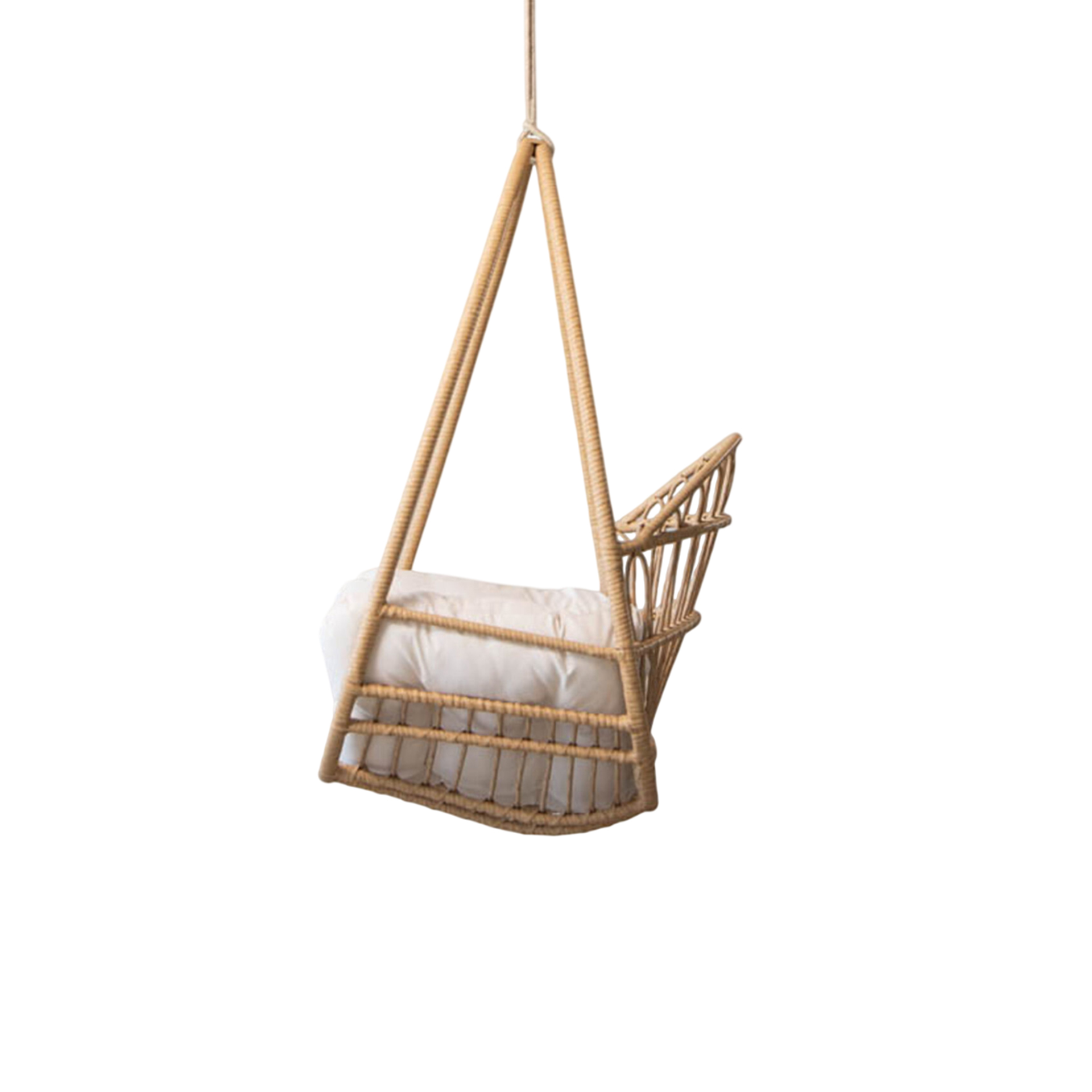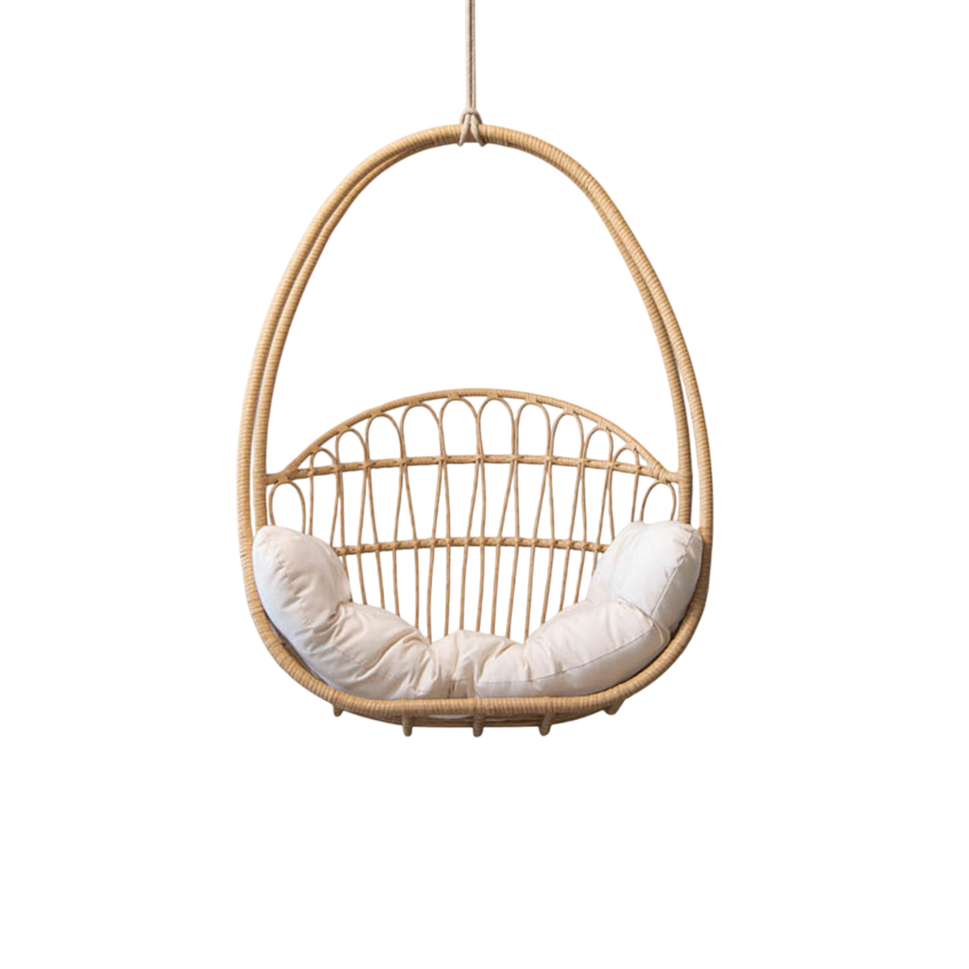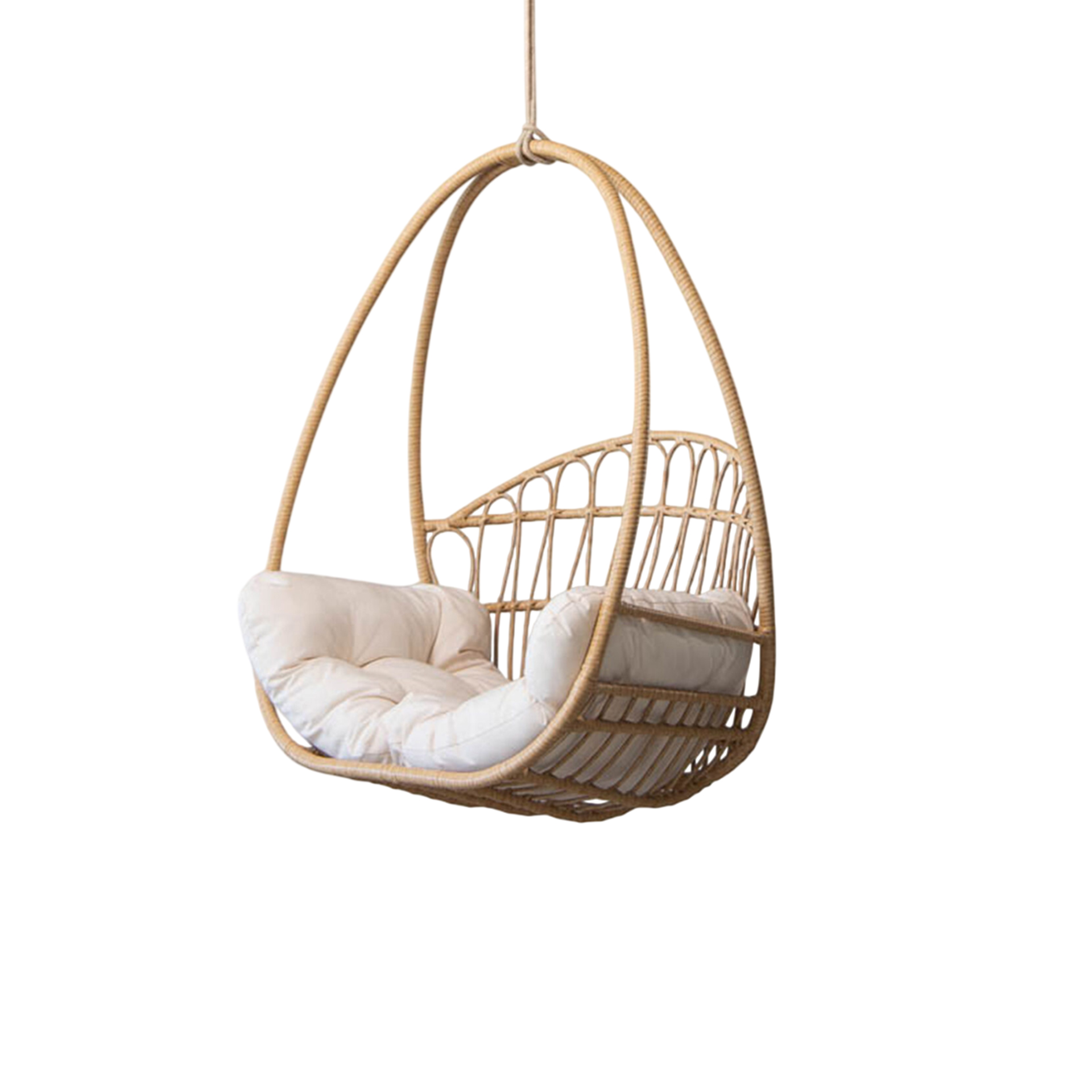 The Kaela Swing Hanging Chair brings structural elegance and contemporary craftsmanship to your outdoor lifestyle. Perfect swing hanging chair that merges contemporary and classic elements to compliment a modern retreat home. Crafted on a durable rattan frame with rope chains for lasting style. The Kaela Swing Hanging Chair has a clean lined silhouette for a comfortable and casual look. Highlights the beauty of it’s natural design, it’s a natural choice to celebrate the outdoor with indoor style. Embrace outdoor living in style as you created a cozy and inviting nook inspired by nature. Perfectly suited for calm, pared-back living with The Kaela Swing Hanging Chair.