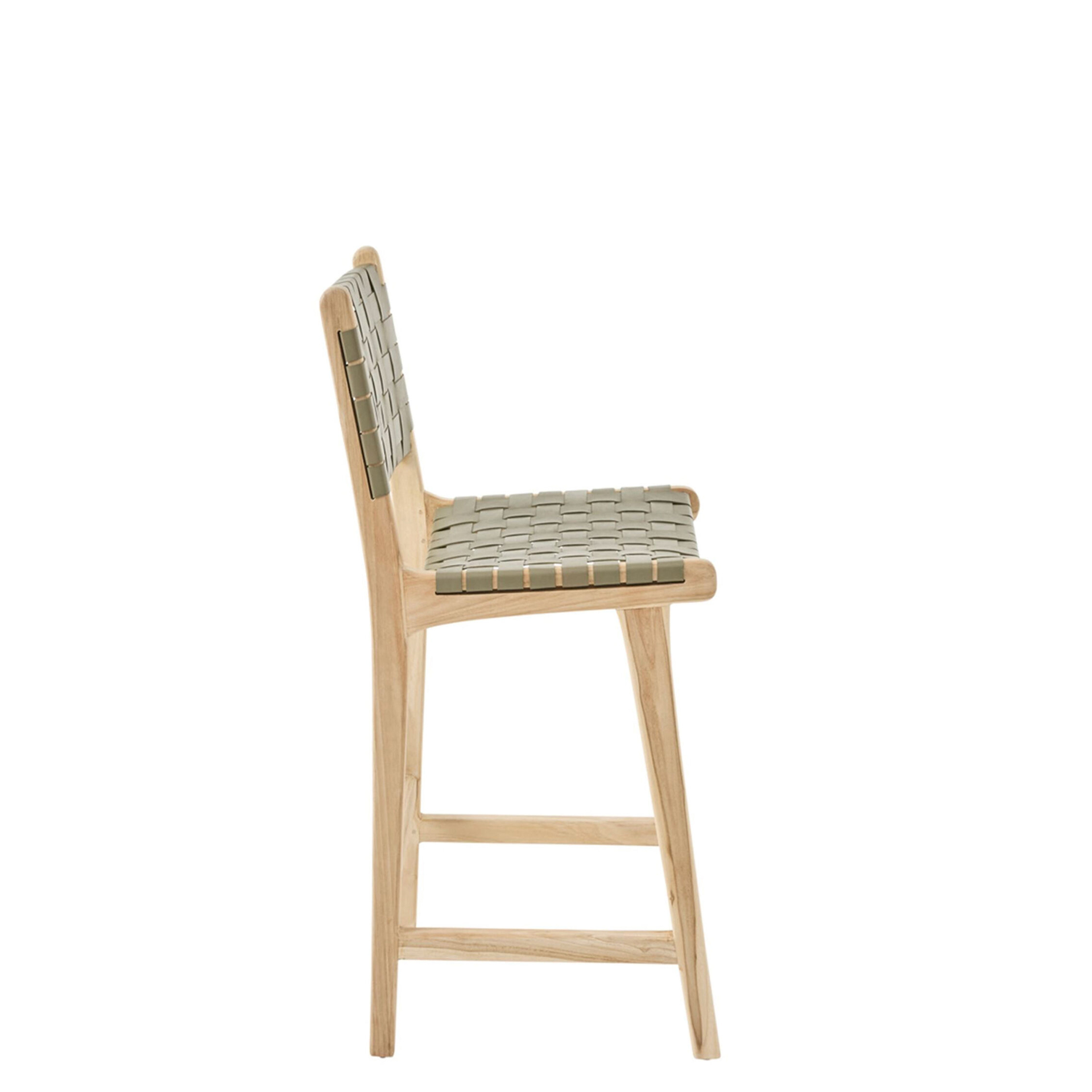 The Kalua Bar Chair brings structural elegance and contemporary craftsmanship to your outdoor lifestyle. Perfect bar chair that merges contemporary and classic elements to compliment a modern retreat home. Crafted on a durable teak frame with leather for lasting style. The Kalua Bar Chair has a clean lined silhouette for a comfortable and casual look. Highlights the beauty of solid teak, it’s a natural choice to celebrate the outdoor with indoor style. Embrace outdoor living in style as you created a cozy and inviting nook inspired by nature. Perfectly suited for calm, pared-back living with The Kalua Bar Chair.