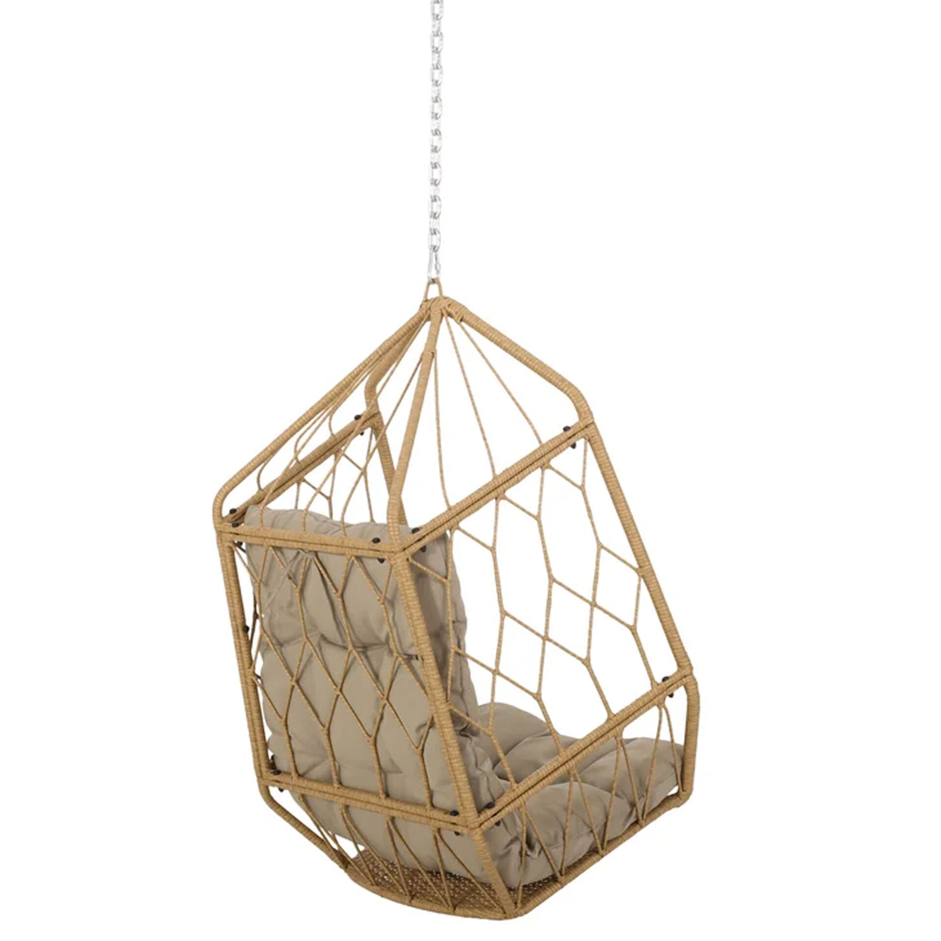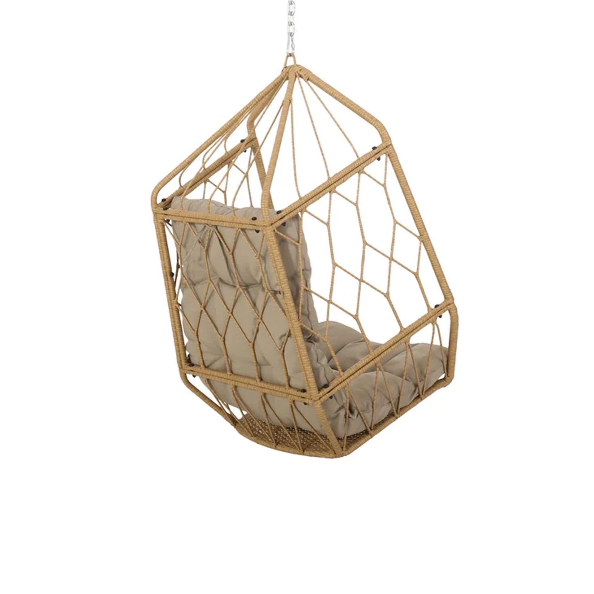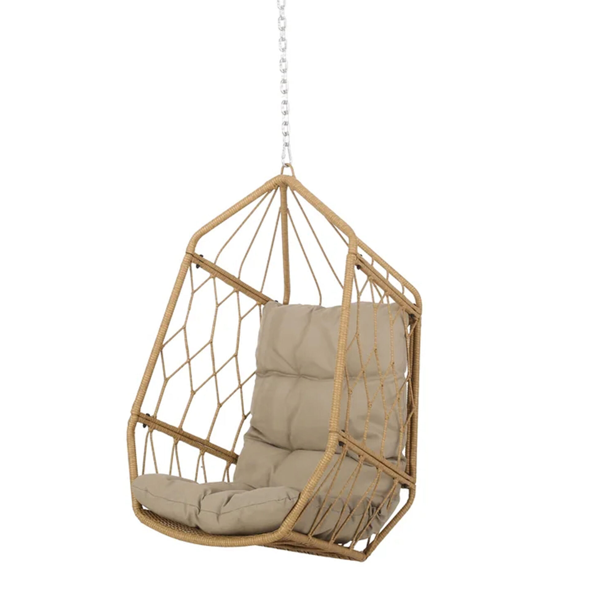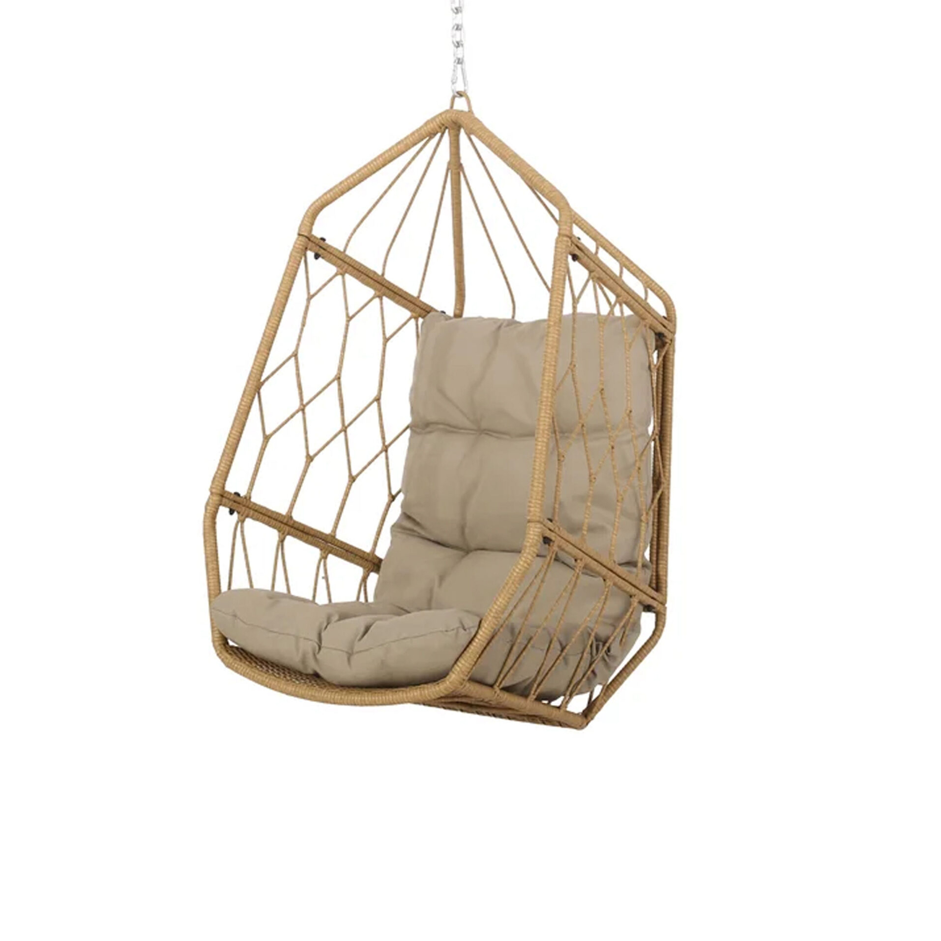 The Kaysa Swing Hanging Chair brings structural elegance and contemporary craftsmanship to your outdoor lifestyle. Perfect swing hanging chair that merges contemporary and classic elements to compliment a modern retreat home. Crafted on a durable metal frame with wicker weave with metal chains for lasting style. The Kaysa Swing Hanging Chair has a clean lined silhouette for a comfortable and casual look. Highlights the beauty ofit’s sleek design, it’s a natural choice to celebrate the outdoor with indoor style. Embrace outdoor living in style as you created a cozy and inviting nook inspired by nature. Perfectly suited for calm, pared-back living with The Kaysa Swing Hanging Chair.