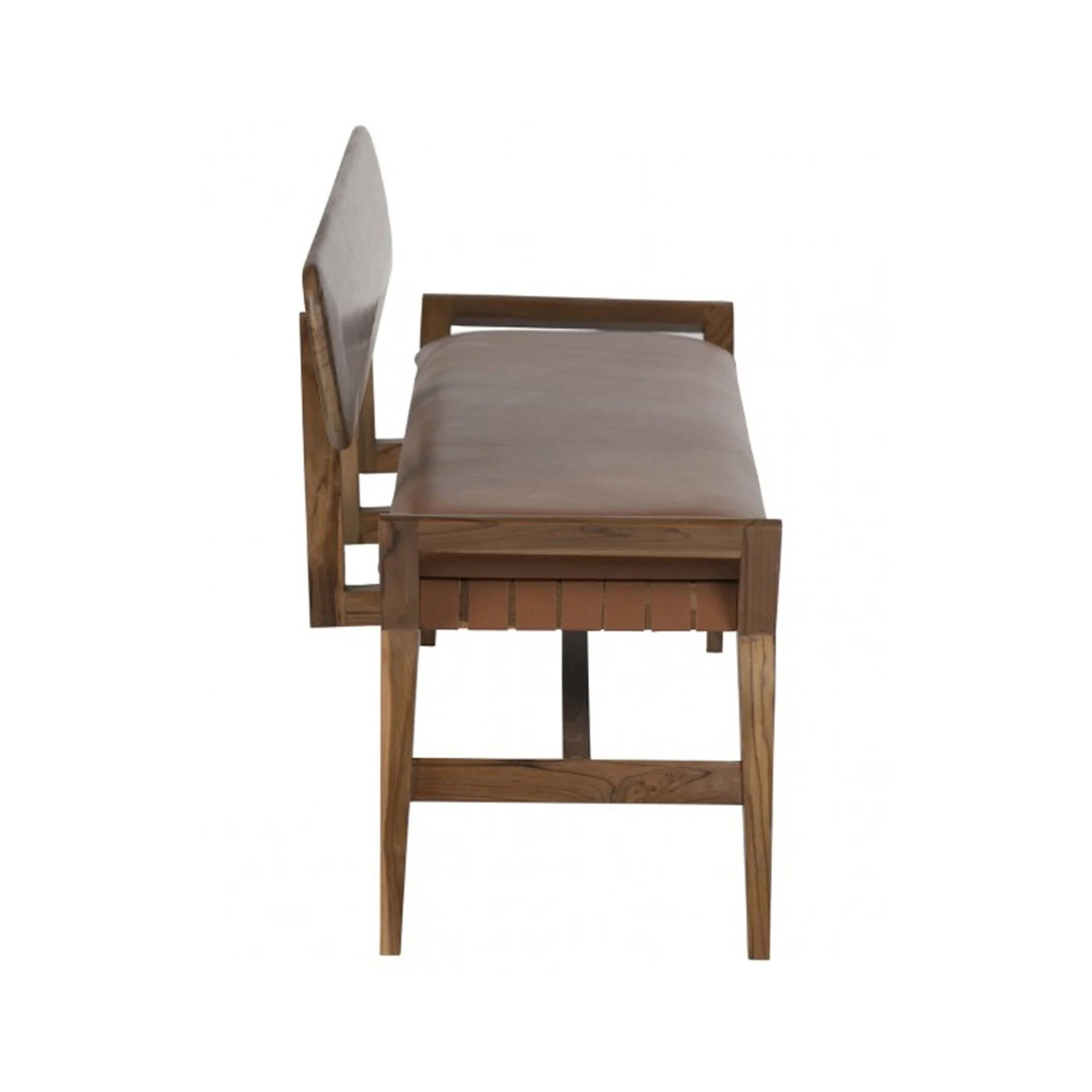 The Kela Bench brings structural elegance and contemporary craftsmanship to your outdoor lifestyle. The perfect bench that merges contemporary and classic elements to compliment a modern retreat home. Crafted on a durable teak frame with high quality leather for lasting style. The Kela Bench has a clean lined silhouette for a comfortable and casual look. Highlights the beauty of solid teak, it’s a natural choice to celebrate the outdoor with indoor style. Embrace outdoor living in style as you created a cozy and inviting nook inspired by nature. Perfectly suited for calm, pared-back living with The Kela Bench