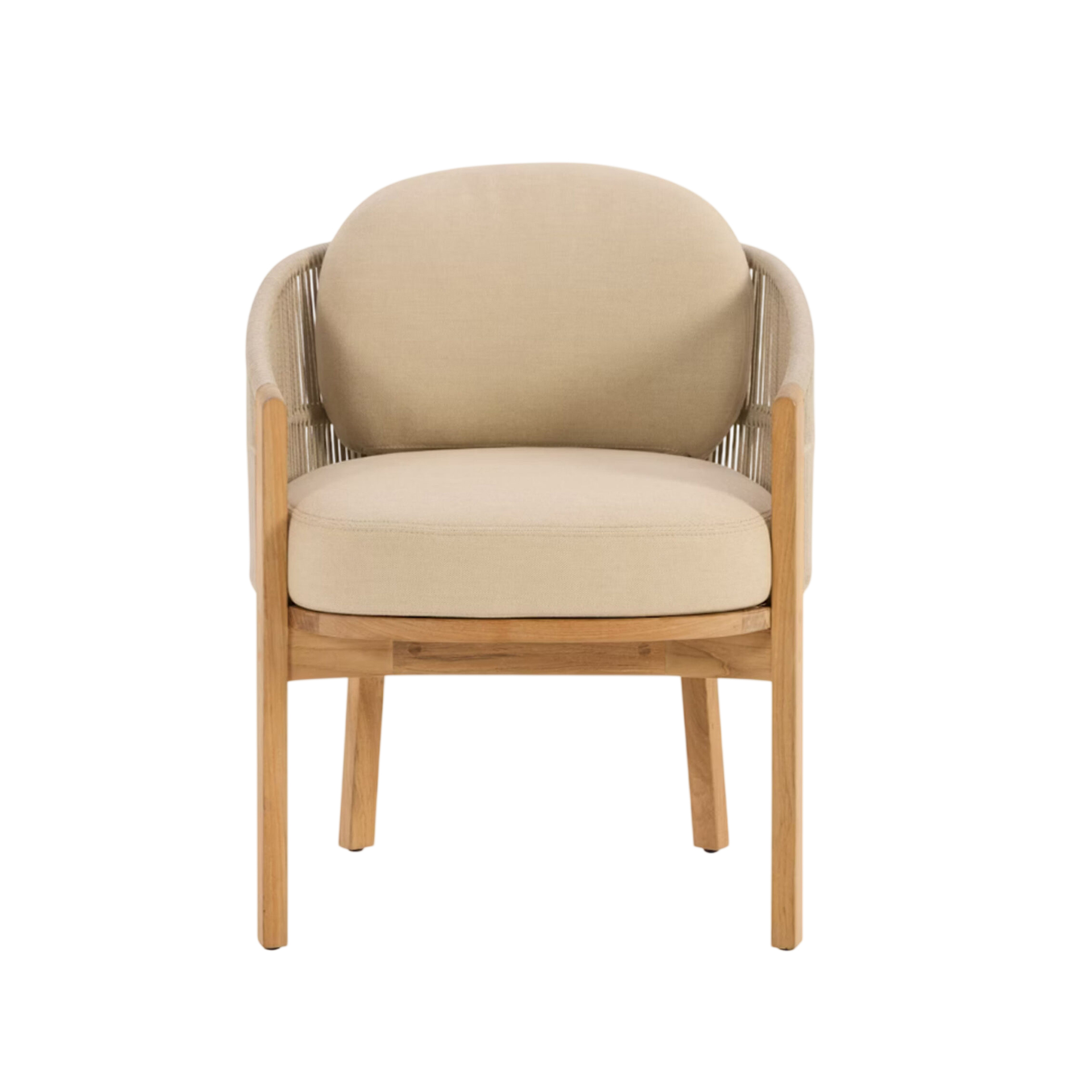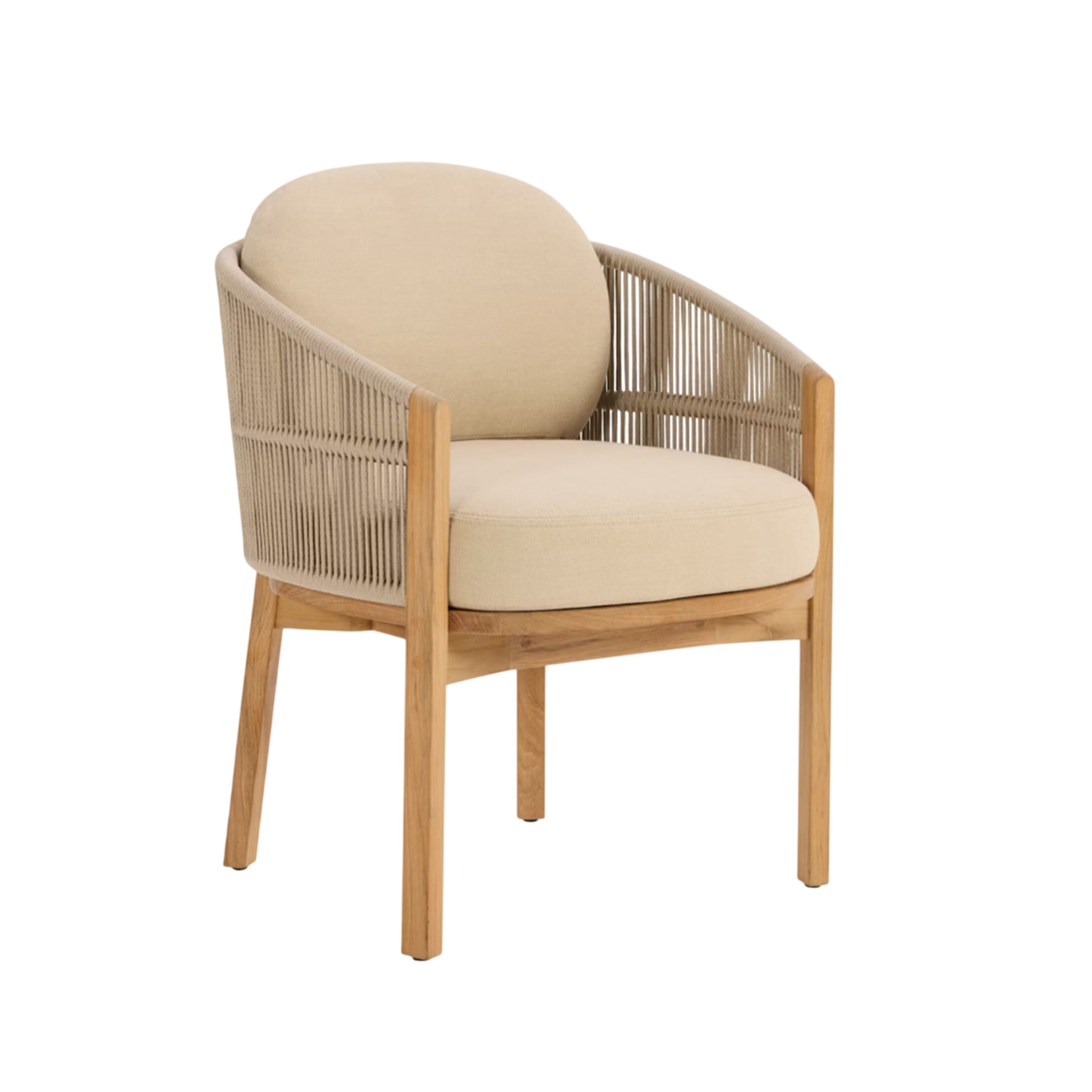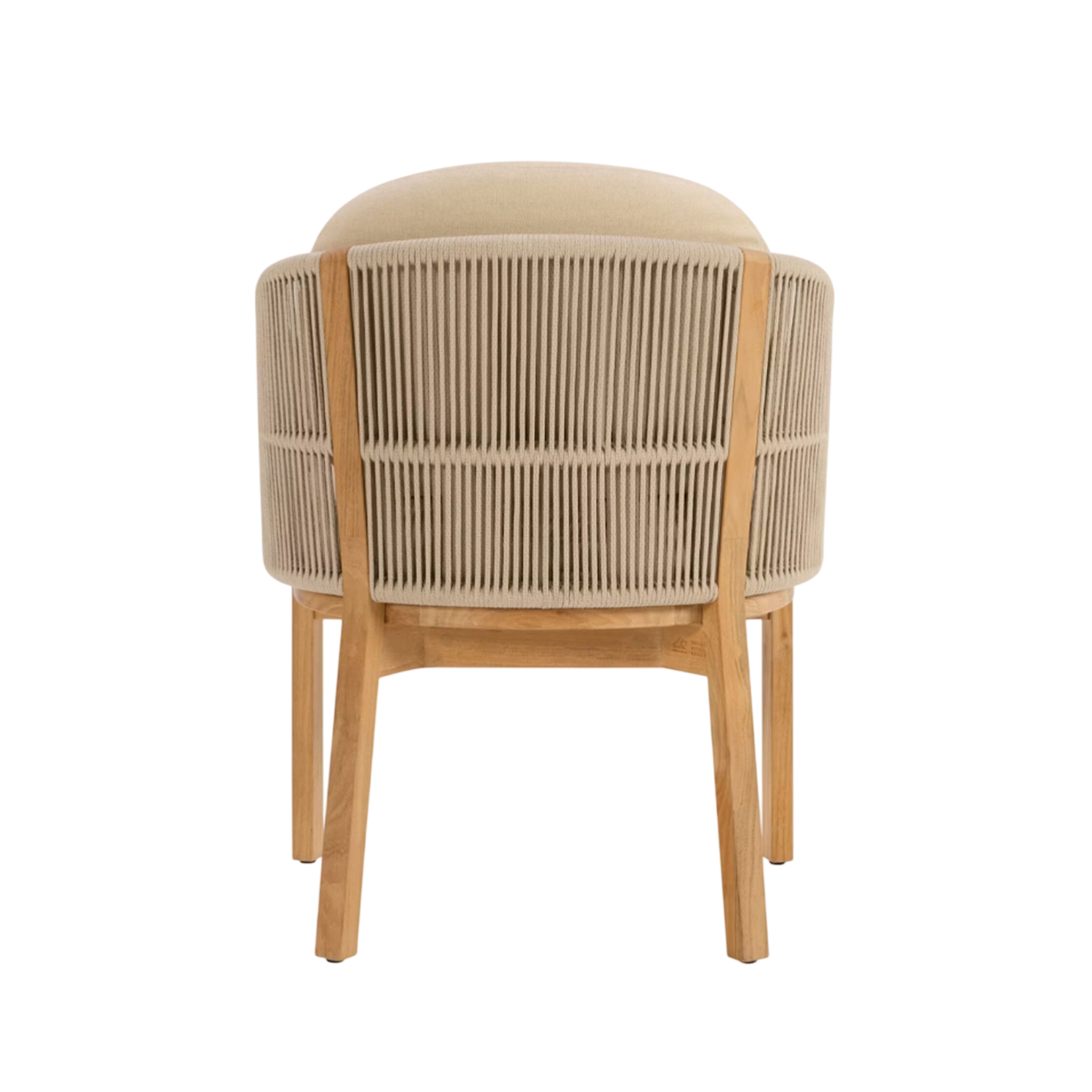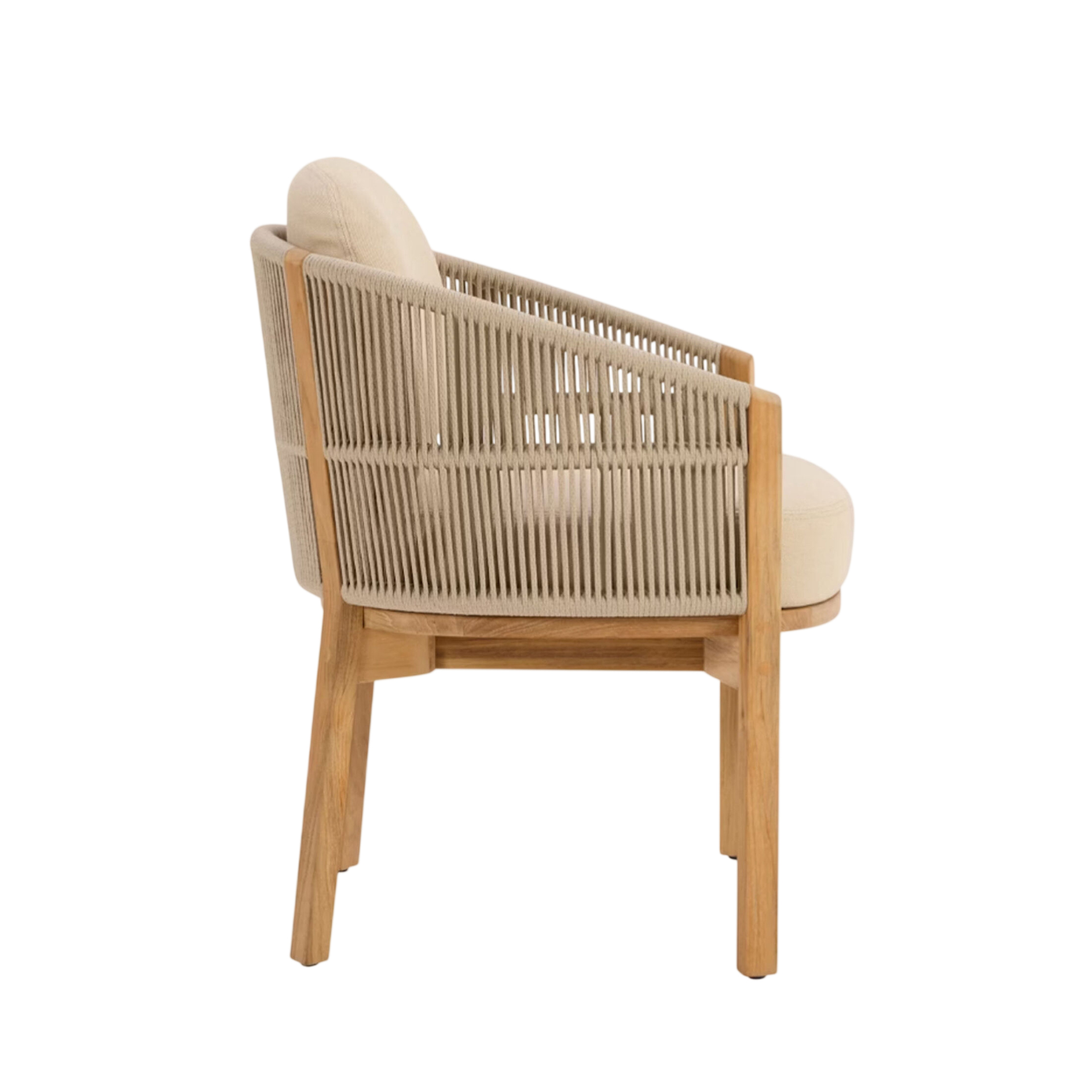 The Laras Dining Chair brings structural elegance and contemporary craftsmanship to your outdoor lifestyle. Perfect dining chair that merges contemporary and classic elements to compliment a modern retreat home. Crafted on a durable teak frame with rope detailing for lasting style. The Laras Dining Chair has a clean lined silhouette for a comfortable and casual look. Highlights the beauty of solid teak, it’s a natural choice to celebrate the outdoor with indoor style. Embrace outdoor living in style as you created a cozy and inviting nook inspired by nature. Perfectly suited for calm, pared-back living with The Laras Dining Chair.