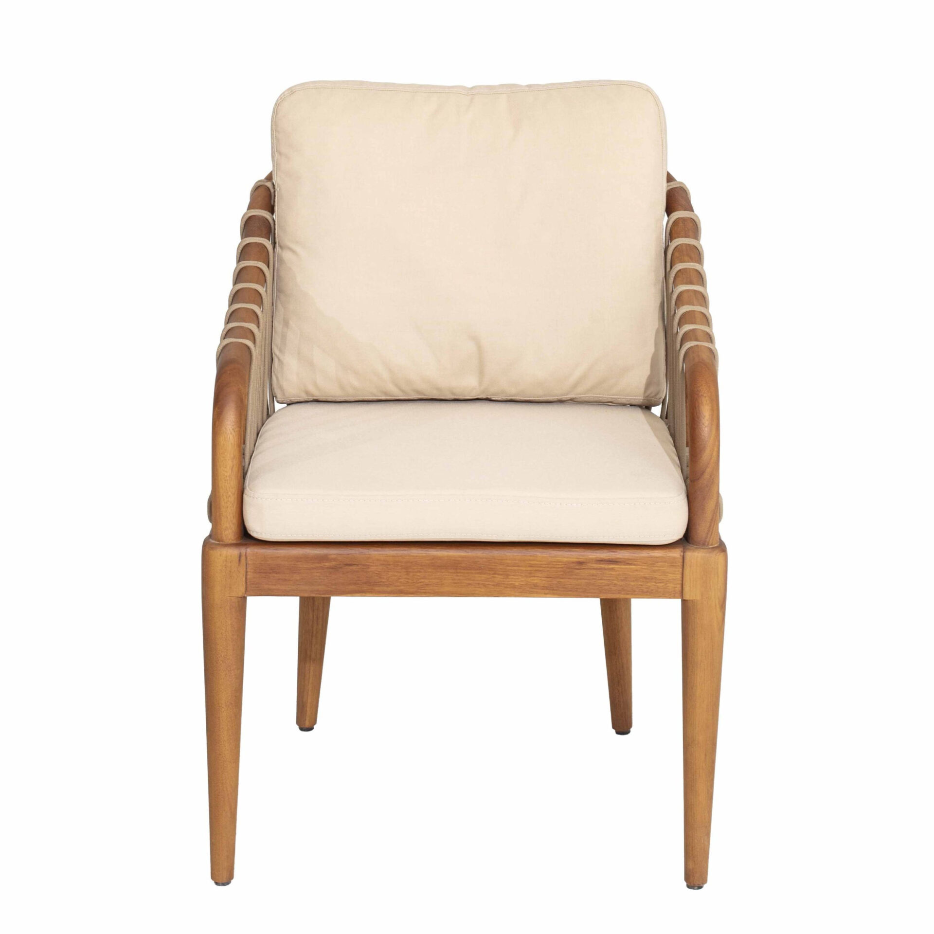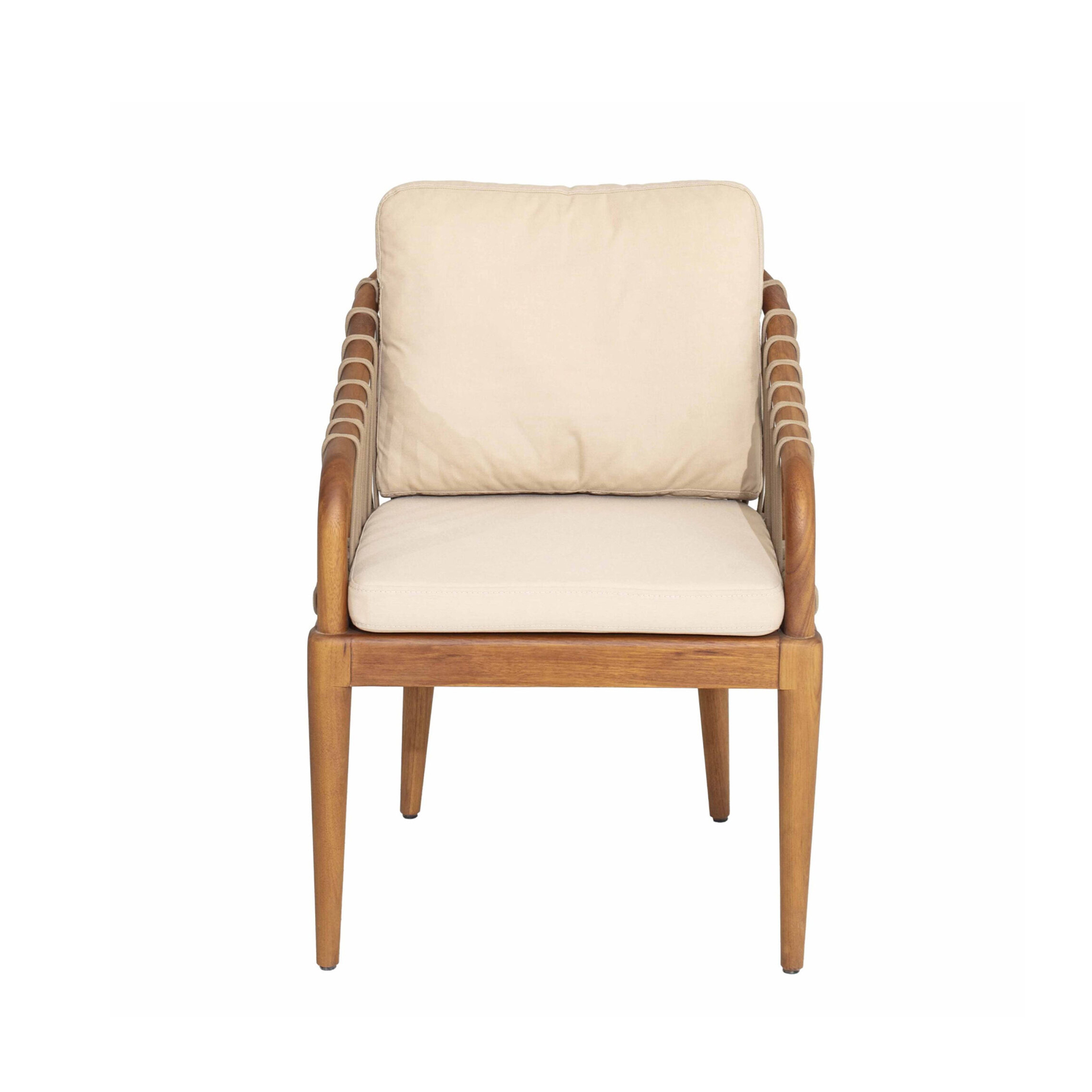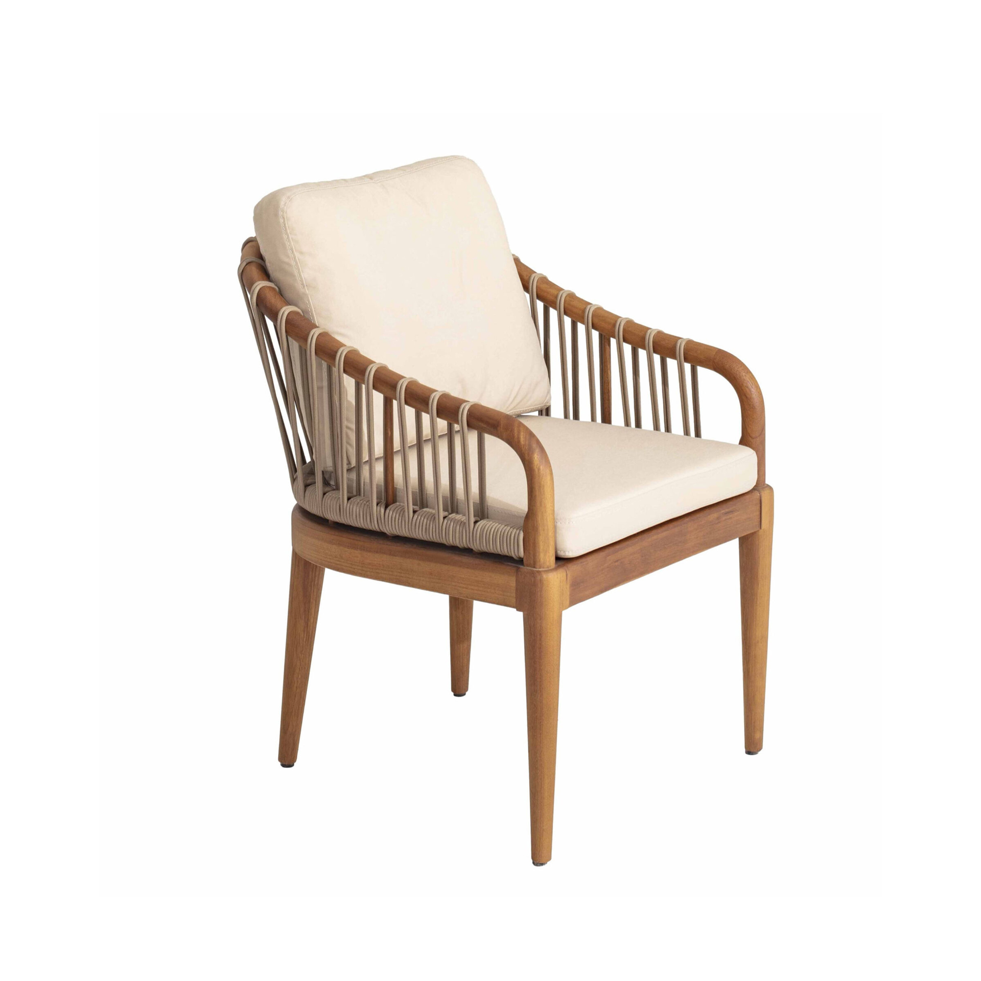 The Lasa Dining Chair brings structural elegance and contemporary craftsmanship to your outdoor lifestyle. Perfect dining chair that merges contemporary and classic elements to compliment a modern retreat home. Crafted on a durable teak frame with rope detailing for lasting style. The Lasa Dining Chair has a clean lined silhouette for a comfortable and casual look. Highlights the beauty of solid teak, it’s a natural choice to celebrate the outdoor with indoor style. Embrace outdoor living in style as you created a cozy and inviting nook inspired by nature. Perfectly suited for calm, pared-back living with The Lasa Dining Chair.