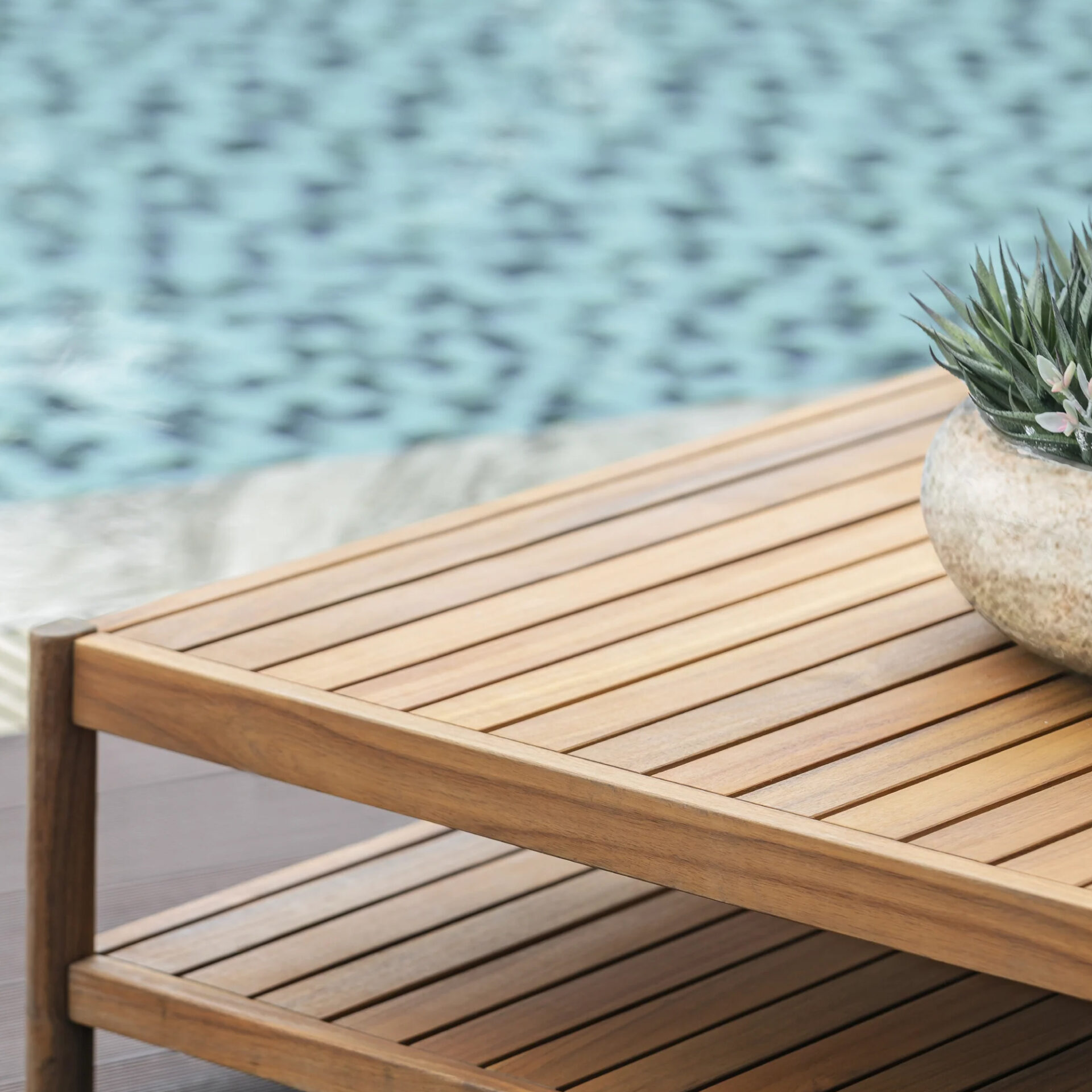 The Lavsha Coffee Table brings structural elegance and contemporary craftsmanship to your outdoor lifestyle. The perfect coffee table that merges contemporary and classic elements to compliment a modern retreat home. Crafted on a durable teak frame for lasting style. The Lavsha Coffee Table has a clean lined silhouette for a comfortable and casual look. Highlights the beauty of solid teak, it’s a natural choice to celebrate the outdoor with indoor style. Embrace outdoor living in style as you created a cozy and inviting nook inspired by nature. Perfectly suited for calm, pared-back living with The Lavsha Coffee Table
