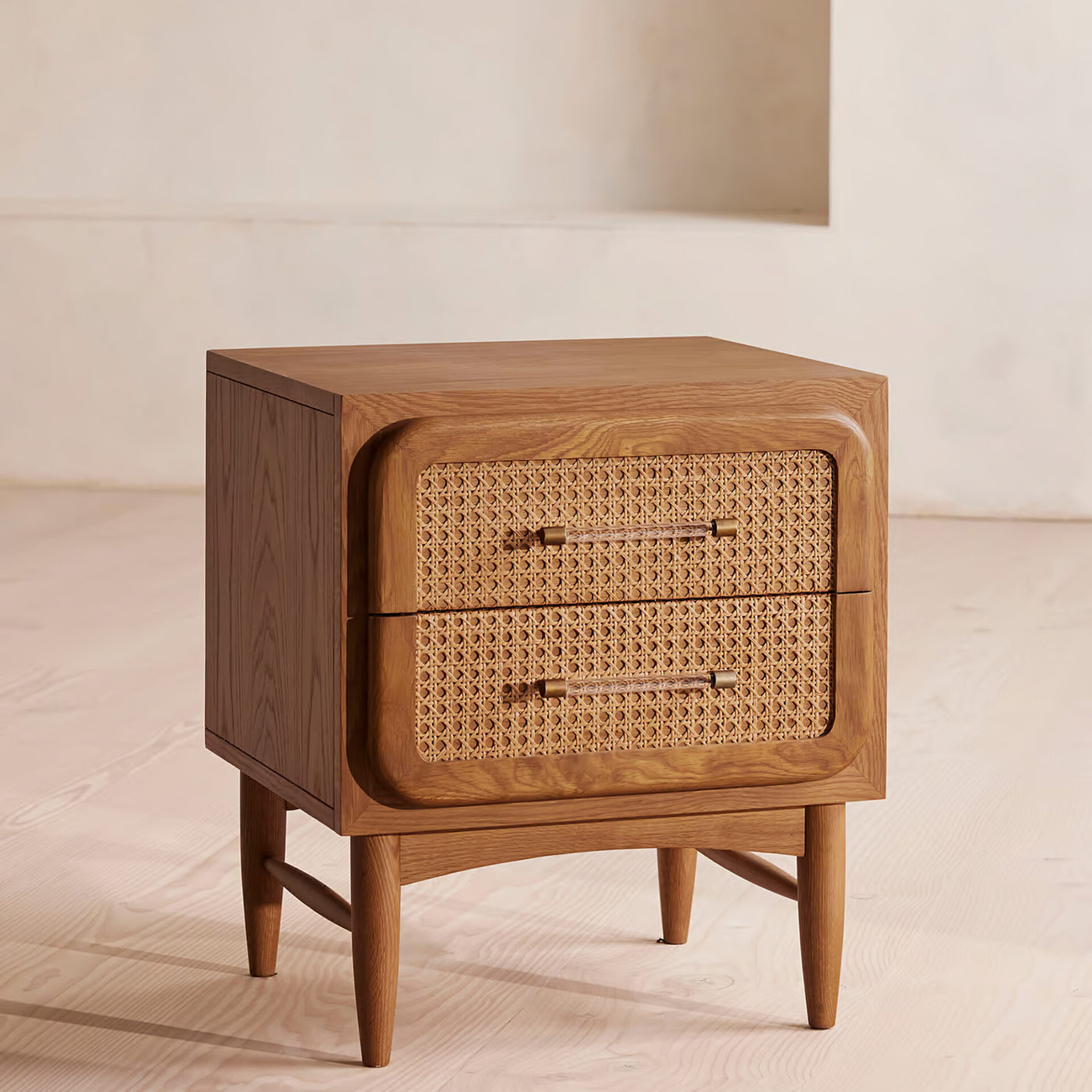 The Liara Nightstand brings structural elegance and contemporary craftsmanship to your indoor lifestyle. The perfect nightstand that merges contemporary and classic elements to compliment a modern retreat home. Crafted on a durable teak frame with natural rattan detailing for lasting style. The Liara Nightstand has a clean lined silhouette for a comfortable and casual look. Highlights the beauty of solid teak, it’s a natural choice to celebrate the indoor with outdoor style. Embrace indoor living in style as you created a cozy and inviting nook inspired by nature. Perfectly suited for calm, pared-back living with The Liara Nightstand.