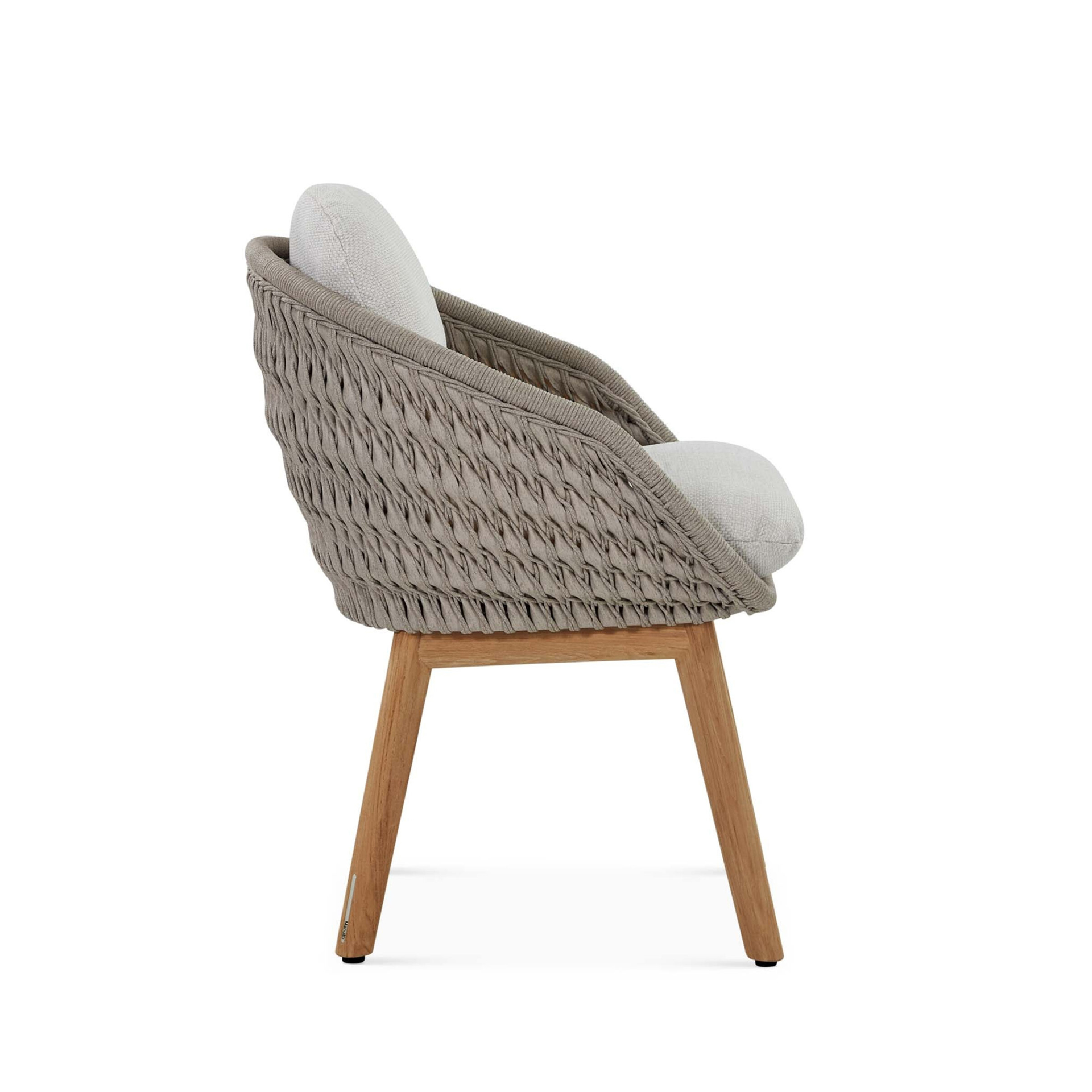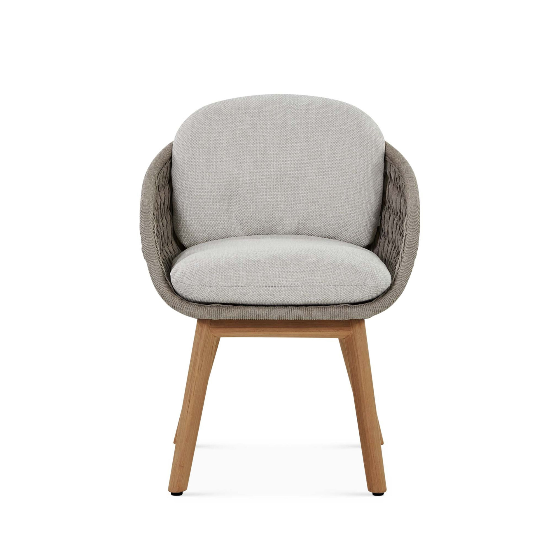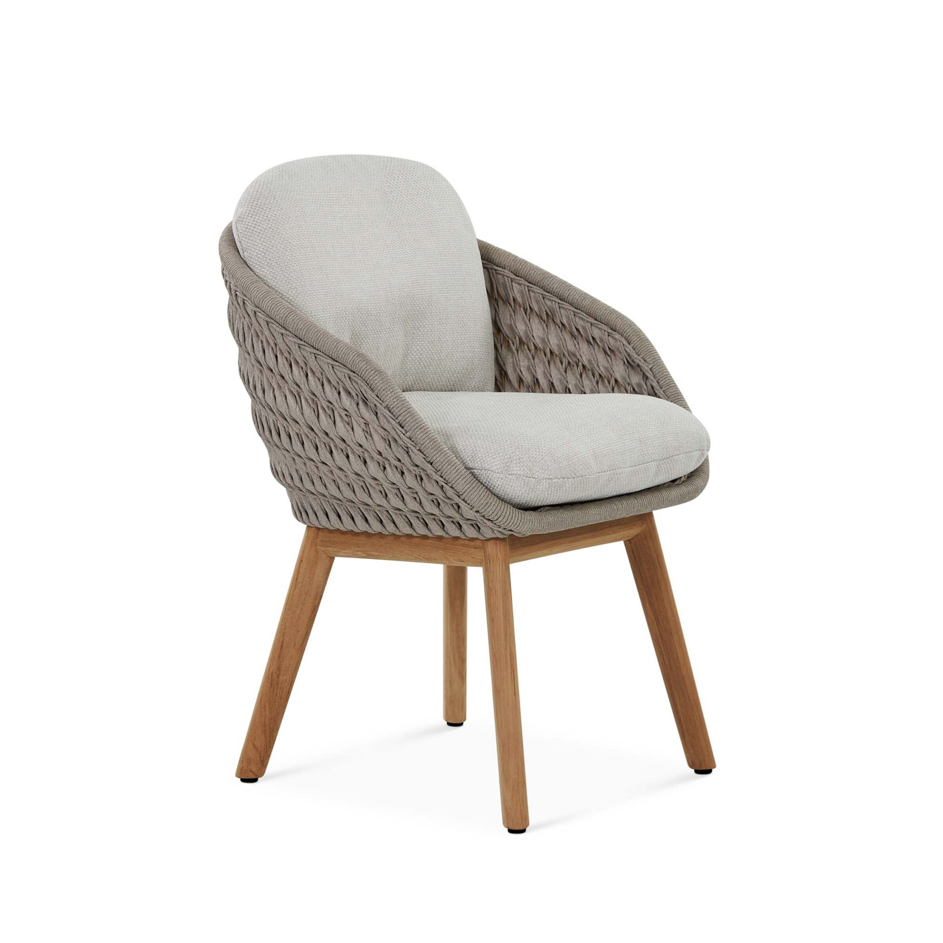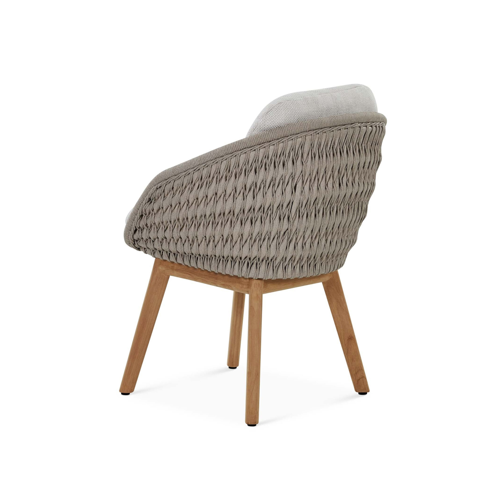 The Livia Dining Chair brings structural elegance and contemporary craftsmanship to your outdoor lifestyle. Perfect dining chair that merges contemporary and classic elements to compliment a modern retreat home. Crafted on a durable teak frame with ropw detailing for lasting style. The Livia Dining Chair has a clean lined silhouette for a comfortable and casual look. Highlights the beauty of solid teak, it’s a natural choice to celebrate the outdoor with indoor style. Embrace outdoor living in style as you created a cozy and inviting nook inspired by nature. Perfectly suited for calm, pared-back living with The Livia Dining Chair.
