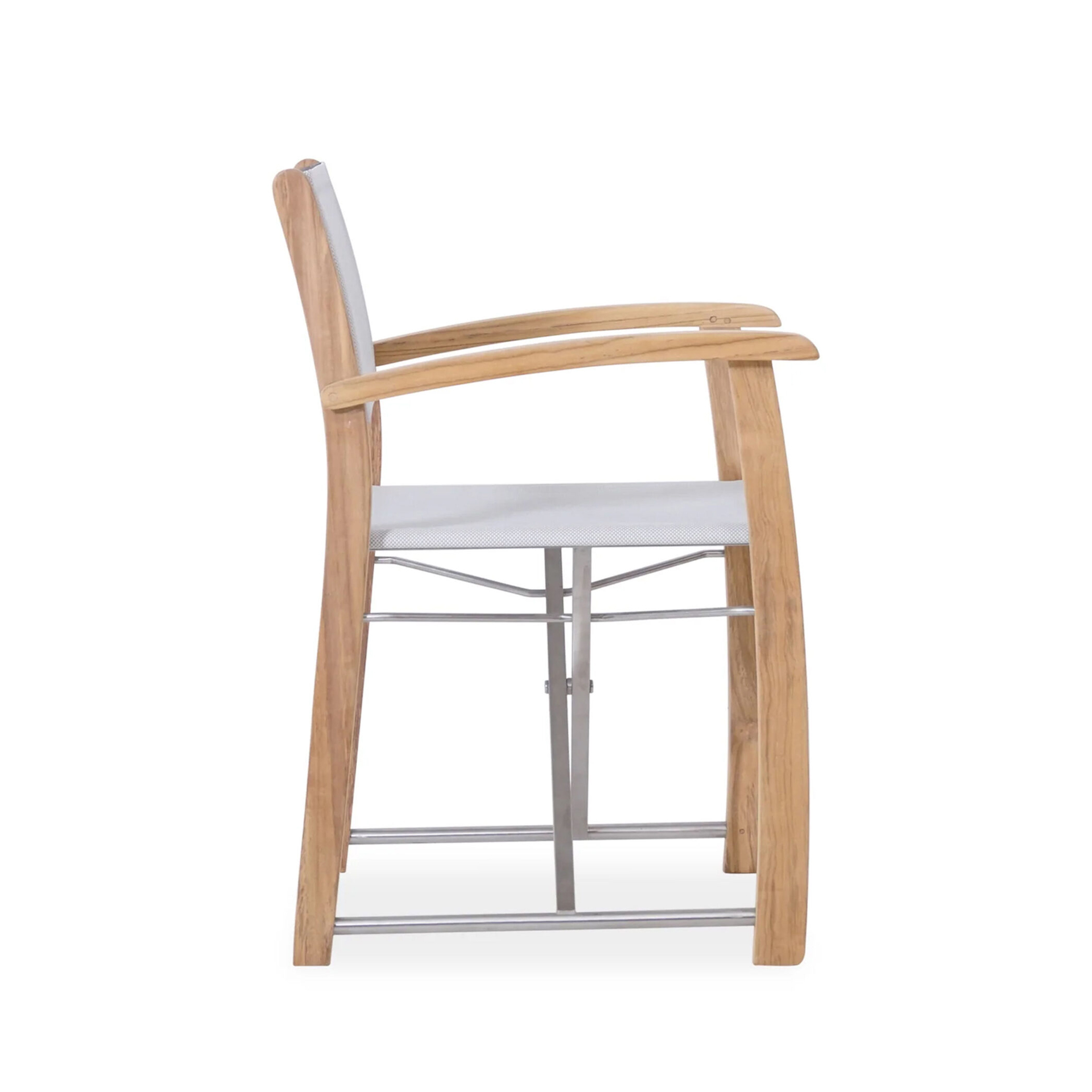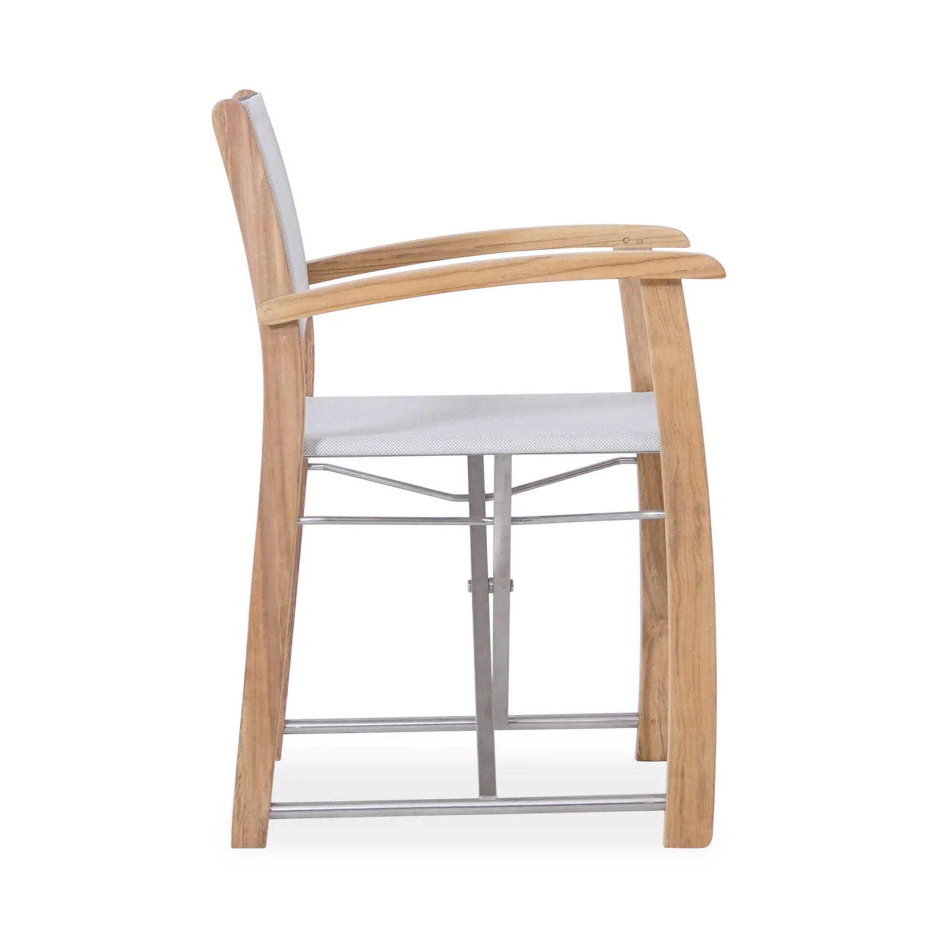 The Maria Dining Chair brings structural elegance and contemporary craftsmanship to your outdoor lifestyle. Perfect dining chair that merges contemporary and classic elements to compliment a modern retreat home. Crafted on a durable teak frame with metal support for lasting style. The Maria Dining Chair has a clean lined silhouette for a comfortable and casual look. Highlights the beauty of solid teak, it’s a natural choice to celebrate the outdoor with indoor style. Embrace outdoor living in style as you created a cozy and inviting nook inspired by nature. Perfectly suited for calm, pared-back living with The Maria Dining Chair.