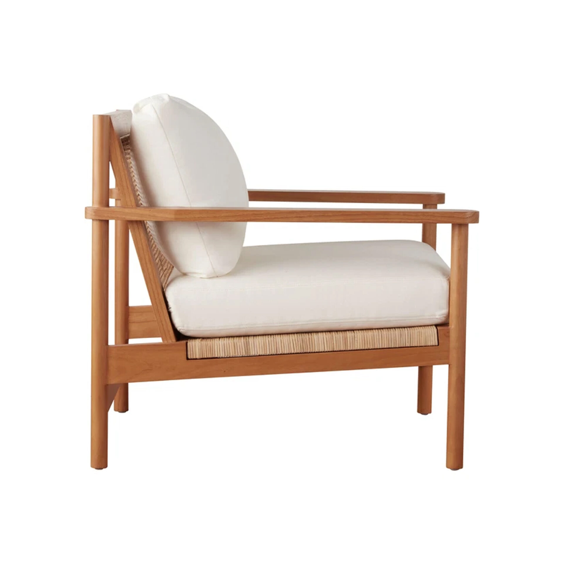 The Maryan Lounge Chair brings structural elegance and contemporary craftsmanship to your outdoor lifestyle. Perfect lounge chair that merges contemporary and classic elements to compliment a modern retreat home. Crafted on a durable teak frame with natural rattan for lasting style. The Maryan Lounge Chair has a clean lined silhouette for a comfortable and casual look. Highlights the beauty of solid teak, it’s a natural choice to celebrate the outdoor with indoor style. Embrace outdoor living in style as you created a cozy and inviting nook inspired by nature. Perfectly suited for calm, pared-back living with The Maryan Lounge Chair.
