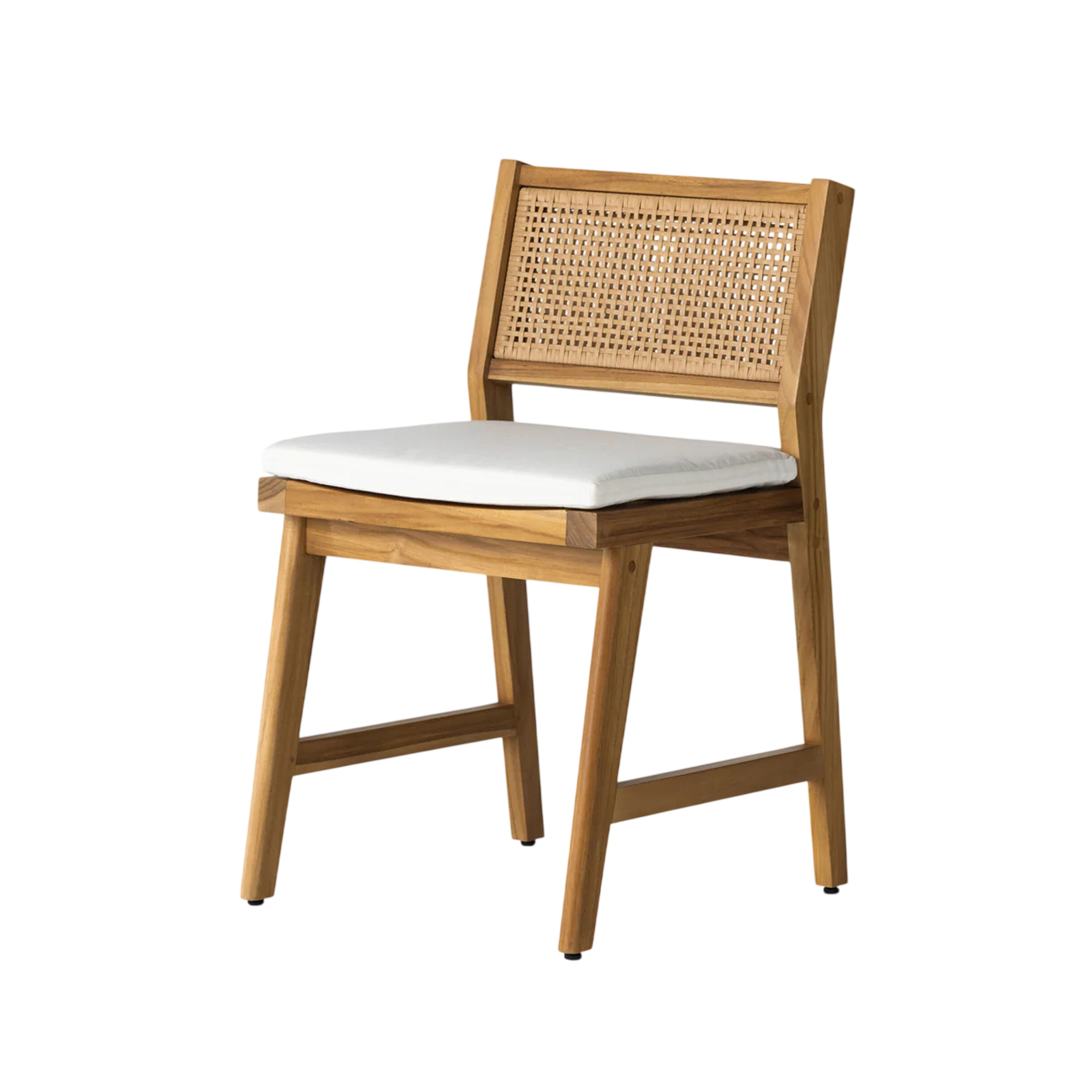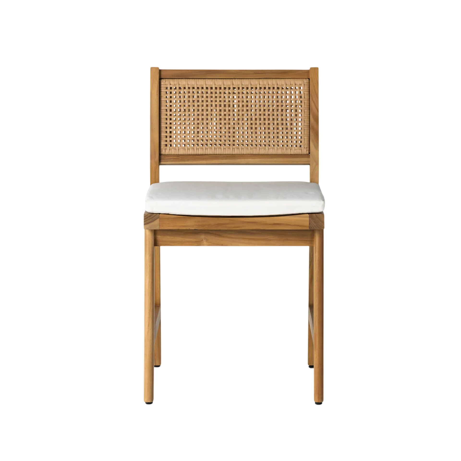 The Mira Dining Chair brings structural elegance and contemporary craftsmanship to your outdoor lifestyle. Perfect dining chair that merges contemporary and classic elements to compliment a modern retreat home. Crafted on a durable teak frame with natural rattan detailing for lasting style. The Mira Dining Chair has a clean lined silhouette for a comfortable and casual look. Highlights the beauty of solid teak, it’s a natural choice to celebrate the outdoor with indoor style. Embrace outdoor living in style as you created a cozy and inviting nook inspired by nature. Perfectly suited for calm, pared-back living with The Mira Dining Chair.