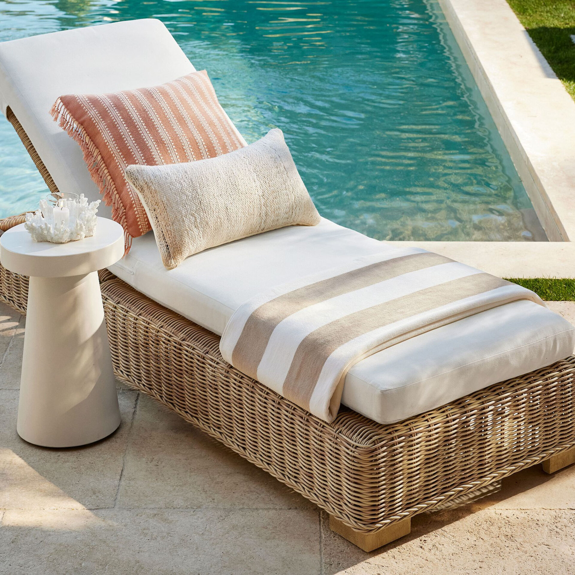 The Nadlyn Sun Lounger brings structural elegance and contemporary craftsmanship to your outdoor lifestyle. The perfect sun lounger that merges contemporary and classic elements to compliment a modern retreat home. Crafted on a durable teak frame with synthetic rattan detailing for lasting style. The Nadlyn Sun Lounger has a clean lined silhouette for a comfortable and casual look. Highlights the beauty of solid teak, it’s a natural choice to celebrate the outdoor with indoor style. Embrace outdoor living in style as you created a cozy and inviting nook inspired by nature. Perfectly suited for calm, pared-back living with The Nadlyn Sun Lounger