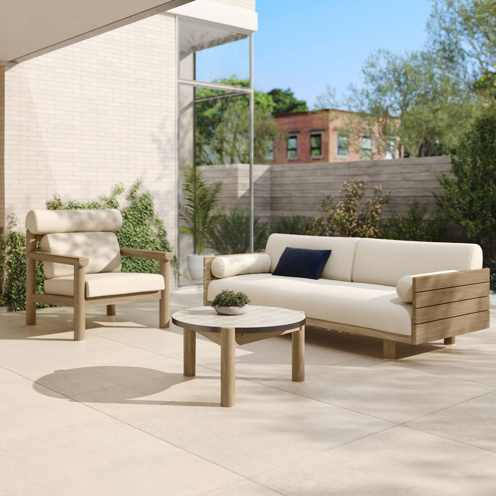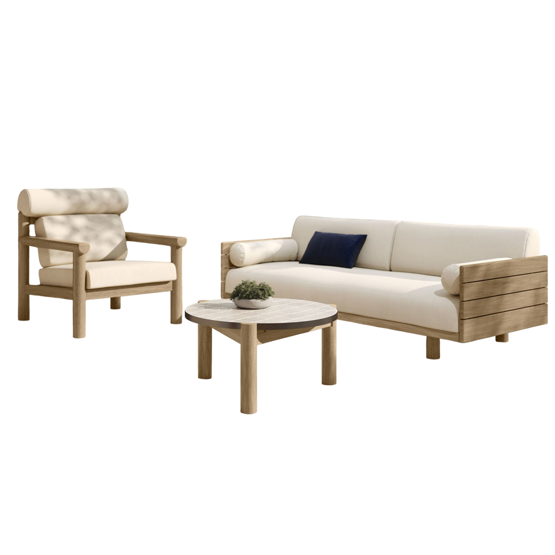 This sofa set is a versatile accent piece that showcases your unique personality and invites you to relax. Borrowing from the carefree spirit of coastal aesthetics, this sofa set is clean and uncluttered for a breezy look and feel. Perfect for any outdoor setting, this sofa set features teak wood for lasting beauty. This sofa set’s comfortable and casual style is best for outdoor aesthetic.