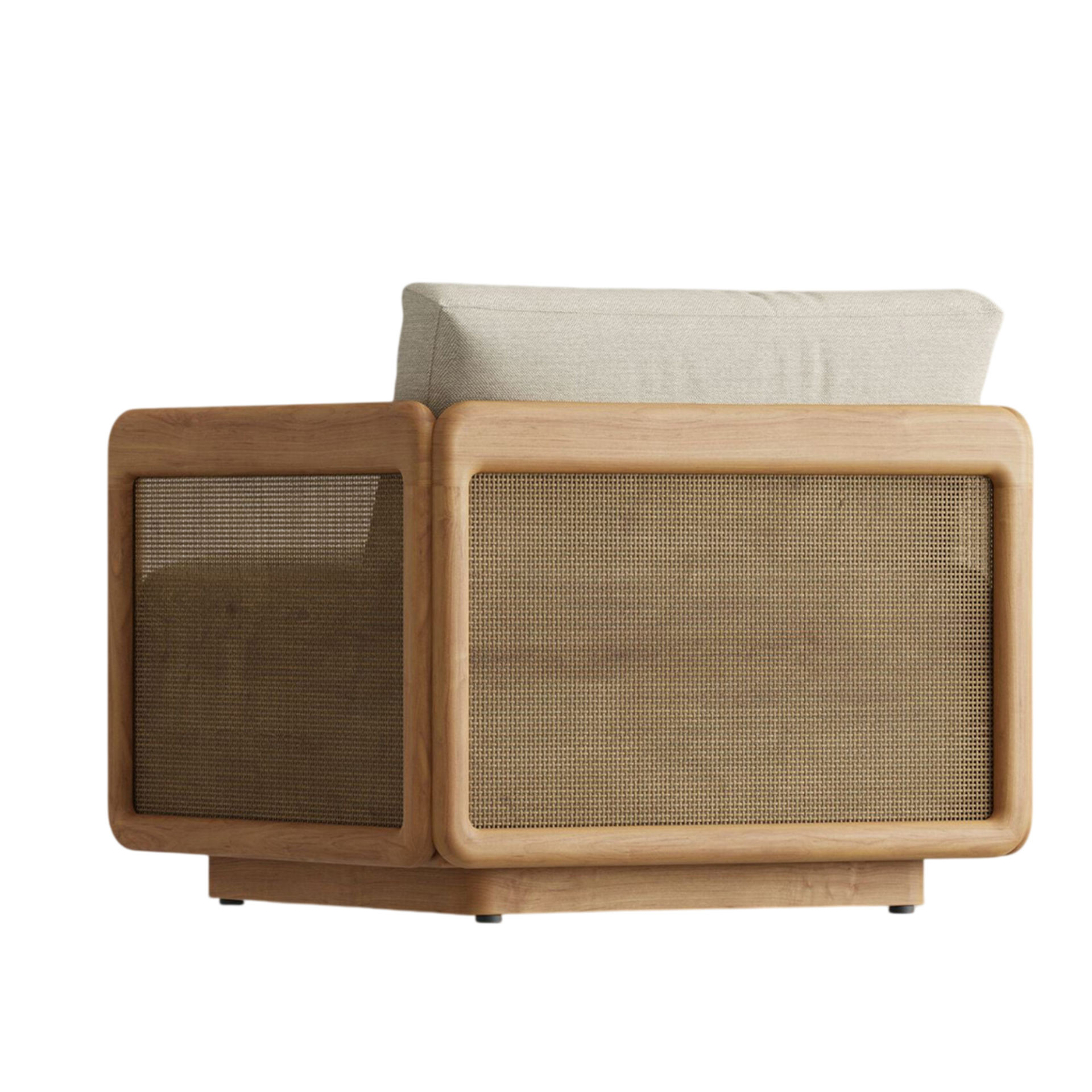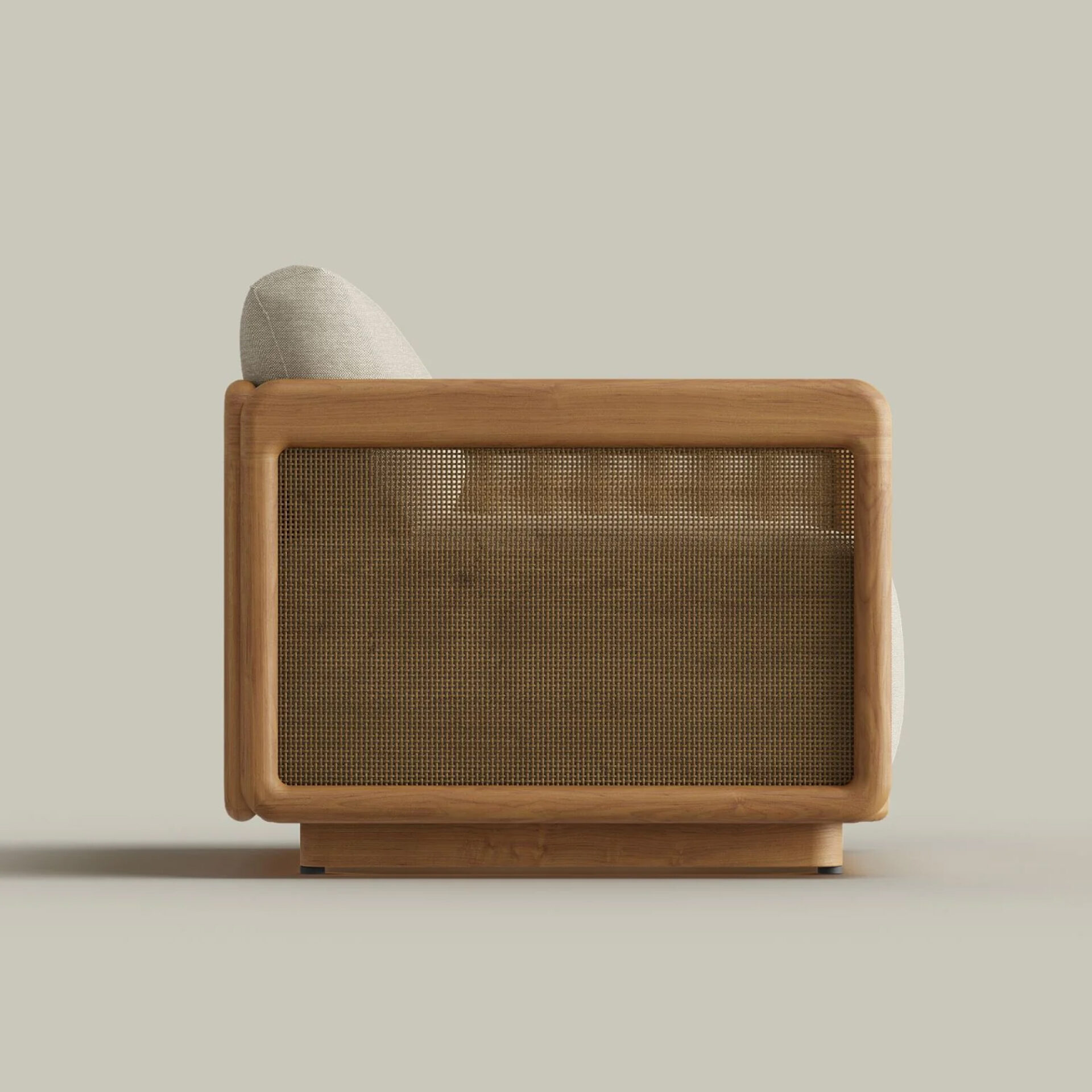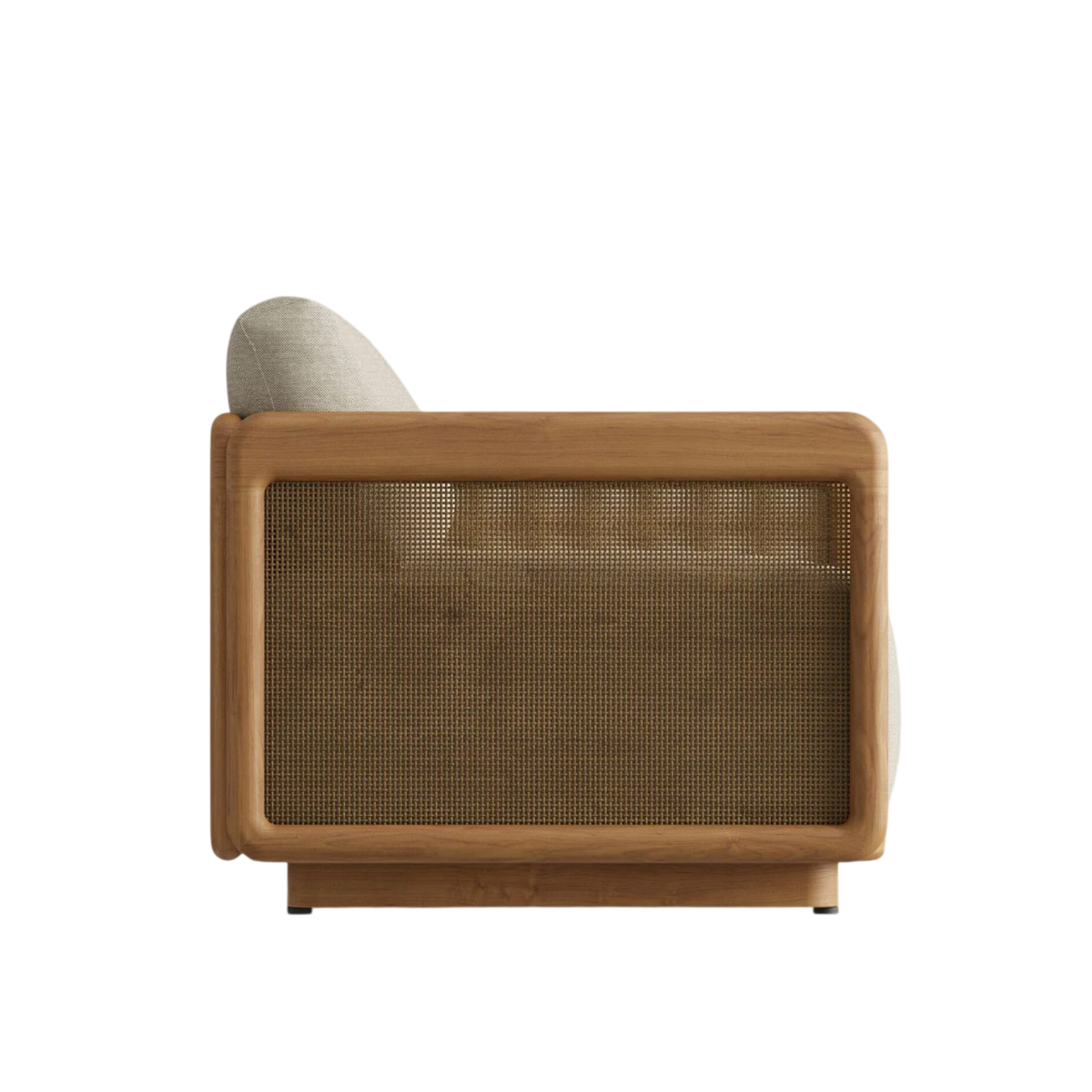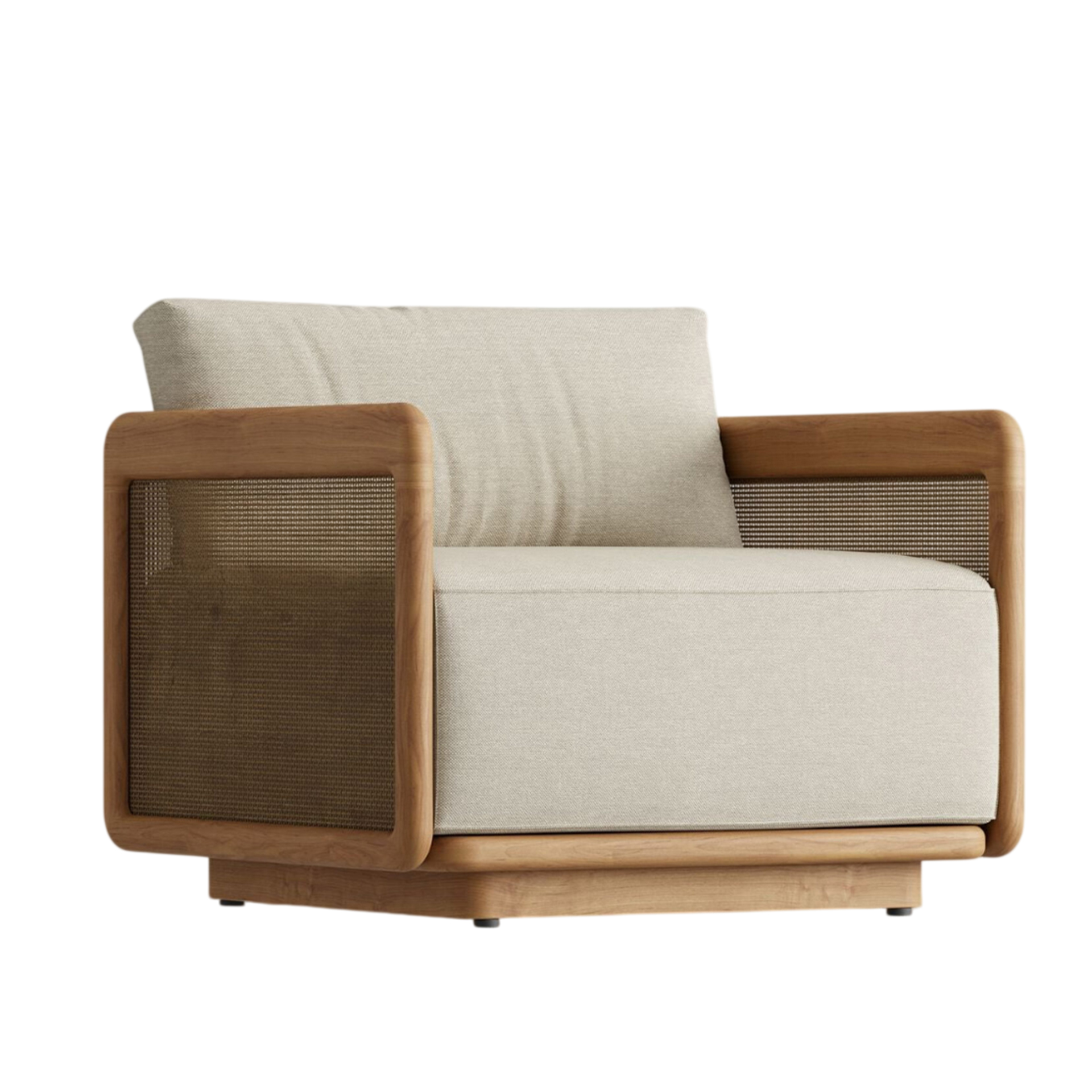 The Neva Lounge Chair brings structural elegance and contemporary craftsmanship to your outdoor lifestyle. Perfect lounge chair that merges contemporary and classic elements to compliment a modern retreat home. Crafted on a durable teak frame with natural rattan detailing for lasting style. The Neva Lounge Chair has a clean lined silhouette for a comfortable and casual look. Highlights the beauty of solid teak, it’s a natural choice to celebrate the outdoor with indoor style. Embrace outdoor living in style as you created a cozy and inviting nook inspired by nature. Perfectly suited for calm, pared-back living with The Neva Lounge Chair.
