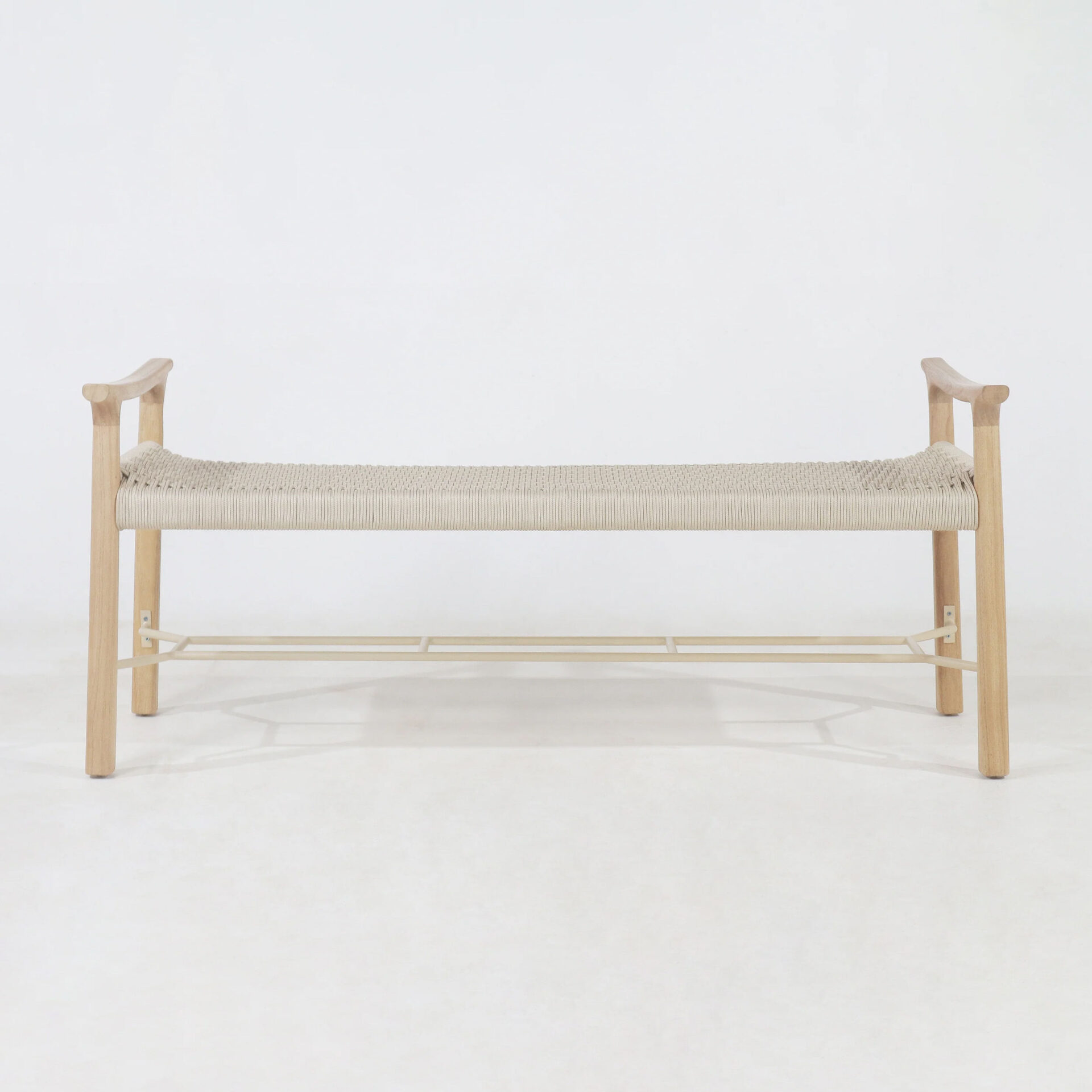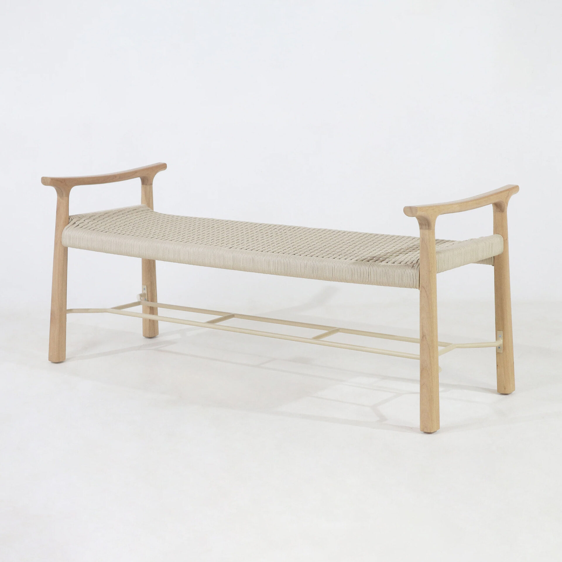 The Okala Bench brings structural elegance and contemporary craftsmanship to your outdoor lifestyle. The perfect bench that merges contemporary and classic elements to compliment a modern retreat home. Crafted on a durable teak frame with rope for lasting style. The Okala Bench has a clean lined silhouette for a comfortable and casual look. Highlights the beauty of solid teak, it’s a natural choice to celebrate the outdoor with indoor style. Embrace outdoor living in style as you created a cozy and inviting nook inspired by nature. Perfectly suited for calm, pared-back living with The Okala Bench