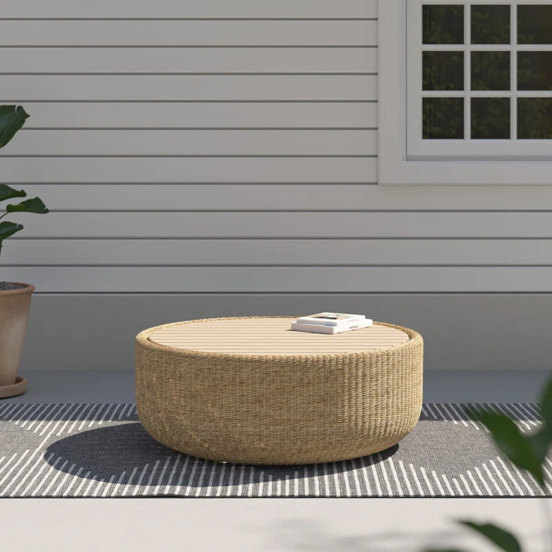 The Orca Coffee Table brings structural elegance and contemporary craftsmanship to your outdoor lifestyle. The perfect coffee table that merges contemporary and classic elements to compliment a modern retreat home. Crafted on a durable metal frame with synthetic rattan and teak wood top for lasting style. The Orca Coffee Table has a clean lined silhouette for a comfortable and casual look. Highlights the beauty of solid teak, it’s a natural choice to celebrate the outdoor with indoor style. Embrace outdoor living in style as you created a cozy and inviting nook inspired by nature. Perfectly suited for calm, pared-back living with The Orca Coffee Table