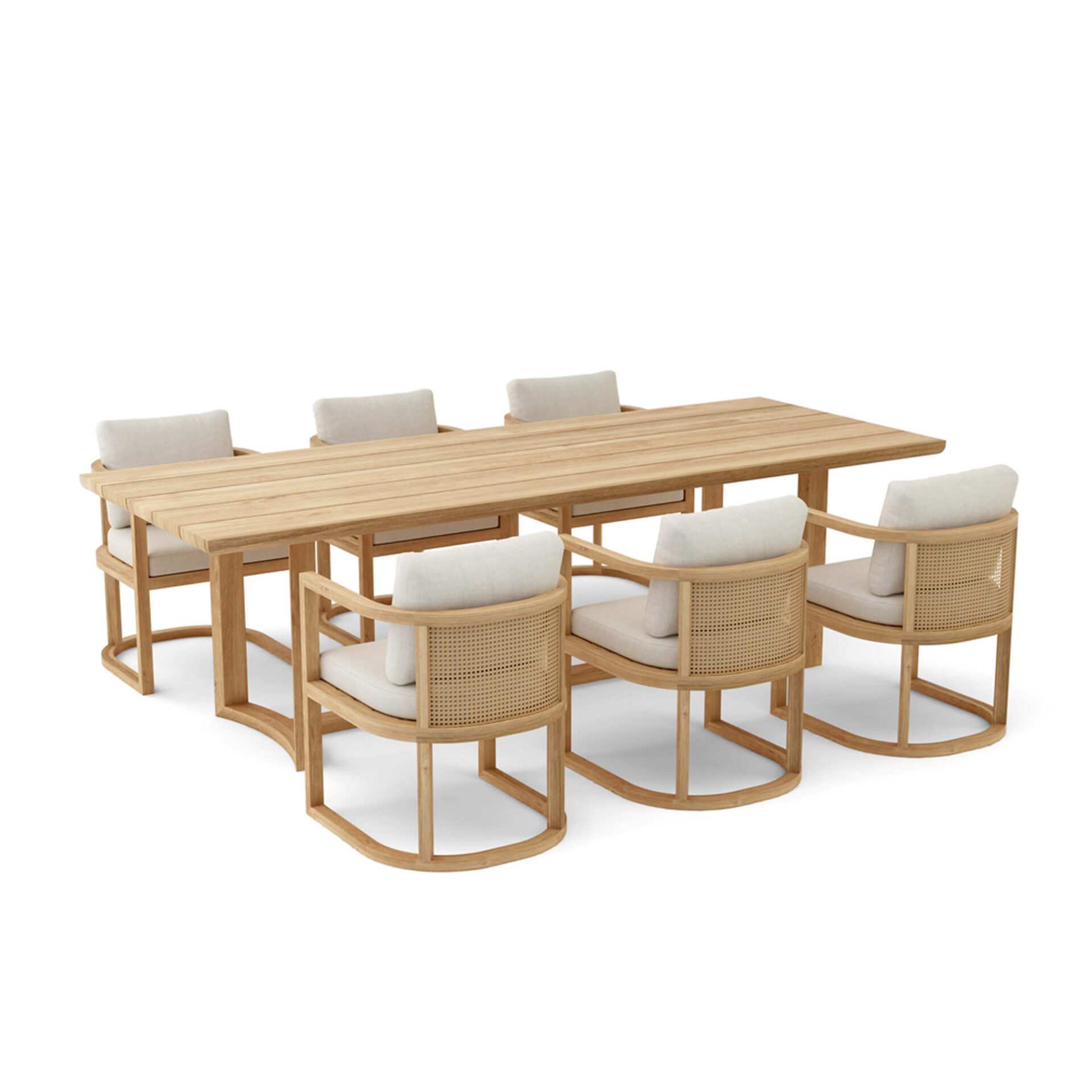 The Pam Dining Sets brings structural elegance and contemporary craftsmanship to your outdoor lifestyle. Perfect dining sets that merges contemporary and classic elements to compliment a modern retreat home. Crafted on a durable teak frame with natural rattan detailing seats for lasting style. The Pam Dining Sets has a clean lined silhouette for a comfortable and casual look. Highlights the beauty of solid teak, it’s a natural choice to celebrate the outdoor with indoor style. Enjoy nature in style while creating cosy an outdoor nooks made for pared back living with The Pam Dining Sets.