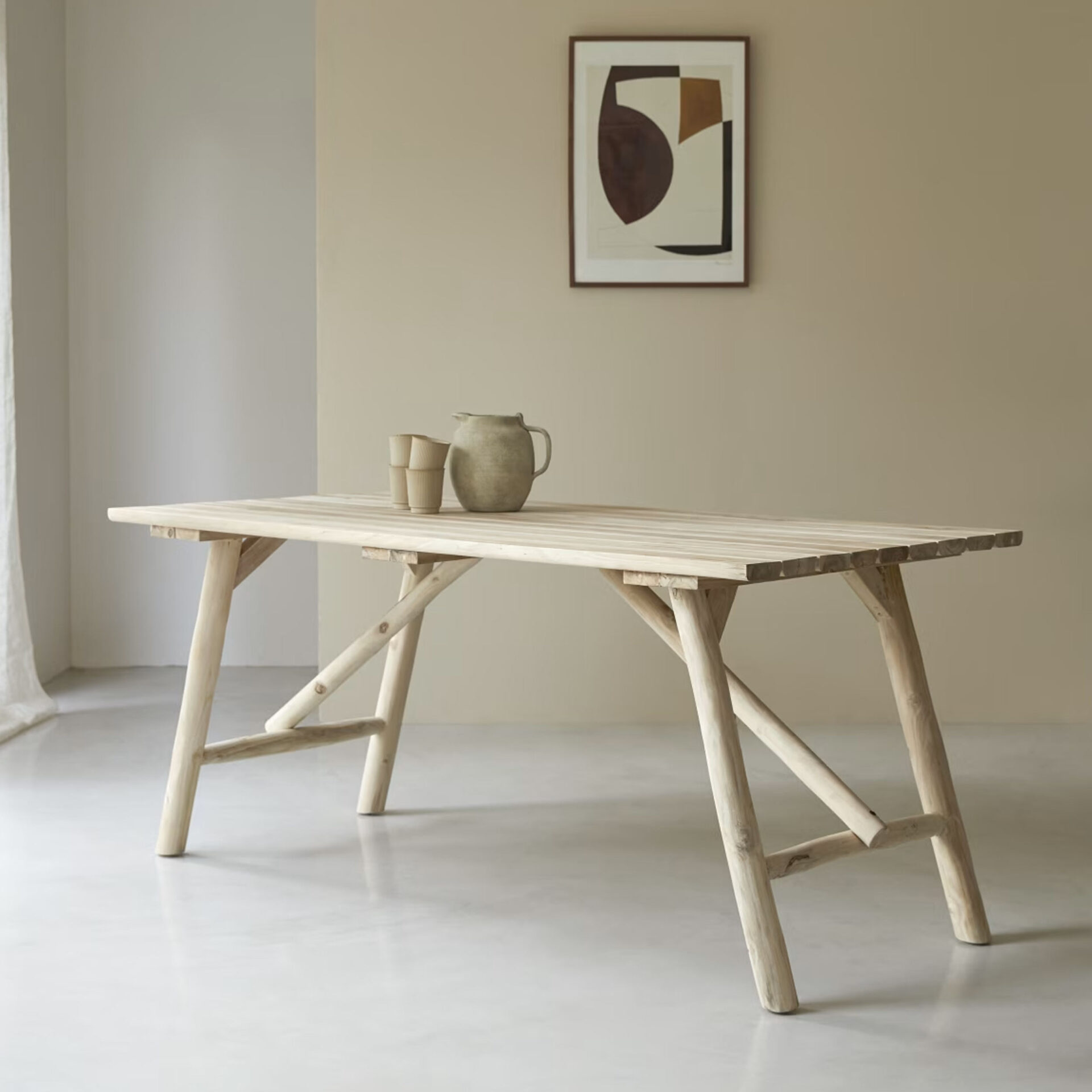 The Pano Dining Table brings structural elegance and contemporary craftsmanship to your outdoor lifestyle. Perfect dining table that merges contemporary and classic elements to compliment a modern retreat home. Crafted on a durable teak frame for lasting style. The Pano Dining Table has a clean lined silhouette for a comfortable and casual look. Highlights the beauty of solid teak, it’s a natural choice to celebrate the outdoor with indoor style. Embrace outdoor living in style as you created a cozy and inviting nook inspired by nature. Perfectly suited for calm, pared-back living with The Pano Dining Table.