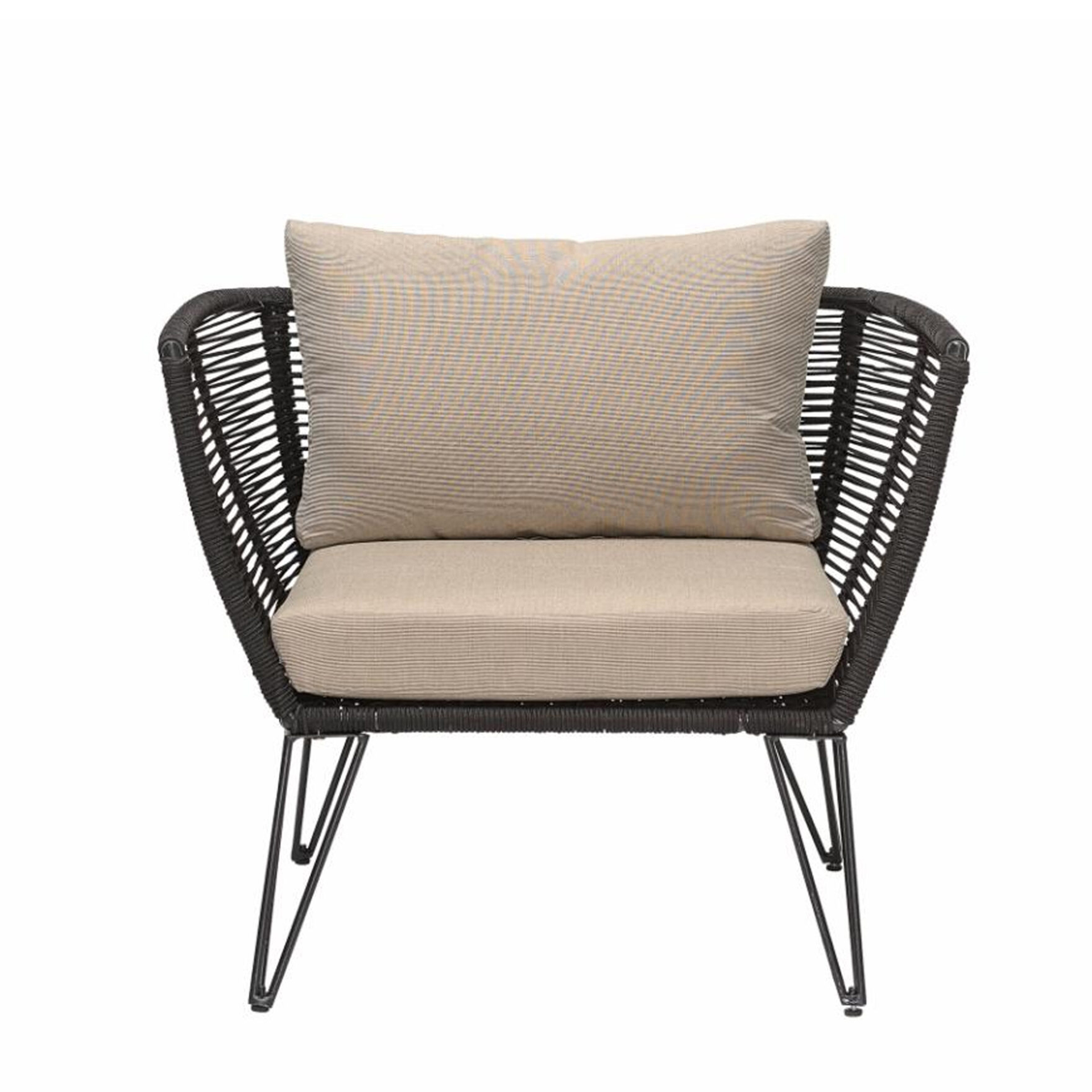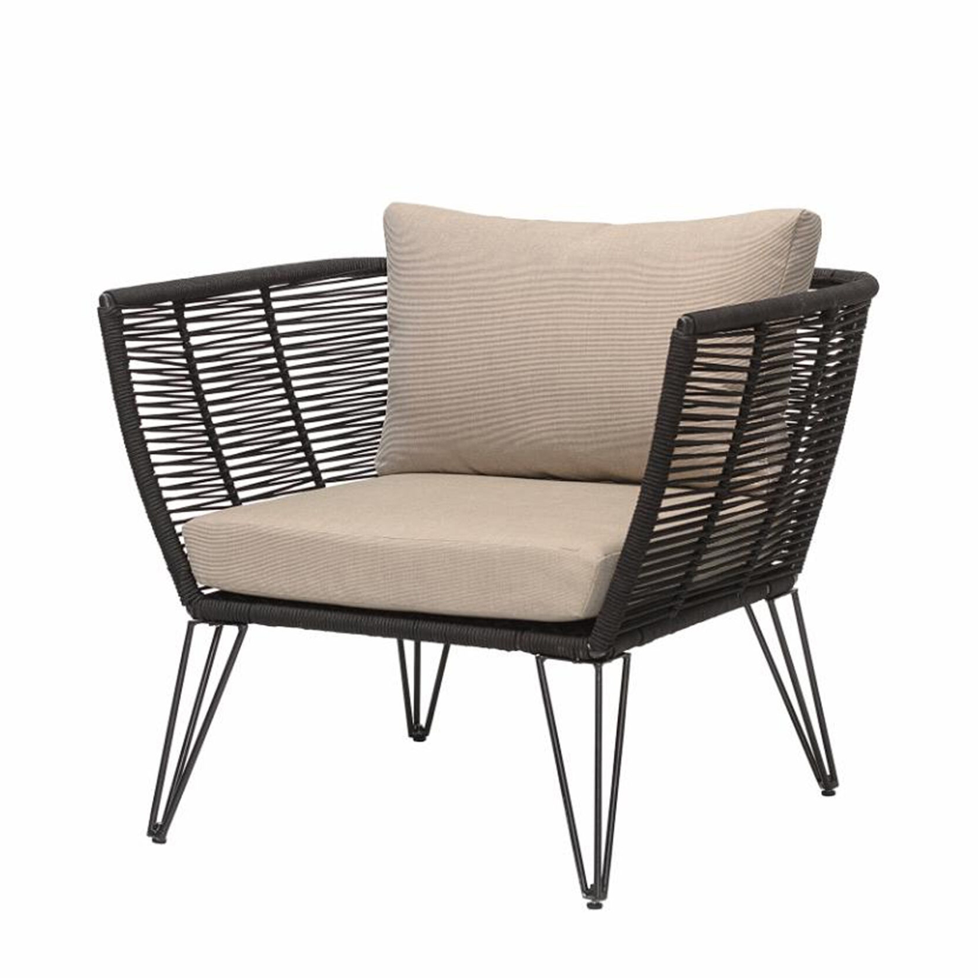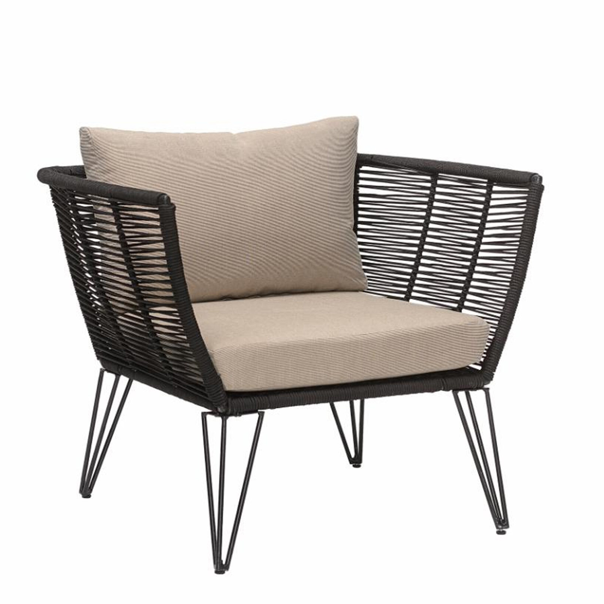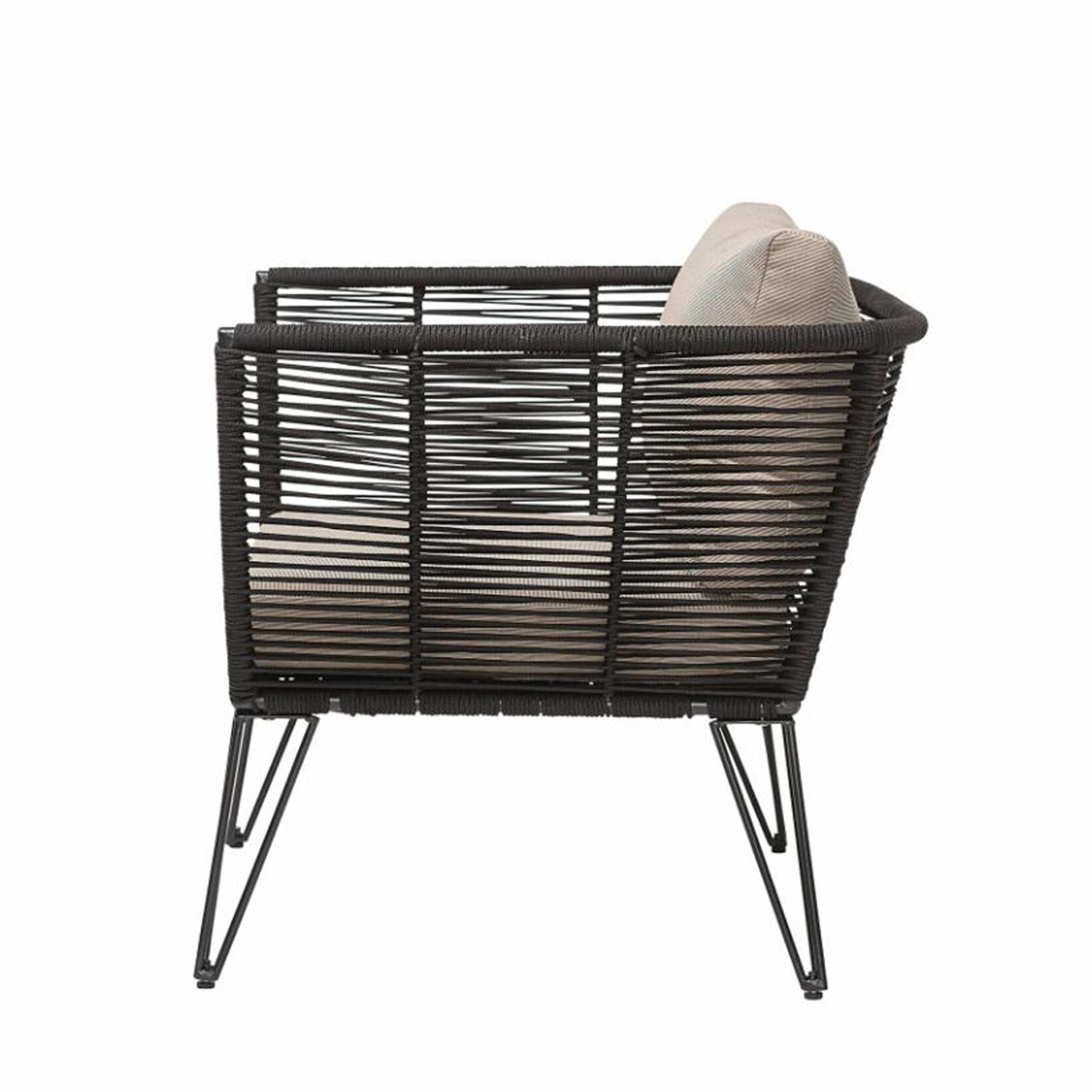 The Piyaa Lounge Chair brings structural elegance and contemporary craftsmanship to your outdoor lifestyle. Perfect lounge chair that merges contemporary and classic elements to compliment a modern retreat home. Crafted on a durable metal frame with rope for lasting style. The Piyaa Lounge Chair has a clean lined silhouette for a comfortable and casual look. Highlights the beauty of it’s modern design, it’s a natural choice to celebrate the outdoor with indoor style. Embrace outdoor living in style as you created a cozy and inviting nook inspired by nature. Perfectly suited for calm, pared-back living with The Piyaa Lounge Chair.