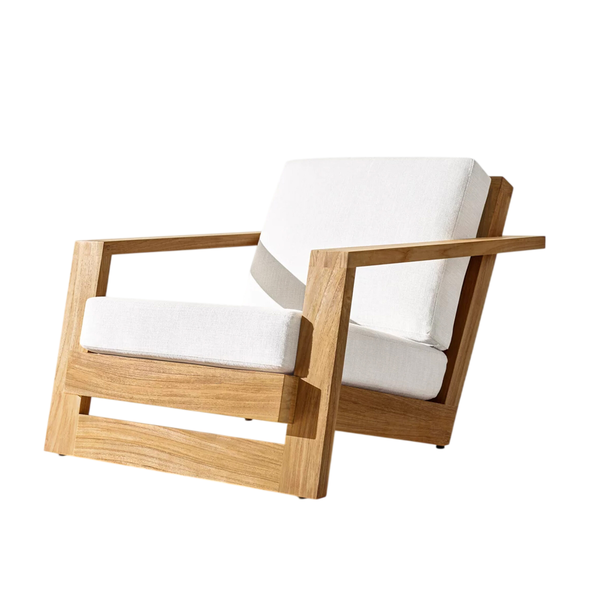 The Raco Lounge Chair brings structural elegance and contemporary craftsmanship to your outdoor lifestyle. Perfect lounge chair that merges contemporary and classic elements to compliment a modern retreat home. Crafted on a durable teak frame for lasting style. The Raco Lounge Chair has a clean lined silhouette for a comfortable and casual look. Highlights the beauty of solid teak, it’s a natural choice to celebrate the outdoor with indoor style. Embrace outdoor living in style as you created a cozy and inviting nook inspired by nature. Perfectly suited for calm, pared-back living with The Raco Lounge Chair.