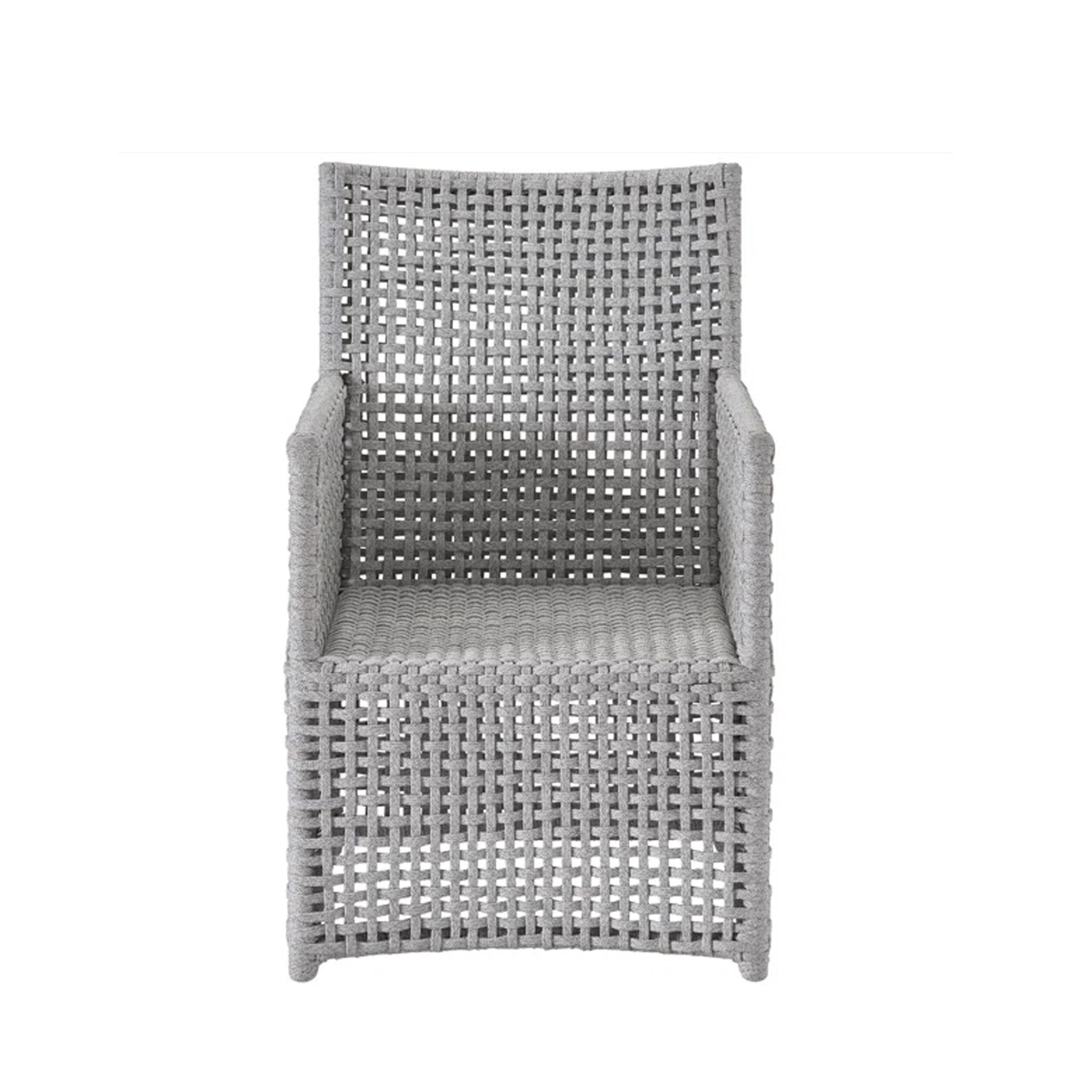 The Ravella Dining Chair brings structural elegance and contemporary craftsmanship to your outdoor lifestyle. Perfect dining chair that merges contemporary and classic elements to compliment a modern retreat home. Crafted on a durable aluminum frame with rope detailing for lasting style. The Ravella Dining Chair has a clean lined silhouette for a comfortable and casual look. Highlights the beauty of it’s natural design, suitable for outdoor with indoor style. Embrace outdoor living in style as you created a cozy and inviting nook inspired by nature. Perfectly suited for calm, pared-back living with The Ravella Dining Chair.