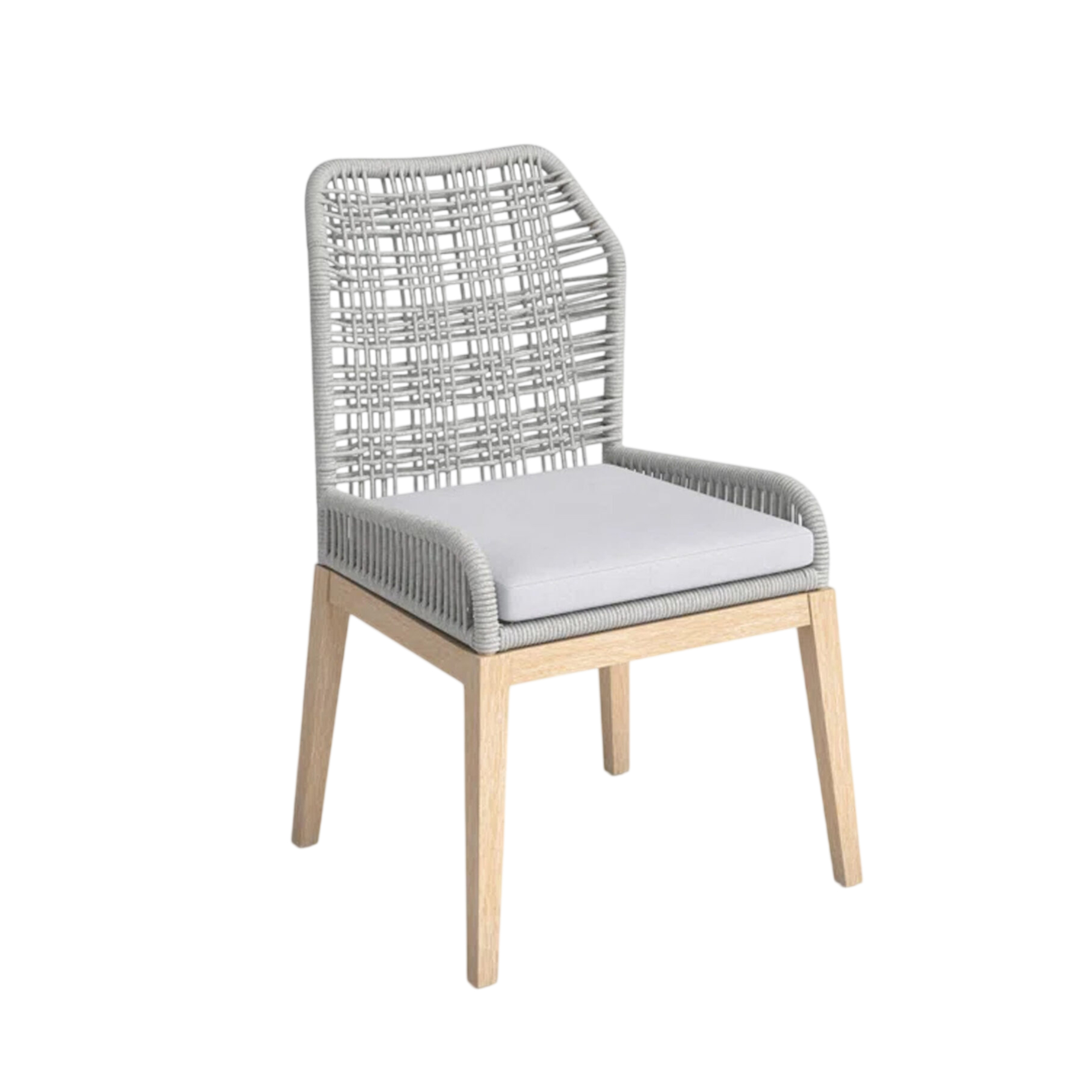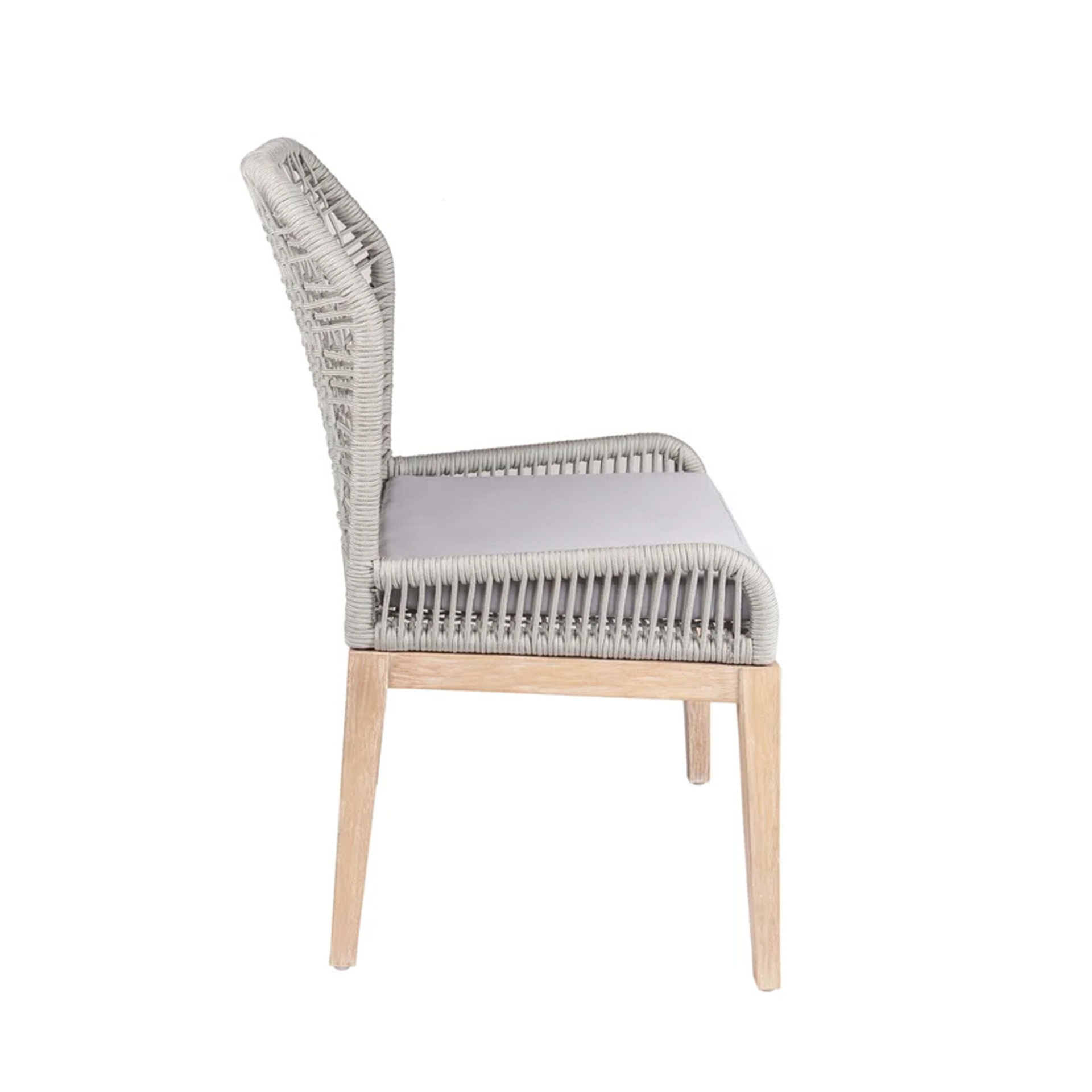 The Reta Dining Chair brings structural elegance and contemporary craftsmanship to your outdoor lifestyle. Perfect dining chair that merges contemporary and classic elements to compliment a modern retreat home. Crafted on a durable teak frame with rope detailing for lasting style. The Reta Dining Chair has a clean lined silhouette for a comfortable and casual look. Highlights the beauty of solid teak, it’s a natural choice to celebrate the outdoor with indoor style. Embrace outdoor living in style as you created a cozy and inviting nook inspired by nature. Perfectly suited for calm, pared-back living with The Reta Dining Chair.