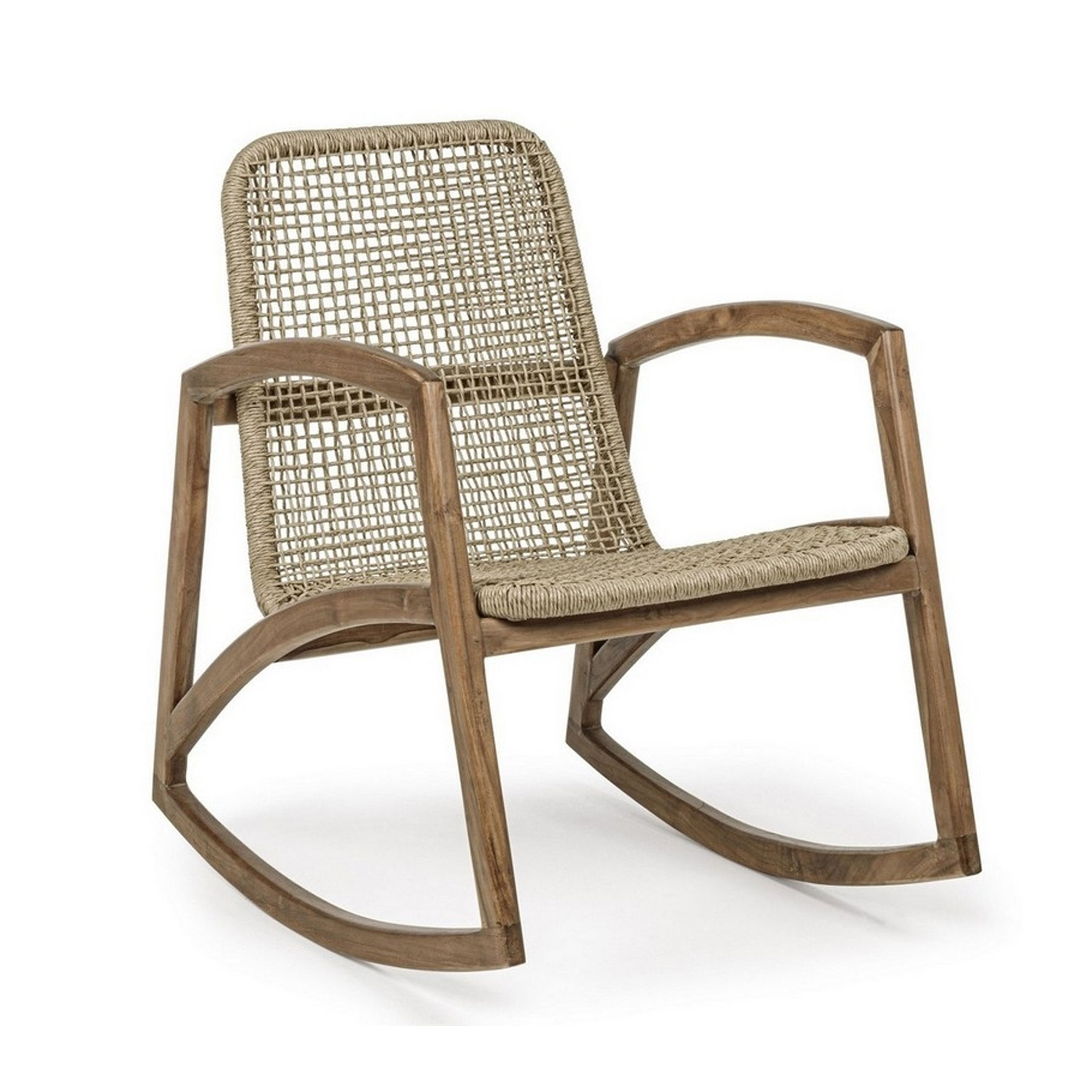 The Sabila Rocking Chair brings structural elegance and contemporary craftsmanship to your outdoor lifestyle. Perfect rocking chair that merges contemporary and classic elements to compliment a modern retreat home. Crafted on a durable teak frame with synthetic rattan for lasting style. The Sabila Rocking Chair has a clean lined silhouette for a comfortable and casual look. Highlights the beauty of solid teak, it’s a natural choice to celebrate the outdoor with indoor style. Embrace outdoor living in style as you created a cozy and inviting nook inspired by nature. Perfectly suited for calm, pared-back living with The Sabila Rocking Chair.