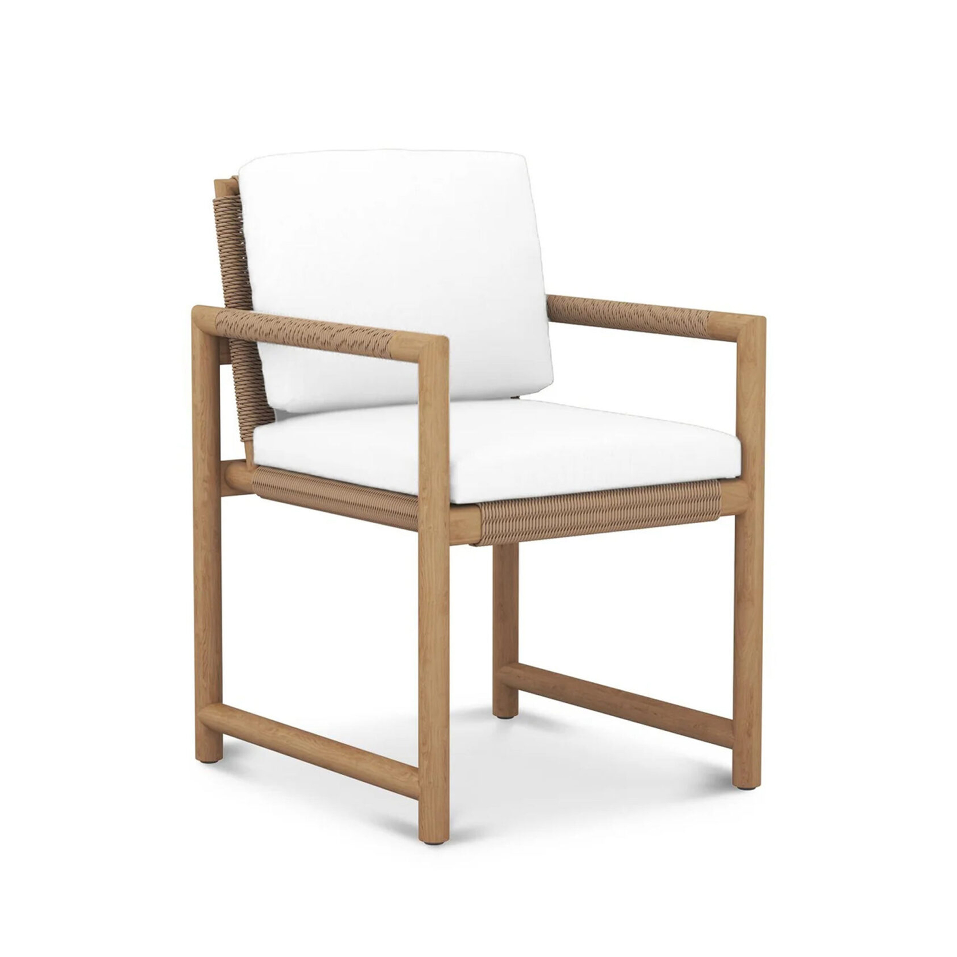 The Salsa Dining Chair brings structural elegance and contemporary craftsmanship to your outdoor lifestyle. Perfect dining chair that merges contemporary and classic elements to compliment a modern retreat home. Crafted on a durable teak frame with rope detailing for lasting style. The Salsa Dining Chair has a clean lined silhouette for a comfortable and casual look. Highlights the beauty of solid teak, it’s a natural choice to celebrate the outdoor with indoor style. Embrace outdoor living in style as you created a cozy and inviting nook inspired by nature. Perfectly suited for calm, pared-back living with The Salsa Dining Chair.