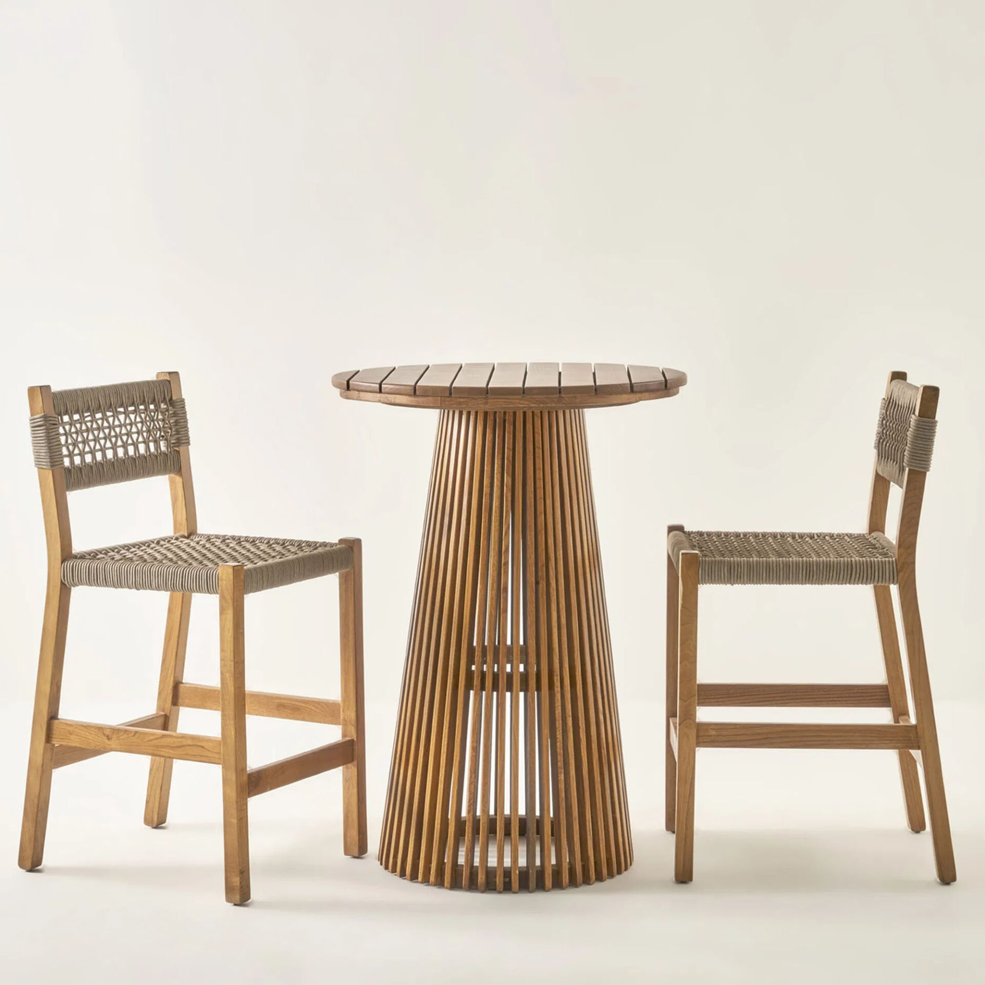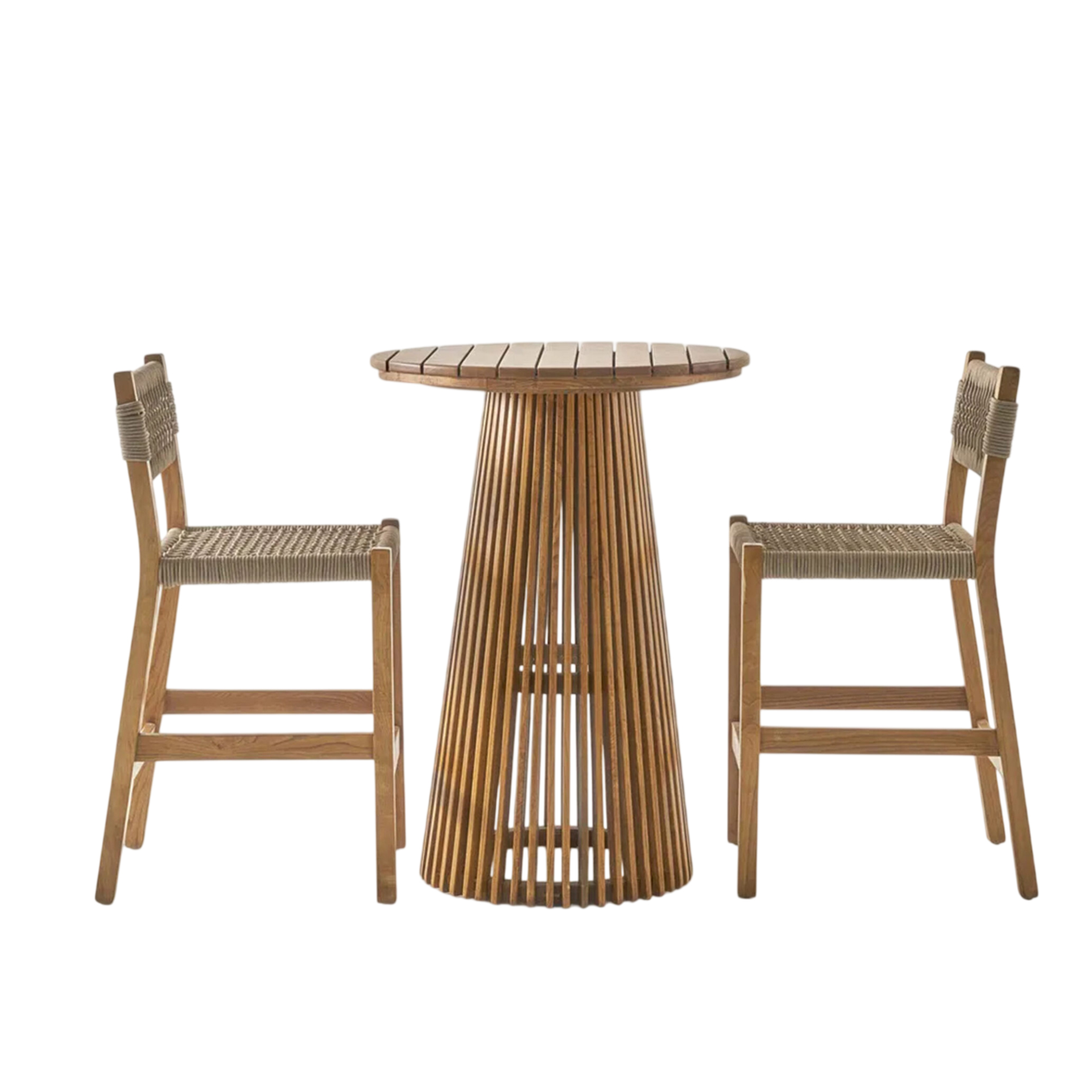 The Selena Bar Table Sets brings structural elegance and contemporary craftsmanship to your outdoor lifestyle. The perfect bar table sets that merges contemporary and classic elements to compliment a modern retreat home. Crafted on a durable teak frame with rope detailing seats for lasting style. The Selena Bar Table Sets has a clean lined silhouette for a comfortable and casual look. Highlights the beauty of solid teak, it’s a natural choice to celebrate the outdoor with indoor style. Embrace outdoor living in style as you created a cozy and inviting nook inspired by nature. Perfectly suited for calm, pared-back living with The Selena Bar Table Sets.