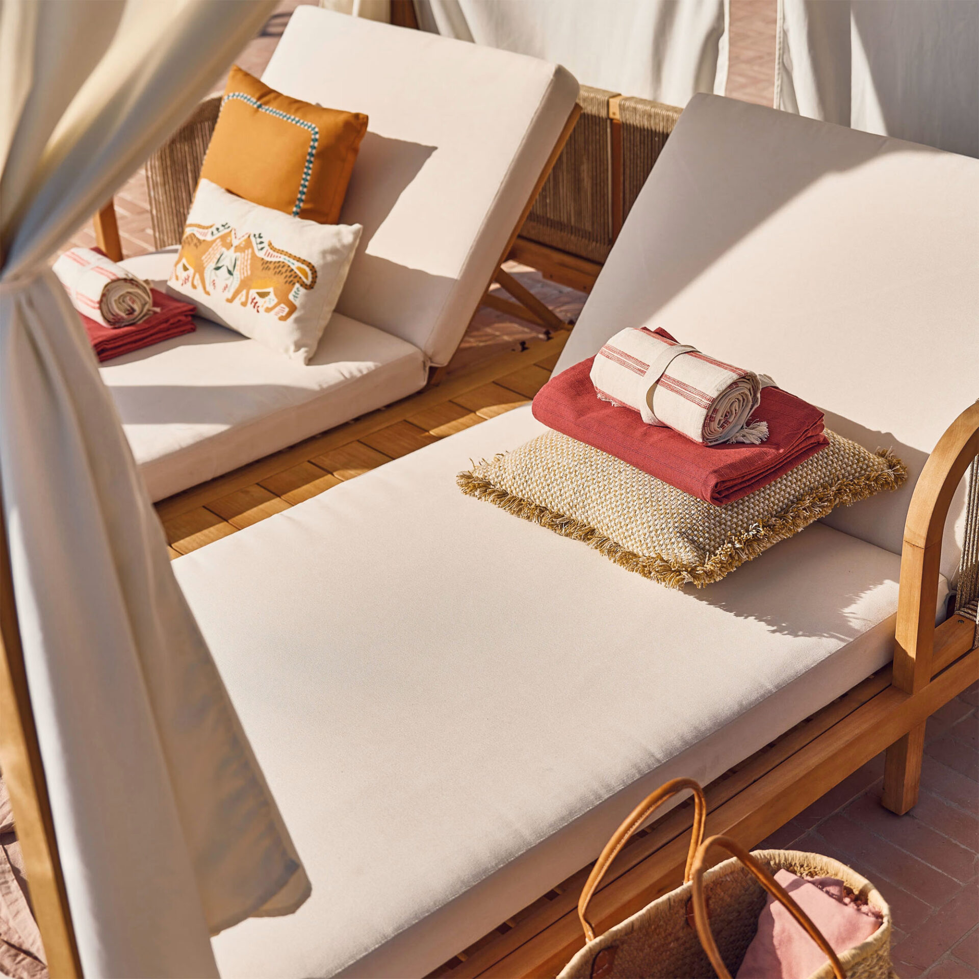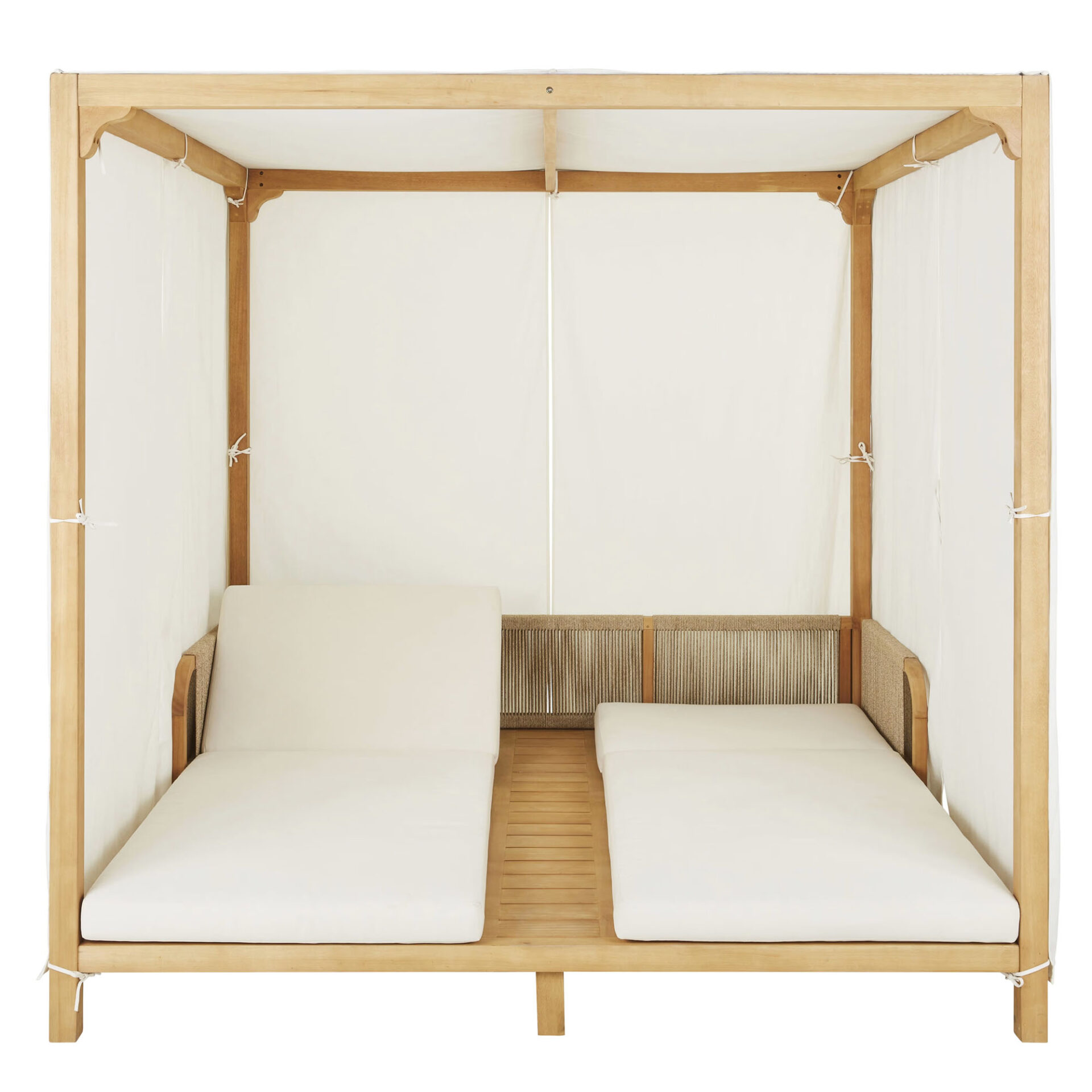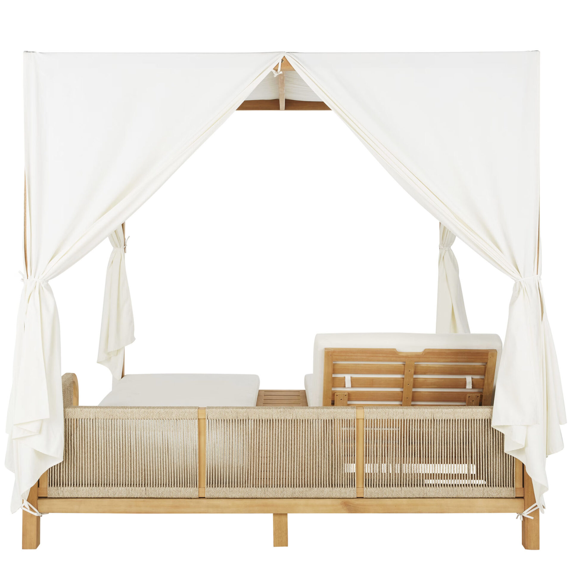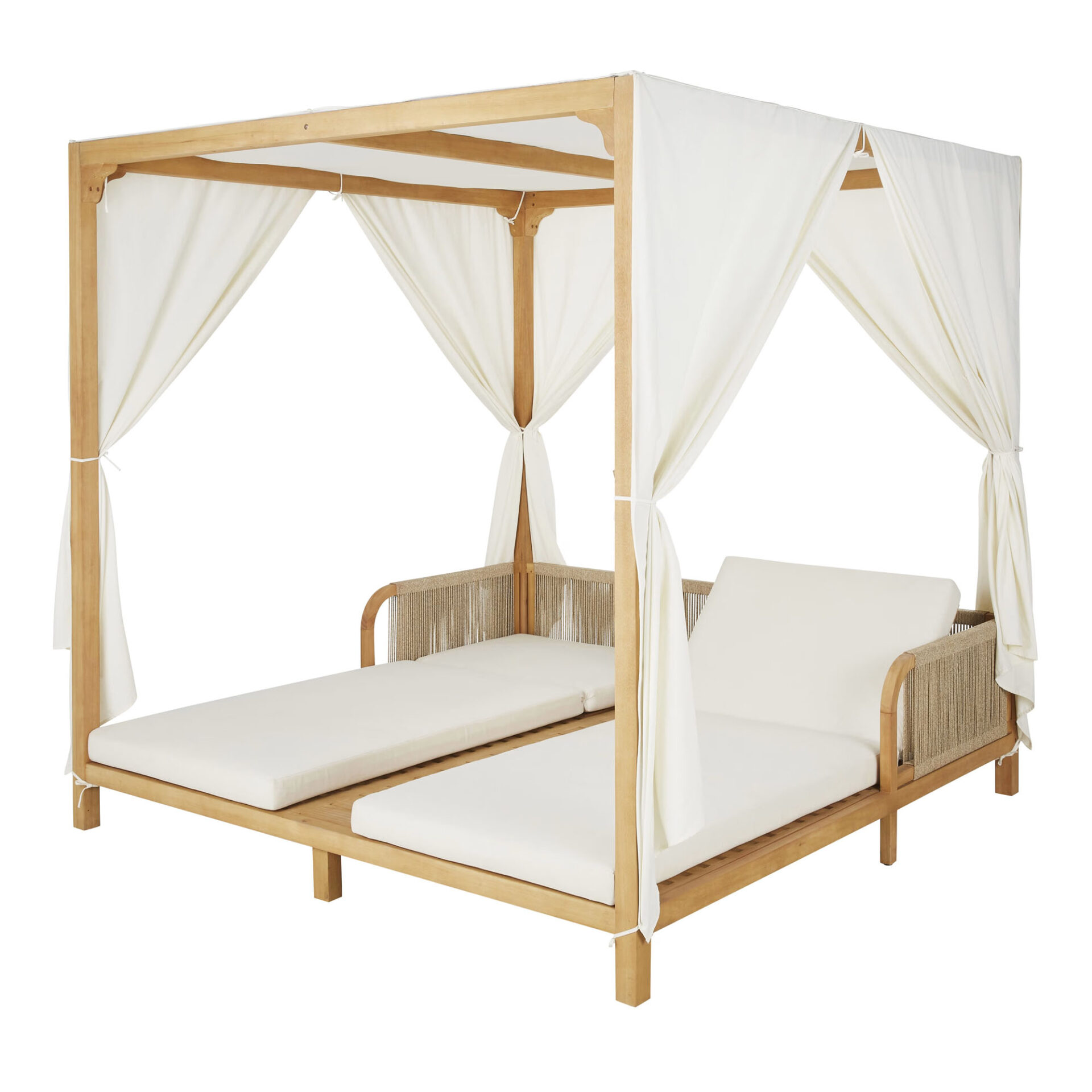 The Sibone Sun Daybed brings structural elegance and contemporary craftsmanship to your outdoor lifestyle. The perfect sun daybed that merges contemporary and classic elements to compliment a modern retreat home. Crafted on a durable teak frame with rope detailing for lasting style. The Sibone Sun Daybed has a clean lined silhouette for a comfortable and casual look. Highlights the beauty of solid teak, it’s a natural choice to celebrate the outdoor with indoor style. Embrace outdoor living in style as you created a cozy and inviting nook inspired by nature. Perfectly suited for calm, pared-back living with The Sibone Sun Daybed
