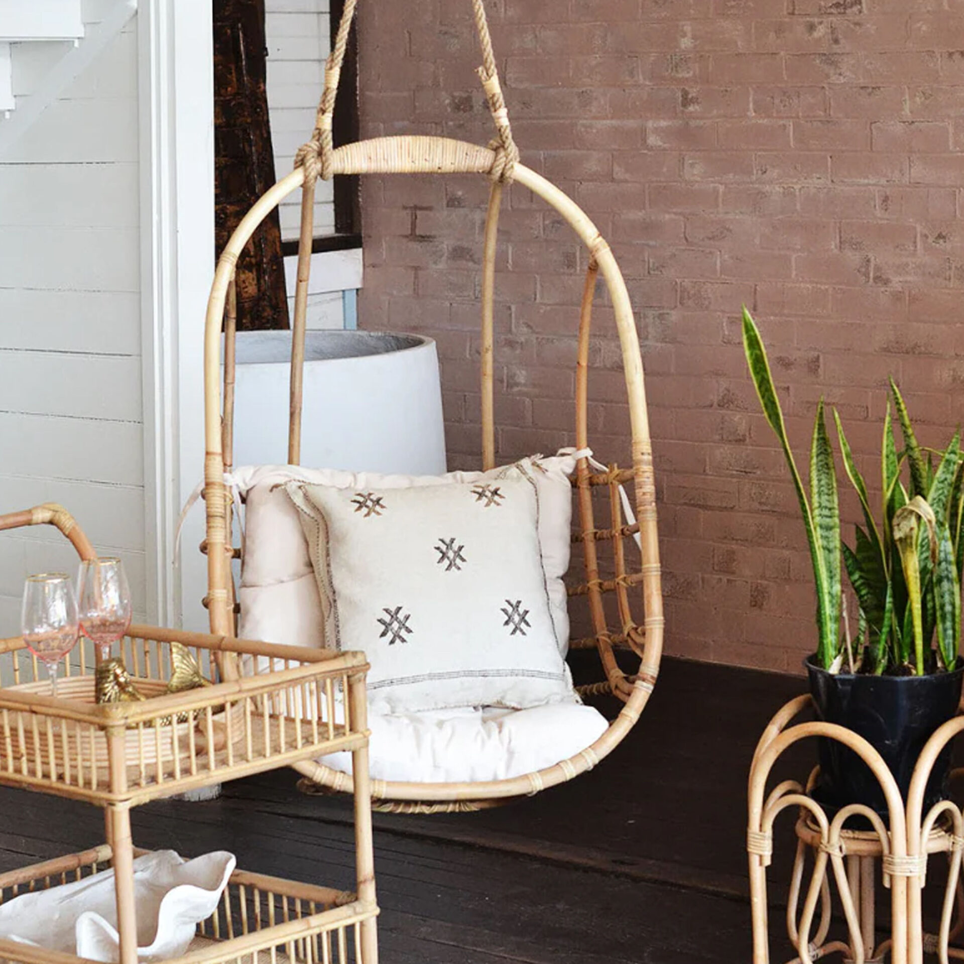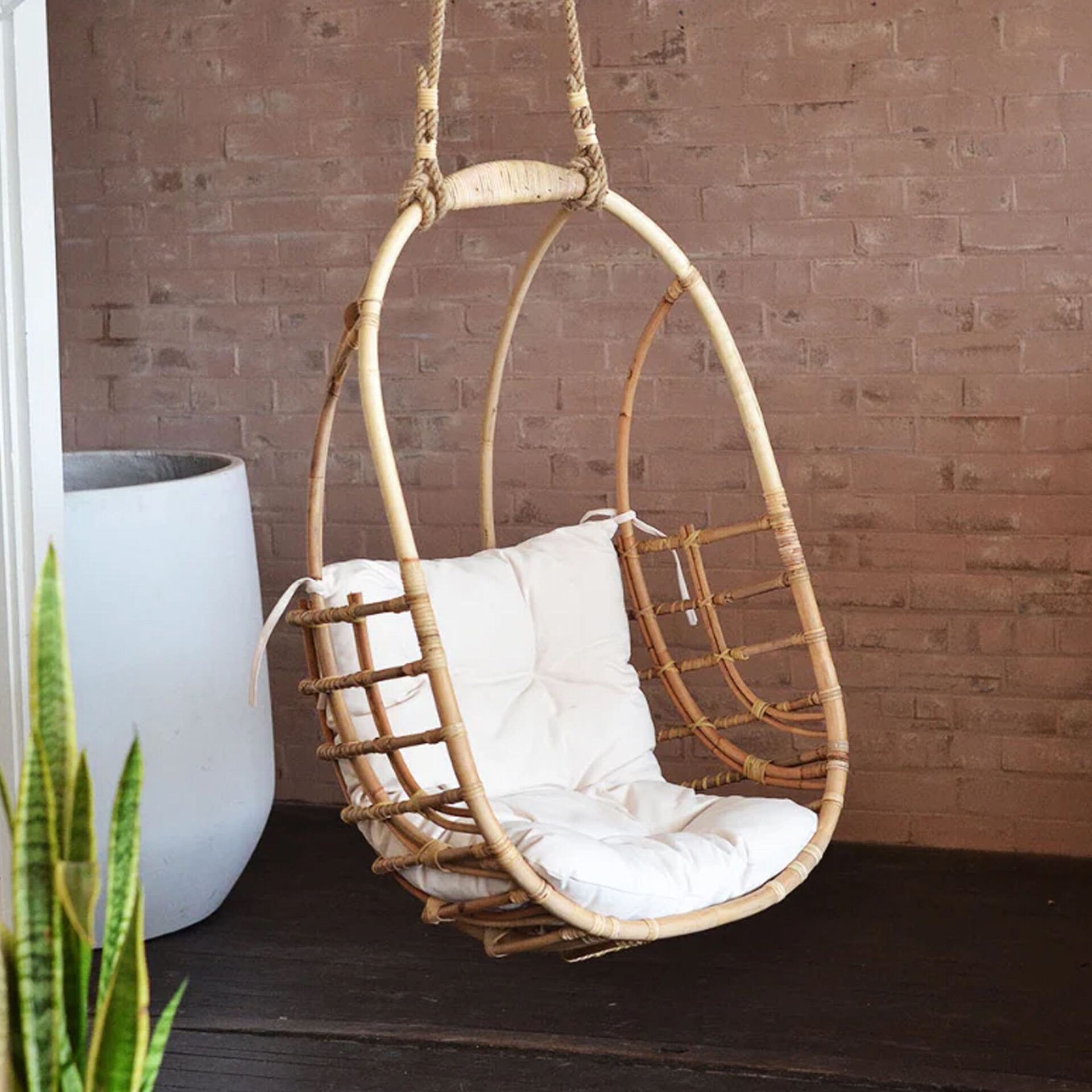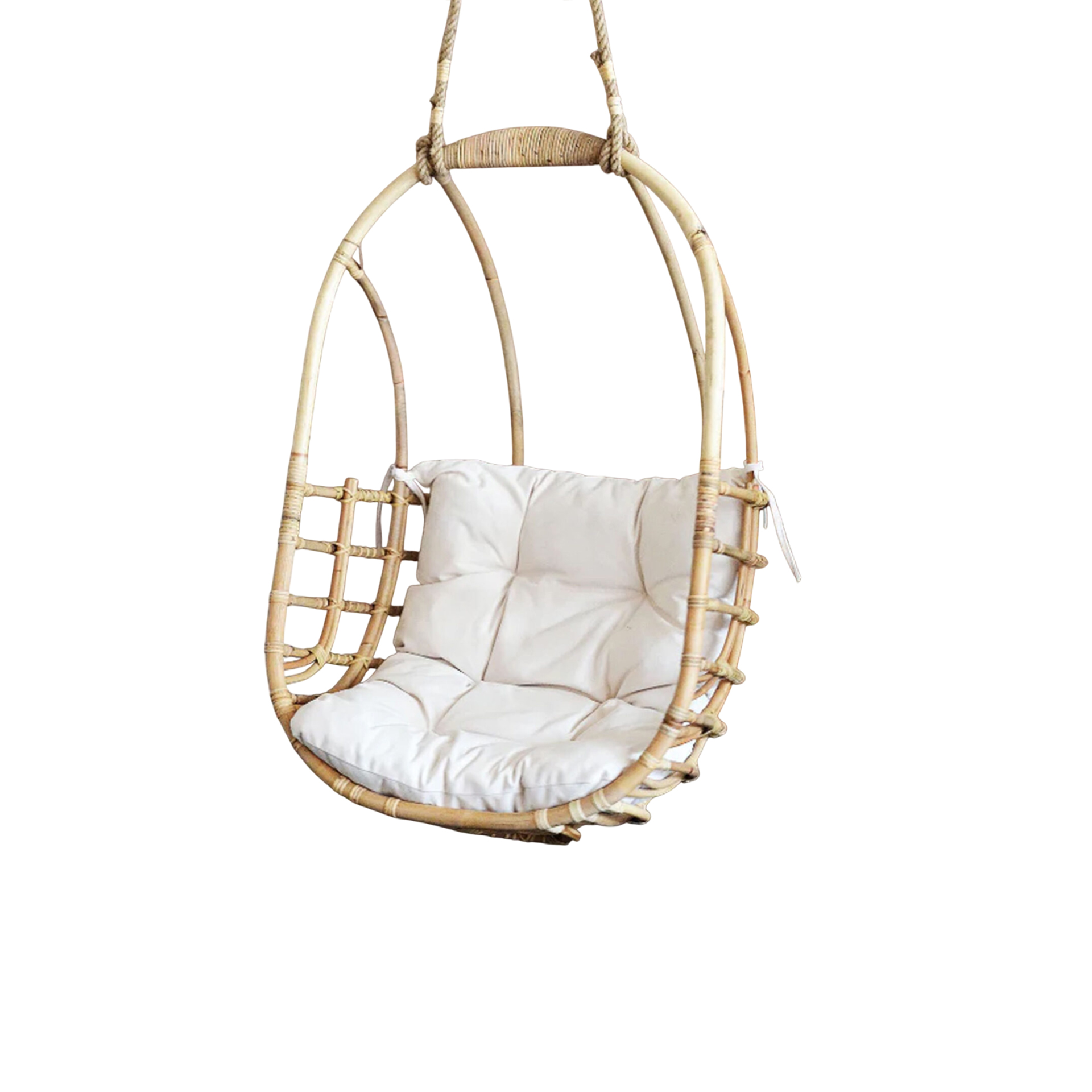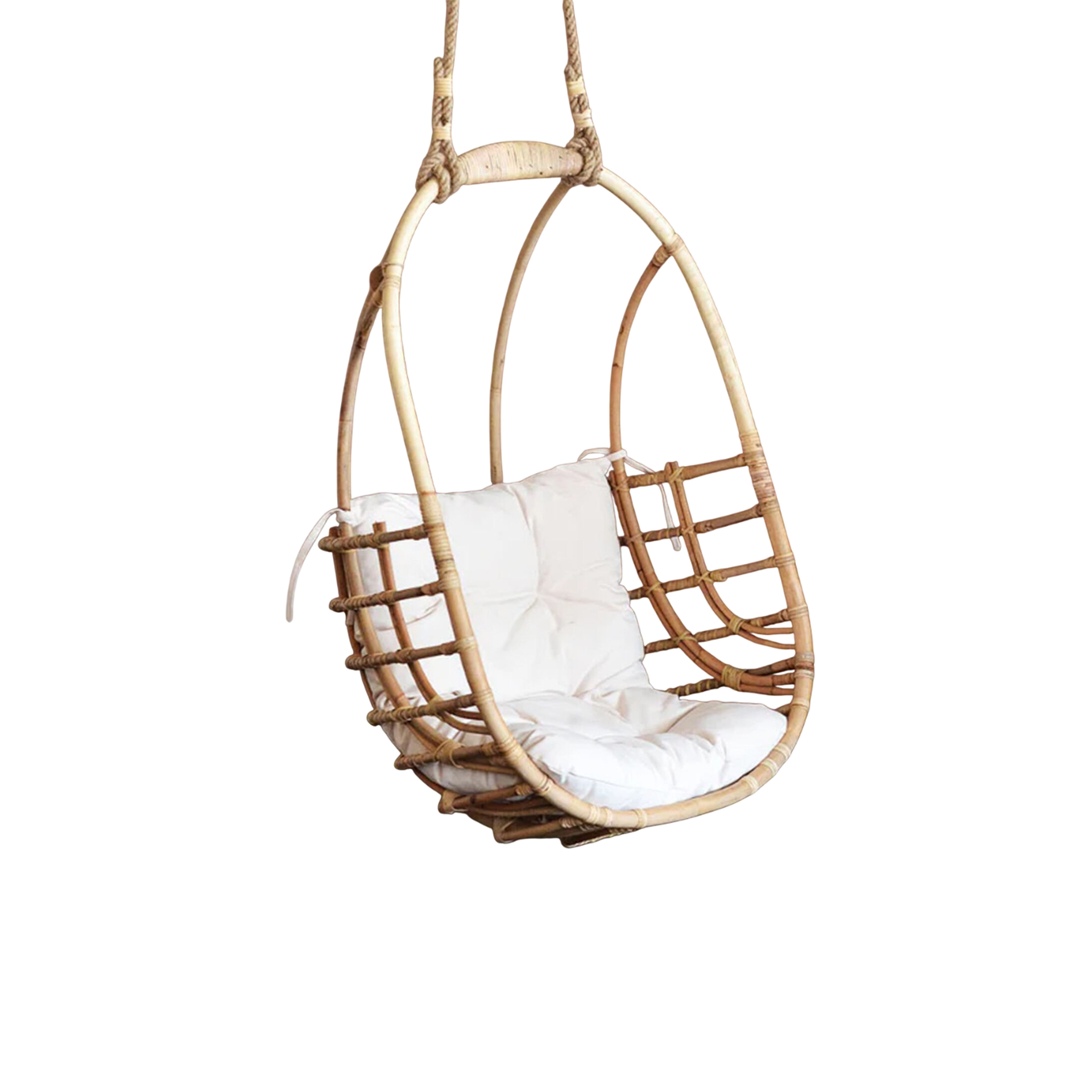 The Sita Swing Hanging Chair brings structural elegance and contemporary craftsmanship to your outdoor lifestyle. Perfect swing hanging chair that merges contemporary and classic elements to compliment a modern retreat home. Crafted on a durable rattan frame with rope chains for lasting style. The Sita Swing Hanging Chair has a clean lined silhouette for a comfortable and casual look. Highlights the beauty of it’s natural design, it’s a natural choice to celebrate the outdoor with indoor style. Embrace outdoor living in style as you created a cozy and inviting nook inspired by nature. Perfectly suited for calm, pared-back living with The Sita Swing Hanging Chair.