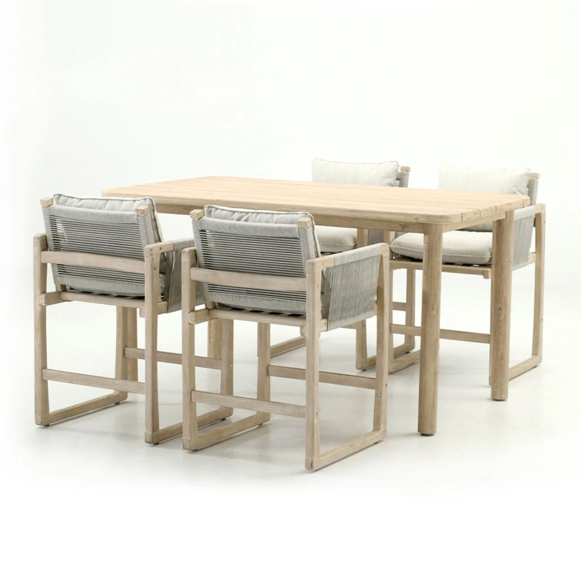 The Sovia Dining Sets brings structural elegance and contemporary craftsmanship to your outdoor lifestyle. Perfect dining sets that merges contemporary and classic elements to compliment a modern retreat home. Crafted on a durable teak frame with rope detailing seats for lasting style. The Sovia Dining Sets has a clean lined silhouette for a comfortable and casual look. Highlights the beauty of solid teak, it’s a natural choice to celebrate the outdoor with indoor style. Enjoy nature in style while creating cosy an outdoor nooks made for pared back living with The Sovia Dining Sets.