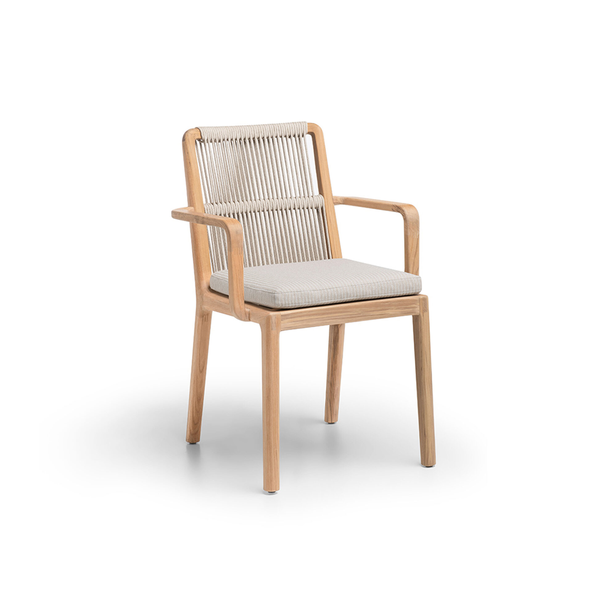 The Tania Dining Chair brings structural elegance and contemporary craftsmanship to your outdoor lifestyle. Perfect dining chair that merges contemporary and classic elements to compliment a modern retreat home. Crafted on a durable teak frame with rope detailing for lasting style. The Tania Dining Chair has a clean lined silhouette for a comfortable and casual look. Highlights the beauty of solid teak, it’s a natural choice to celebrate the outdoor with indoor style. Embrace outdoor living in style as you created a cozy and inviting nook inspired by nature. Perfectly suited for calm, pared-back living with The Tania Dining Chair.