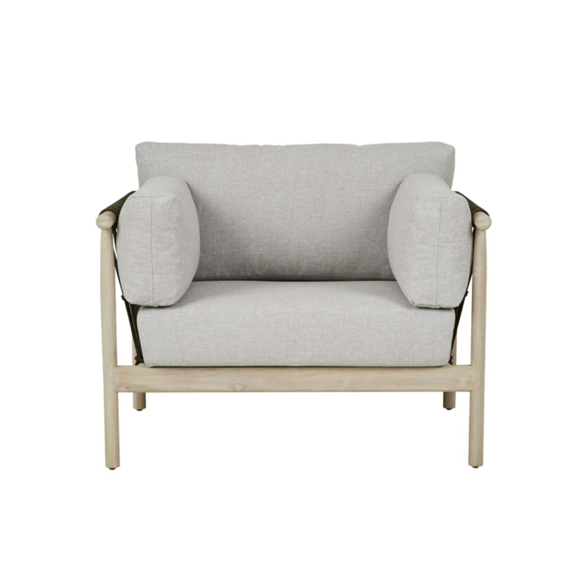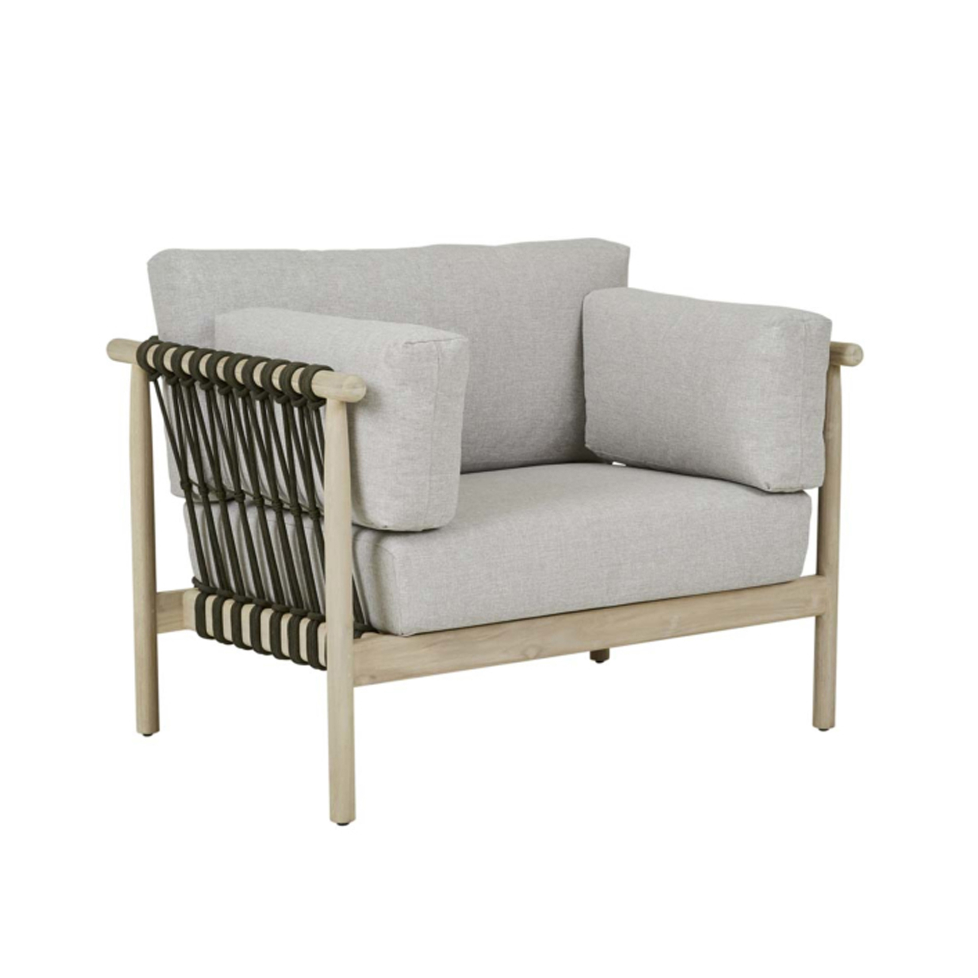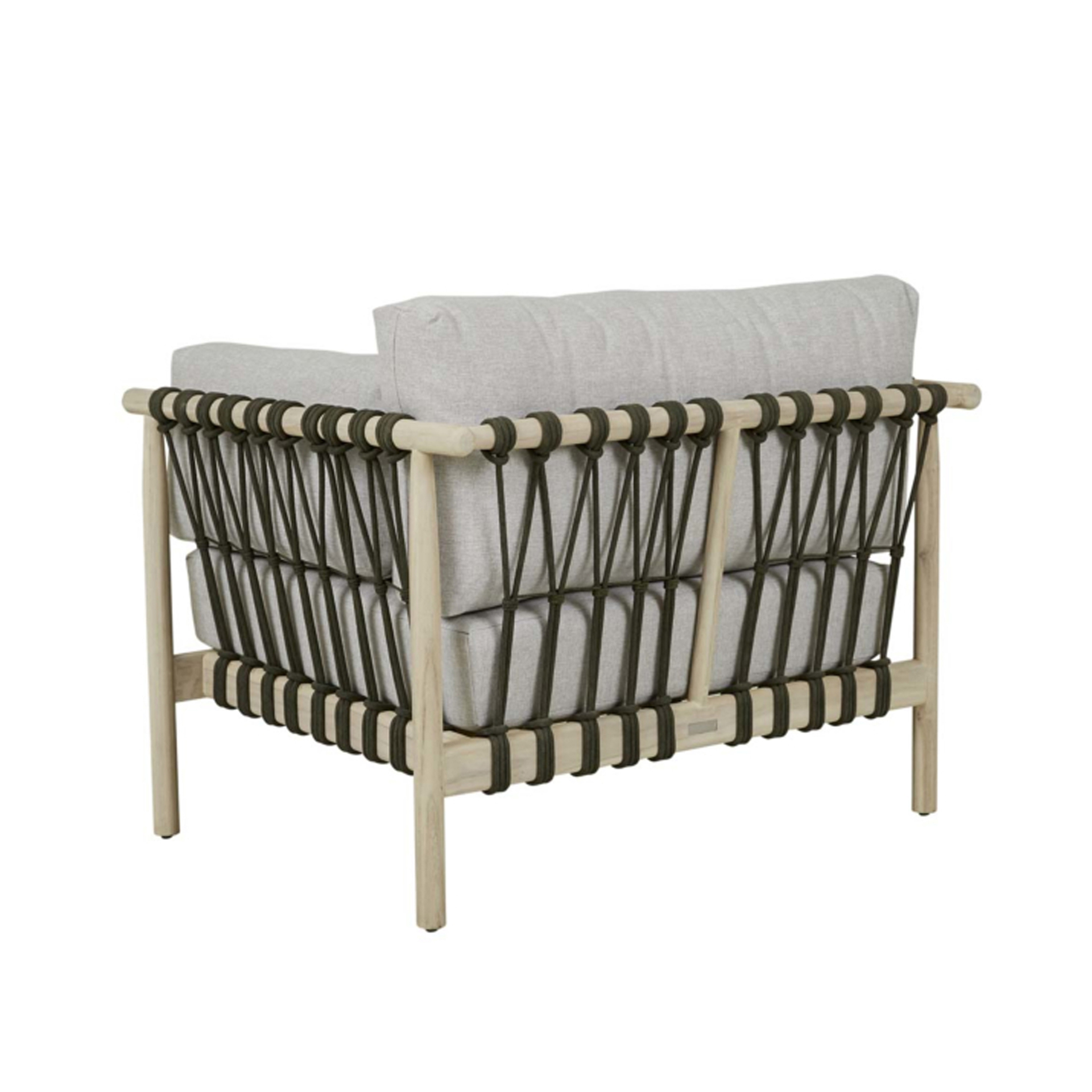 The Tiko Lounge Chair brings structural elegance and contemporary craftsmanship to your outdoor lifestyle. Perfect lounge chair that merges contemporary and classic elements to compliment a modern retreat home. Crafted on a durable teak frame with rope detailings for lasting style. The Tiko Lounge Chair has a clean lined silhouette for a comfortable and casual look. Highlights the beauty of solid teak, it’s a natural choice to celebrate the outdoor with indoor style. Embrace outdoor living in style as you created a cozy and inviting nook inspired by nature. Perfectly suited for calm, pared-back living with The Tiko Lounge Chair.