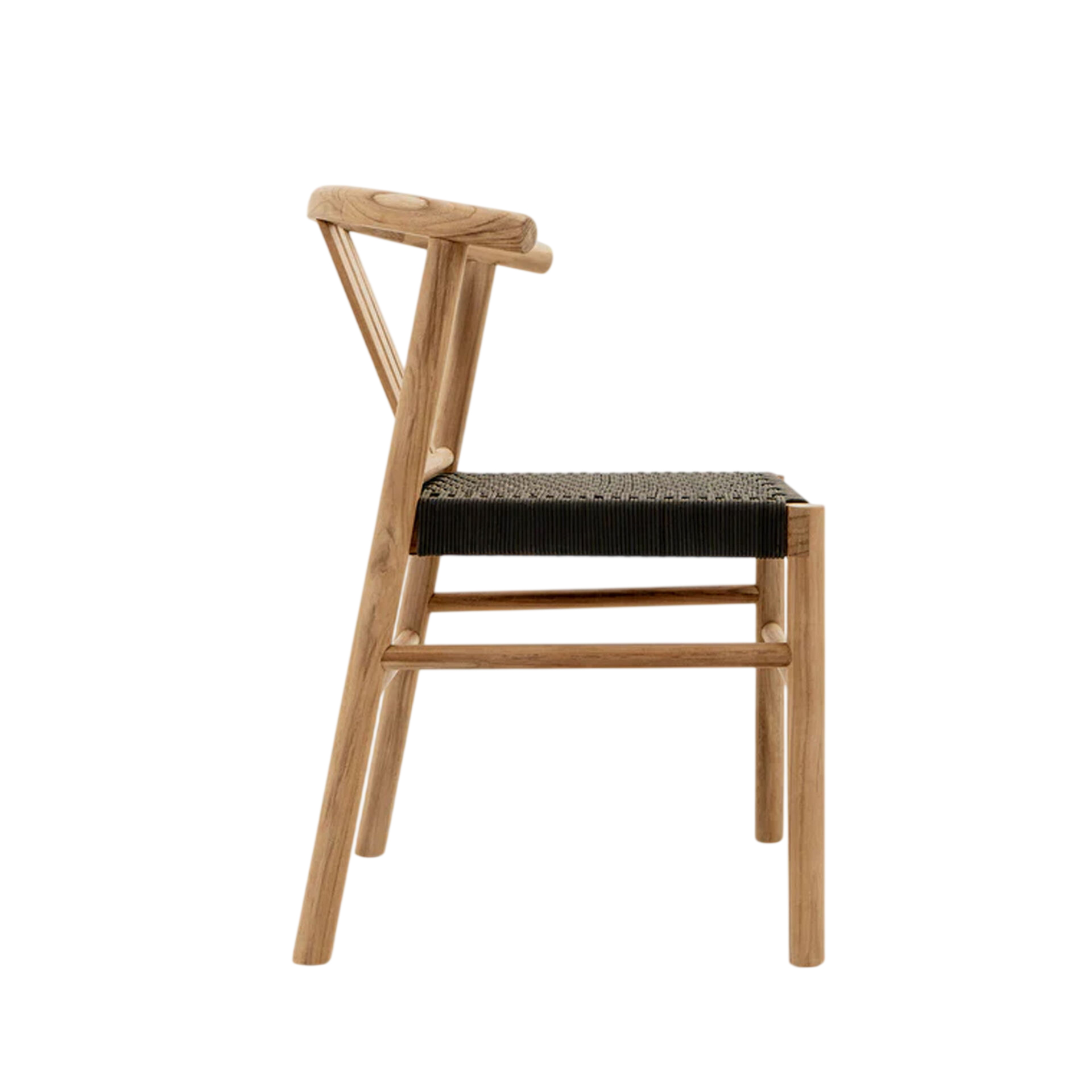 The Vita Dining Chair brings structural elegance and contemporary craftsmanship to your outdoor lifestyle. Perfect dining chair that merges contemporary and classic elements to compliment a modern retreat home. Crafted on a durable teak frame with rope seating for lasting style. The Vita Dining Chair has a clean lined silhouette for a comfortable and casual look. Highlights the beauty of solid teak, it’s a natural choice to celebrate the outdoor with indoor style. Embrace outdoor living in style as you created a cozy and inviting nook inspired by nature. Perfectly suited for calm, pared-back living with The Vita Dining Chair.