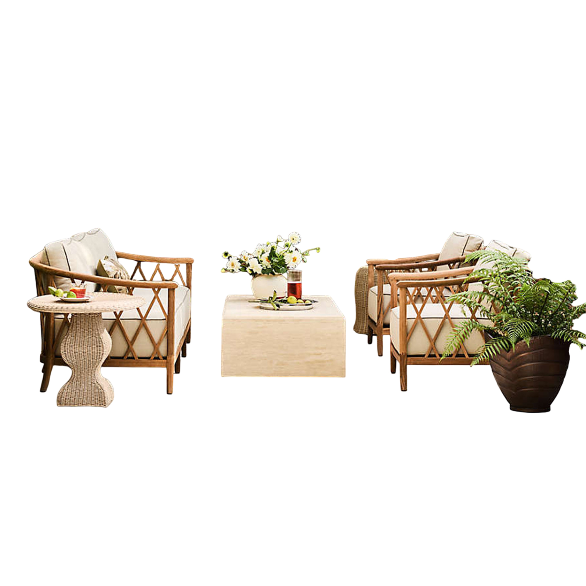 This sofa set is a versatile accent piece that showcases your unique personality and invites you to relax. Borrowing from the carefree spirit of coastal aesthetics, this sofa set is clean and uncluttered for a breezy look and feel. Perfect for any outdoor setting, this sofa set features teak wood for lasting beauty. This sofa set’s comfortable and casual style is best for outdoor aesthetic.