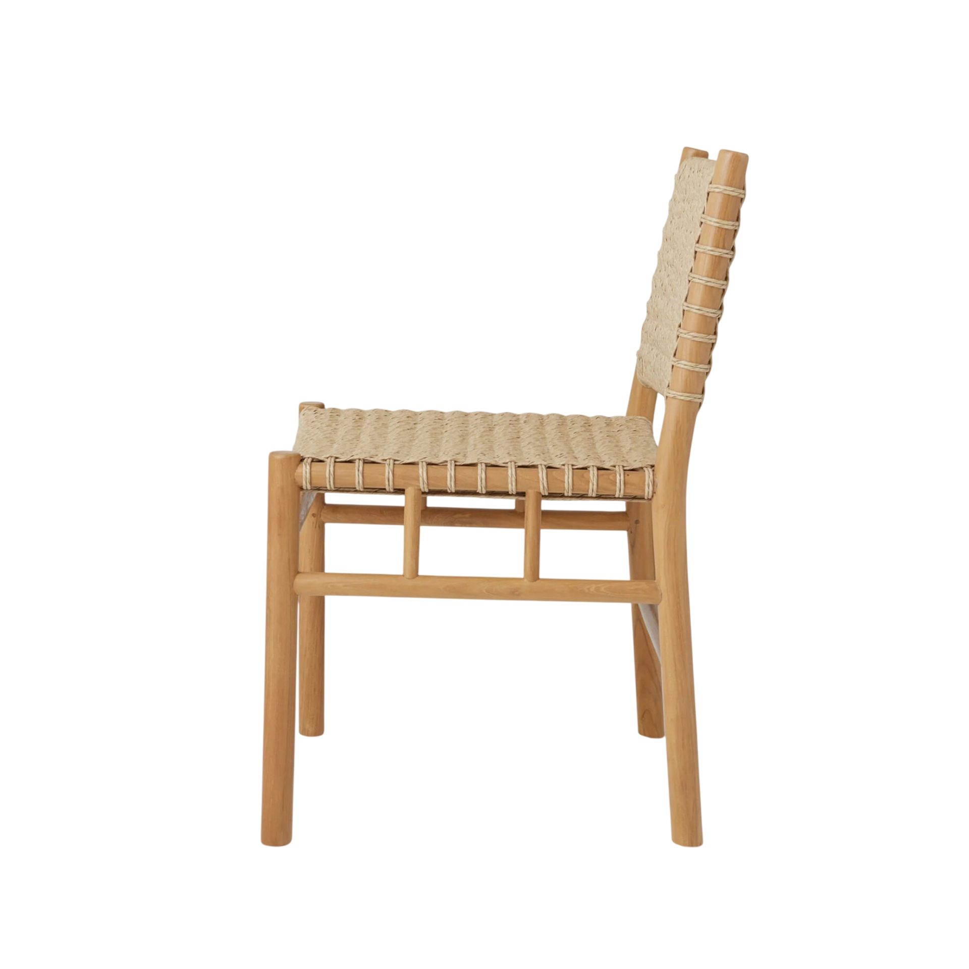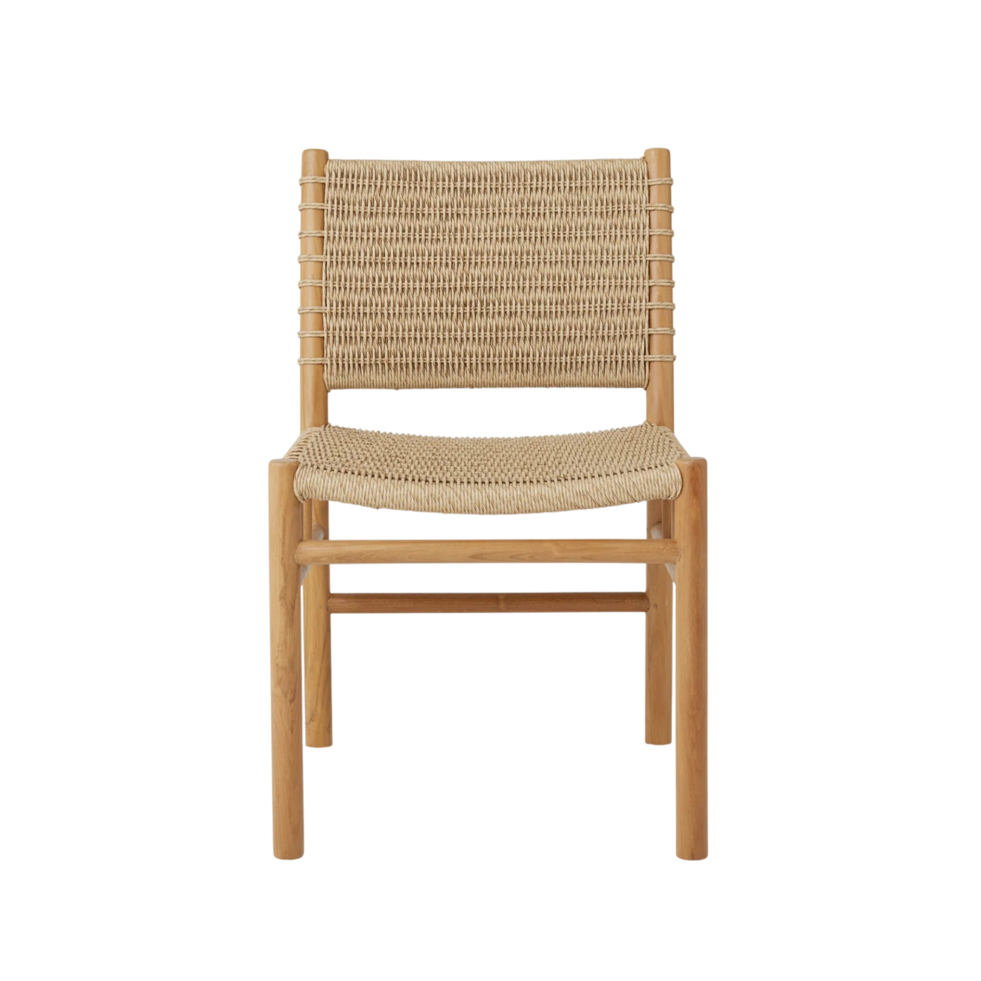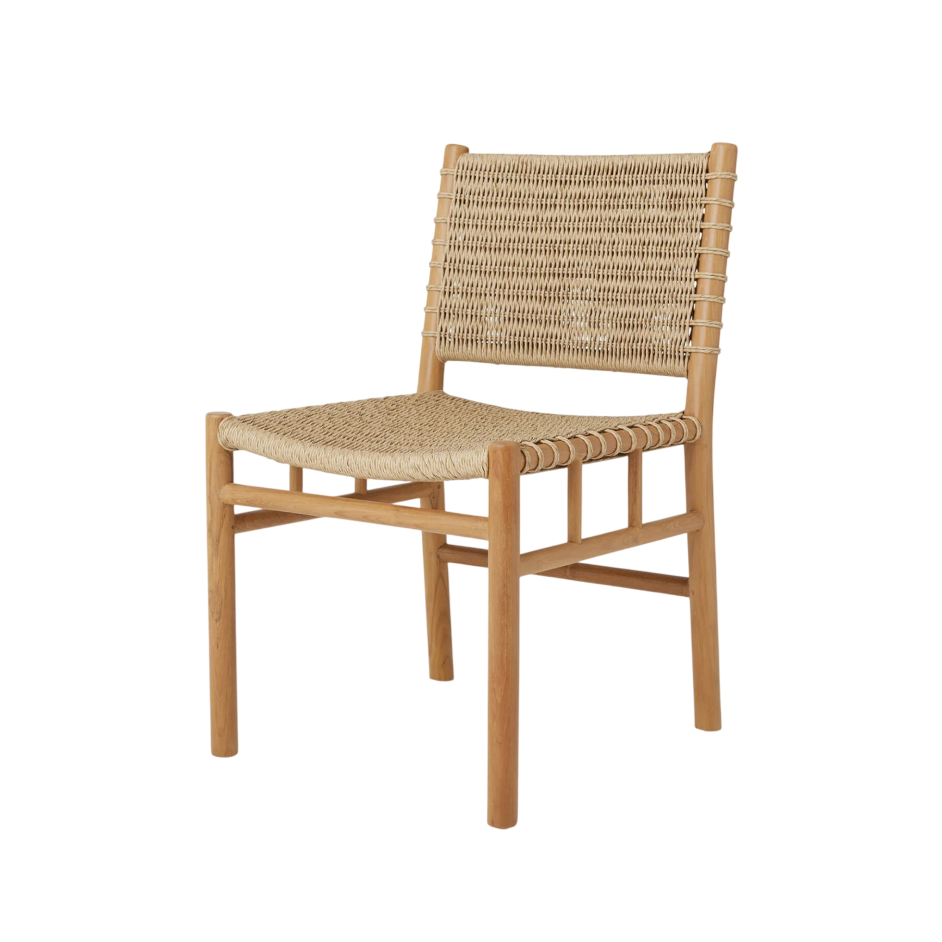 The Xena Dining Chair brings structural elegance and contemporary craftsmanship to your outdoor lifestyle. Perfect dining chair that merges contemporary and classic elements to compliment a modern retreat home. Crafted on a durable teak frame with synthetic rattan for lasting style. The Xena Dining Chair has a clean lined silhouette for a comfortable and casual look. Highlights the beauty of solid teak, it’s a natural choice to celebrate the outdoor with indoor style. Embrace outdoor living in style as you created a cozy and inviting nook inspired by nature. Perfectly suited for calm, pared-back living with The Xena Dining Chair.